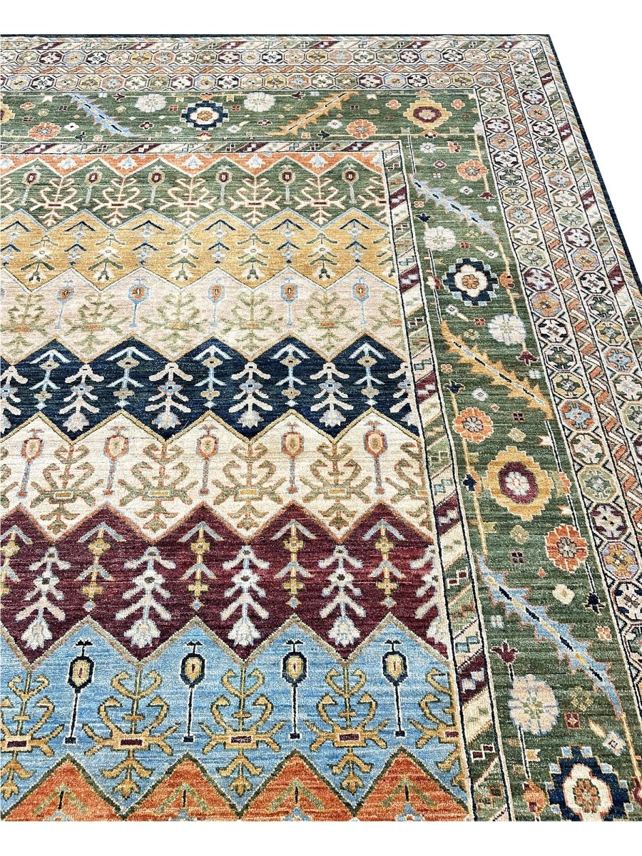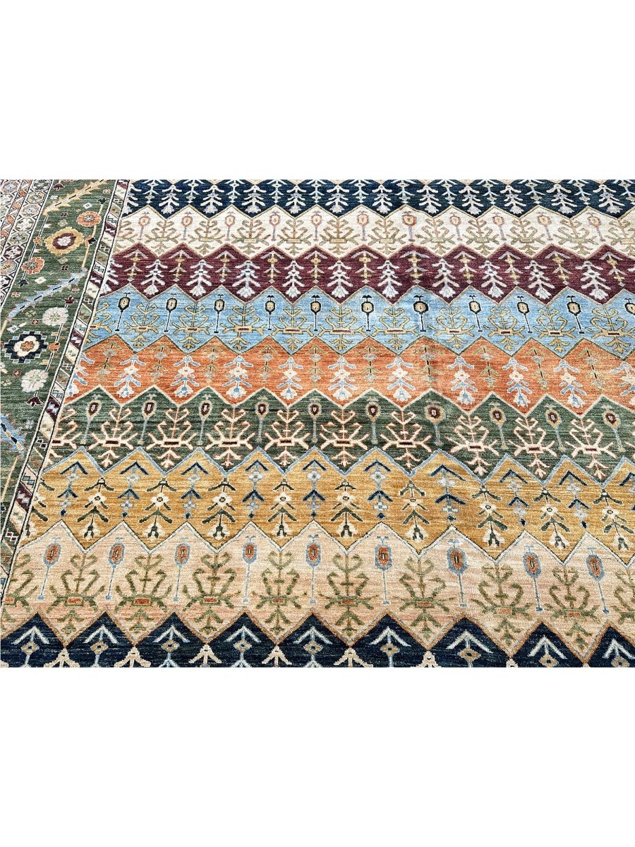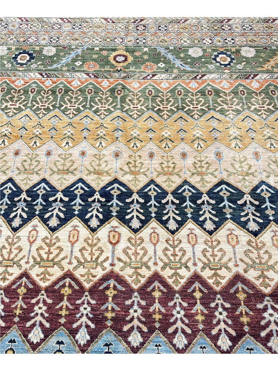 The 12x15 Serapi Style area rug is a beauty that adds warmth and elegance to any room. Beautifully hand-knotted from the finest quality wool, this stunning rug features a geometric design it creates a cozy atmosphere. The striking combination of beige, tan, blue, burgundy, orange, and green makes it a suitable enhancement for any home style. This outstanding piece not only adds great beauty to your decor but also serves as a fine piece of artwork, sure to be a conversation starter in any home. Enjoy free shipping in the US.