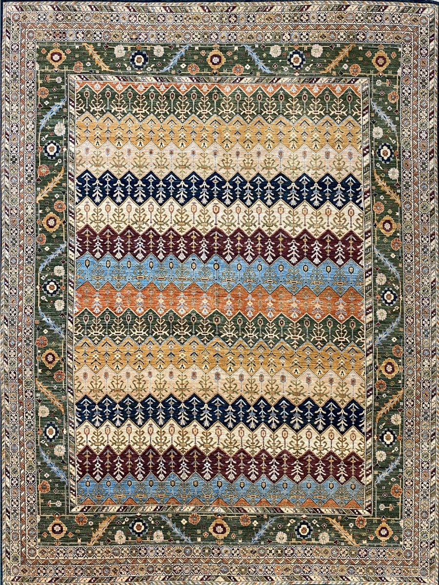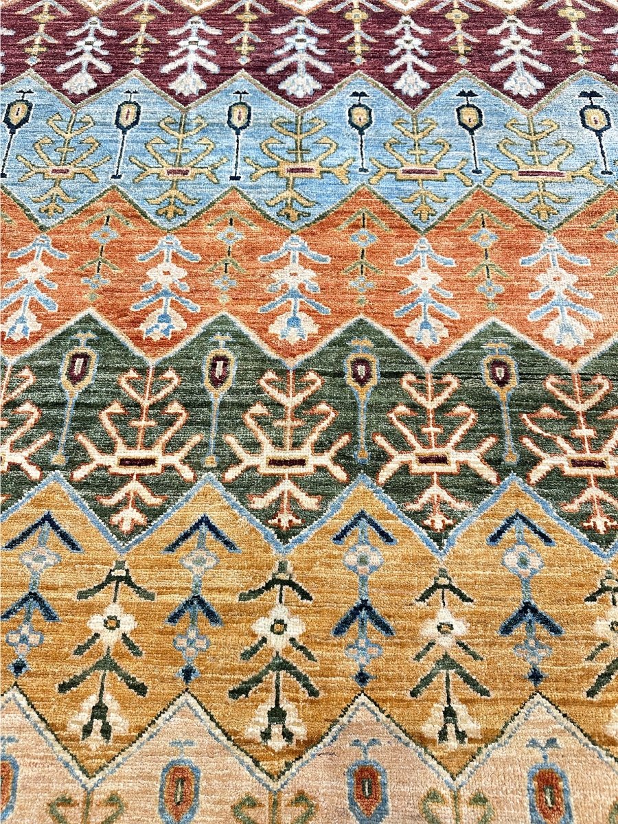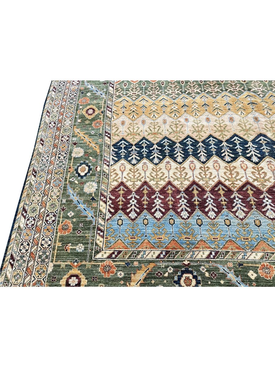 The 12x15 Serapi Style area rug is a beauty that adds warmth and elegance to any room. Beautifully hand-knotted from the finest quality wool, this stunning rug features a geometric design it creates a cozy atmosphere. The striking combination of beige, tan, blue, burgundy, orange, and green makes it a suitable enhancement for any home style. This outstanding piece not only adds great beauty to your decor but also serves as a fine piece of artwork, sure to be a conversation starter in any home. Enjoy free shipping in the US.