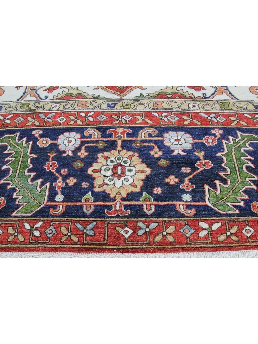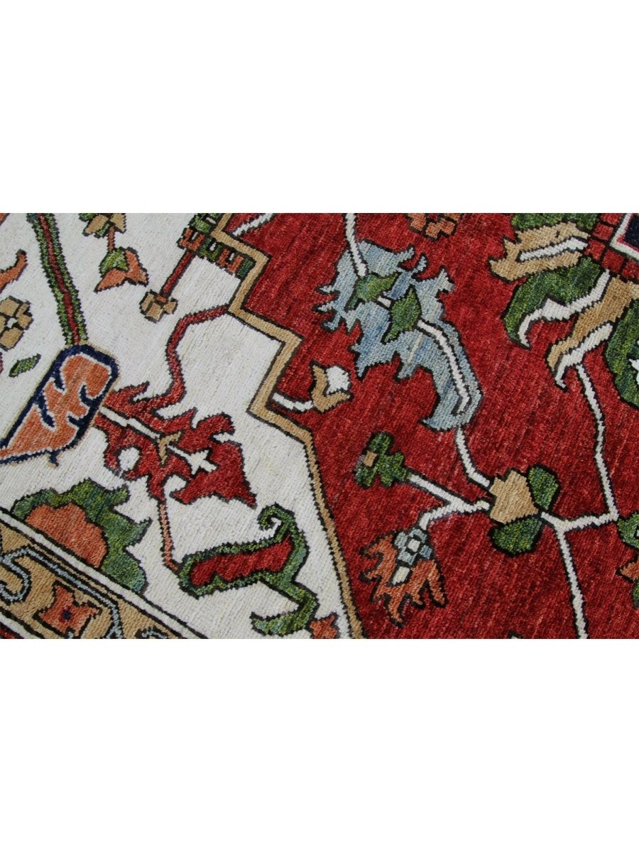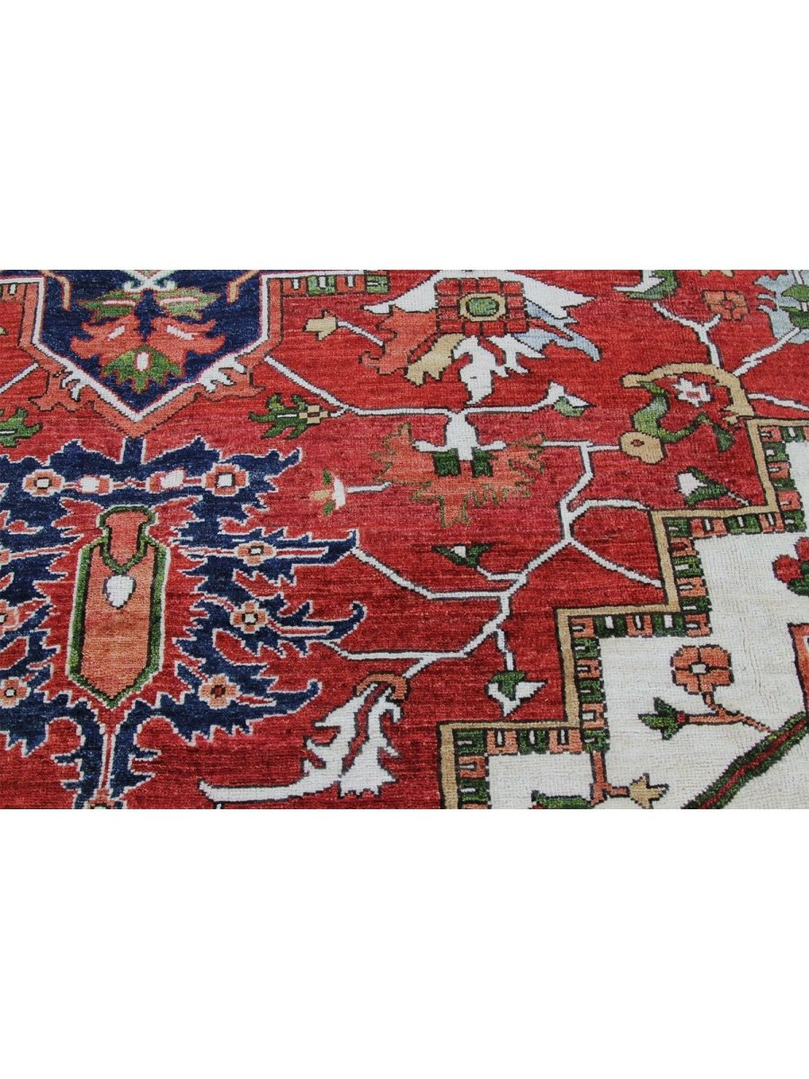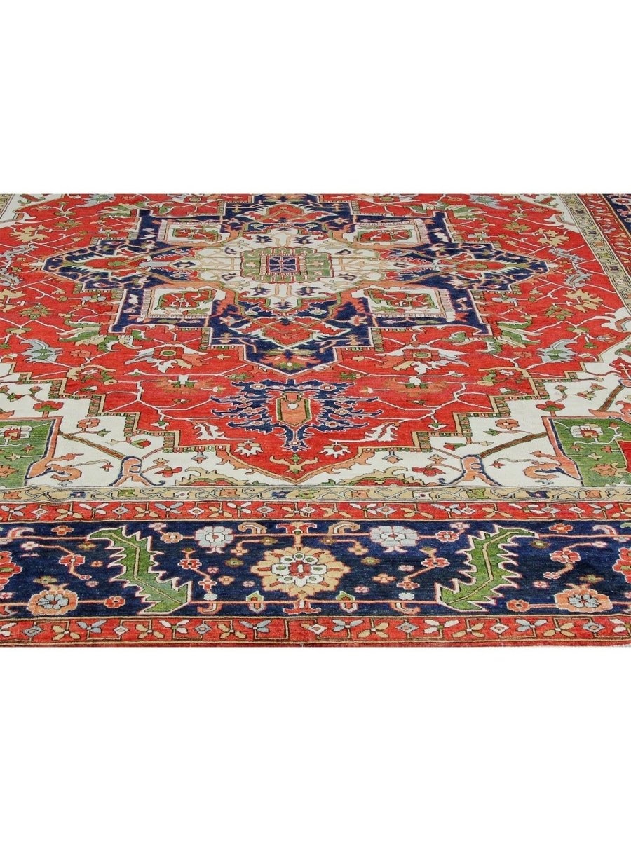 Designed in Pakistan, this 12x15 Heriz Style area rug brings classic artistry to your space. Crafted from high-quality wool, it possesses a soft texture and durable weave, making it a beautiful, long-lasting addition to the home. It features a captivating geometric pattern with a prominent central medallion. Rug displays vibrant tones including deep red, deep blue, green, and ivory, creating a refined, balanced look. Its generous size makes this area rug perfect for anchoring spacious living rooms, dining areas, and bedrooms, adding warmth and character. Artisan craftsmanship reflects heritage skill and detail, making it a subtle, standout piece. With free shipping across the United States, this wool rug is an inviting addition to decor. Surely it's a perfect addition for years to come.