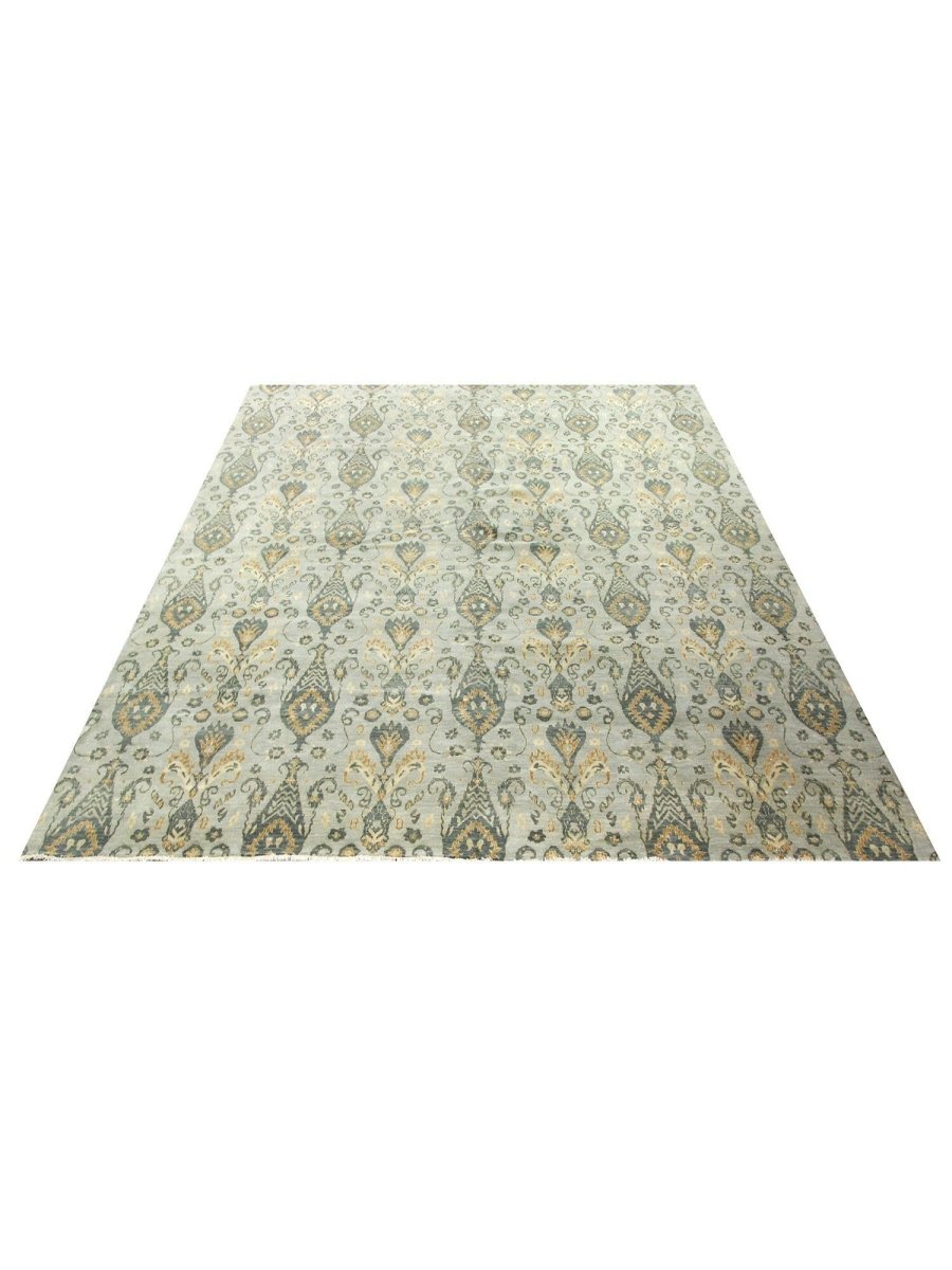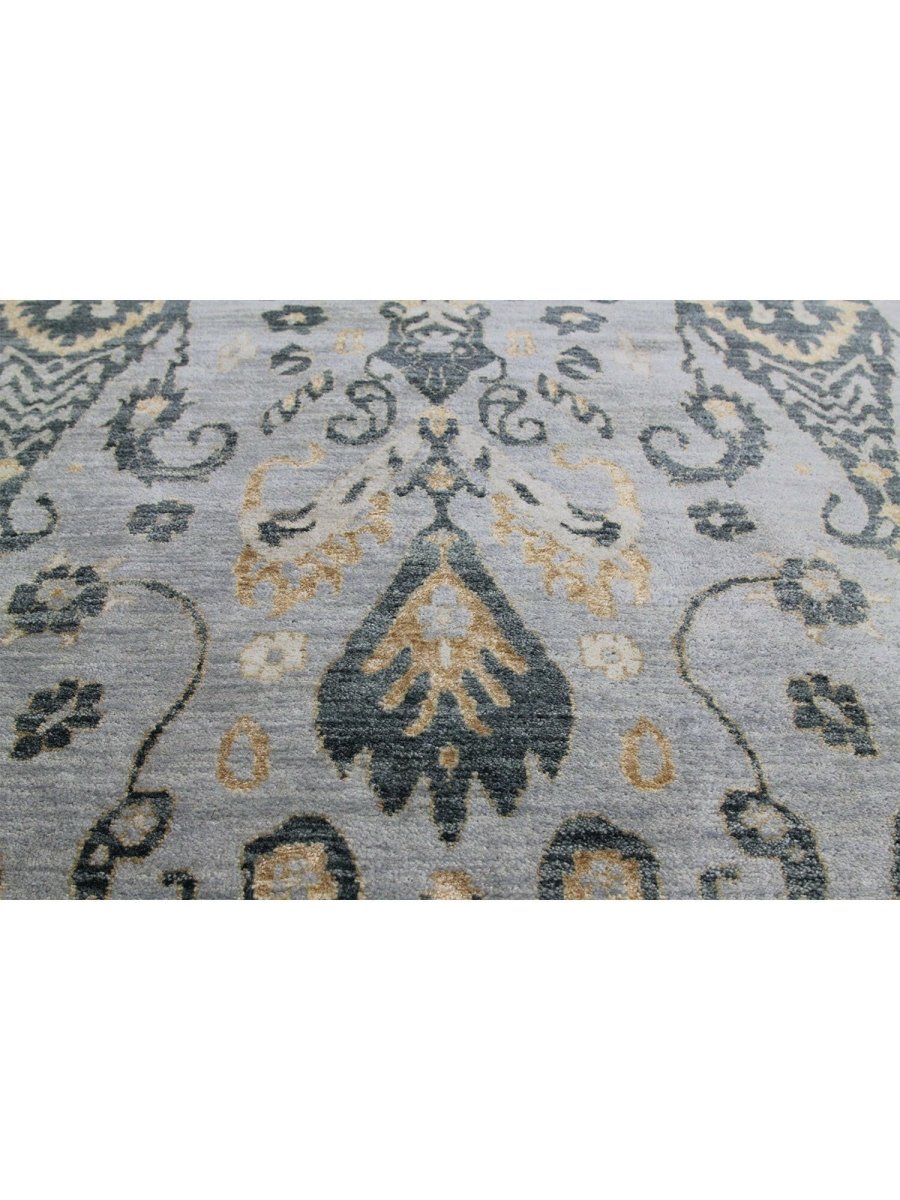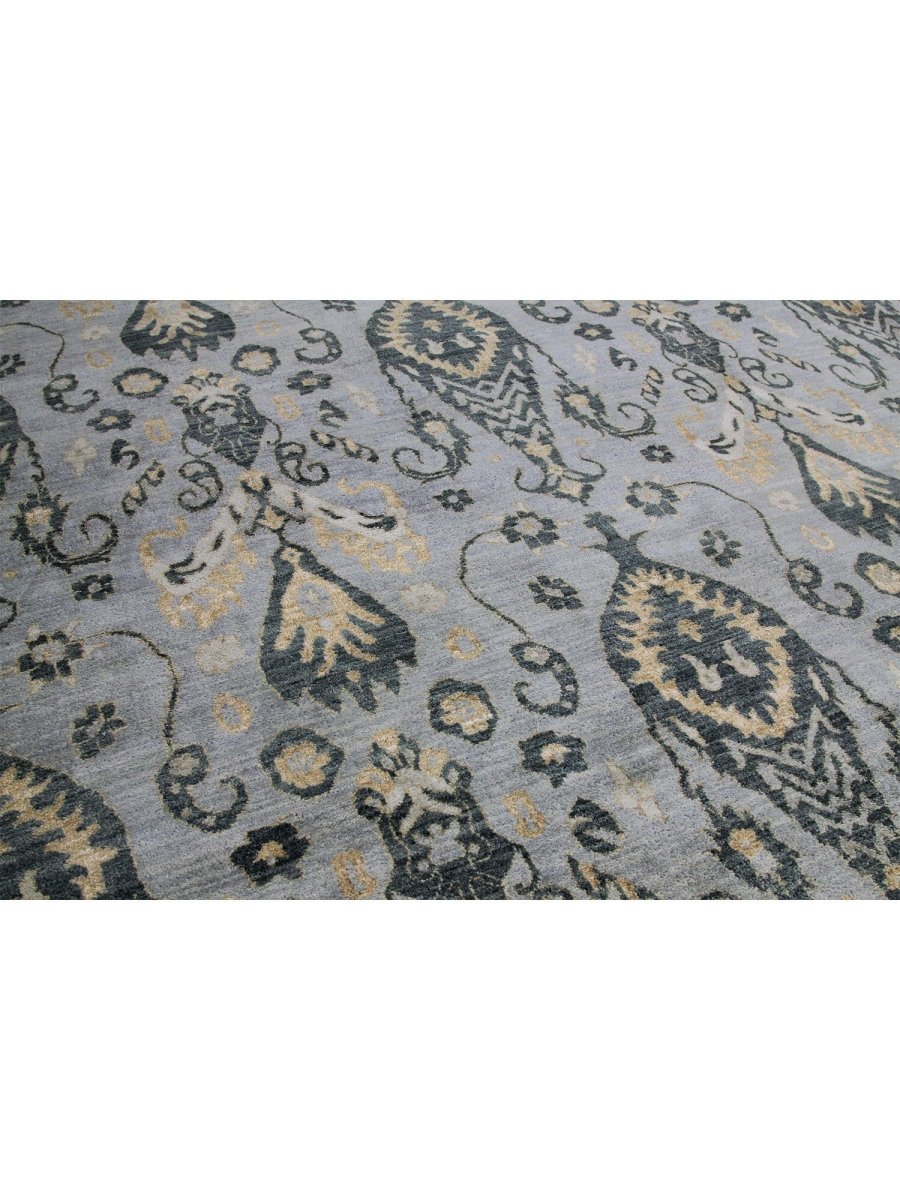 Immerse your space in the unique allure of this magnificent 12x15 Ikat Area Rug. Hand-knotted by skilled artisans in India from premium wool, this new rug offers a soft underfoot feel and exceptional durability. The captivating floral Ikat pattern features intricate motifs in gentle tones of light blue, gray, dark green, and gold, creating a sophisticated and calming visual appeal that effortlessly enhances any room.