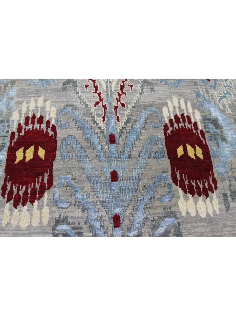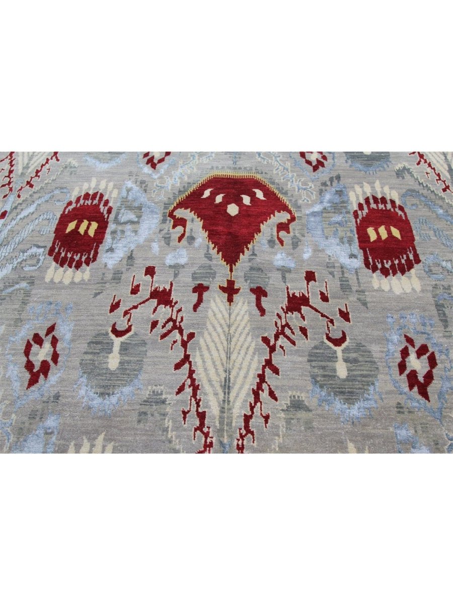 Discover the captivating appeal of the 12x15 Indo Ikat Area Rug, a distinctive piece that brings classic style and timeless charm. Hand-knotted from premium wool and bamboo silk, this exquisite rug showcases a striking design with geometric motifs that adds personality and visual interest to any space. Its rich blend of burgundy, beige, blue, and gray tones creates a versatile palette that complements a wide range of interior styles. Crafted with care and attention to detail, this exceptional rug serves as both a functional foundation and a stunning work of art. Enjoy the convenience of free delivery within the U.S., bringing this beautiful piece directly to your home.
