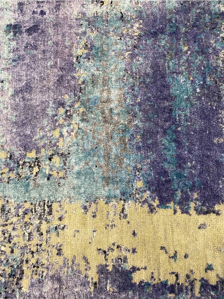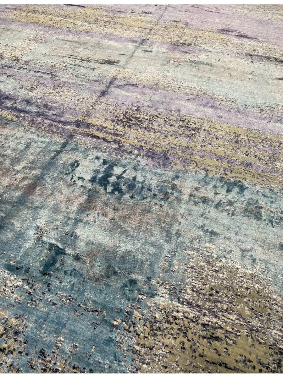 The luxurious blend of high-quality wool and lustrous bamboo silk materials provides a remarkably soft pile with a subtle sheen, enhancing the depth and complexity of the abstract design. This rug is an exceptional choice for creating a strong visual foundation and adding a refined artistic presence to your interior. Its striking colors and unique abstract composition make it a natural focal point and a true conversation starter, offering both comforting warmth and a distinct contemporary appeal. Designed to enhance the overall atmosphere, it brings balance, character, and modern sophistication to any space.