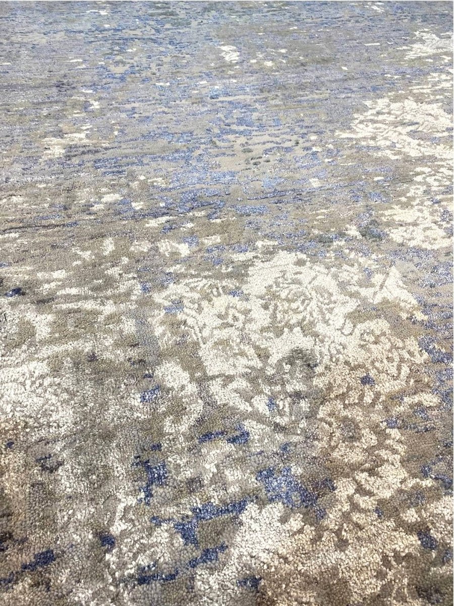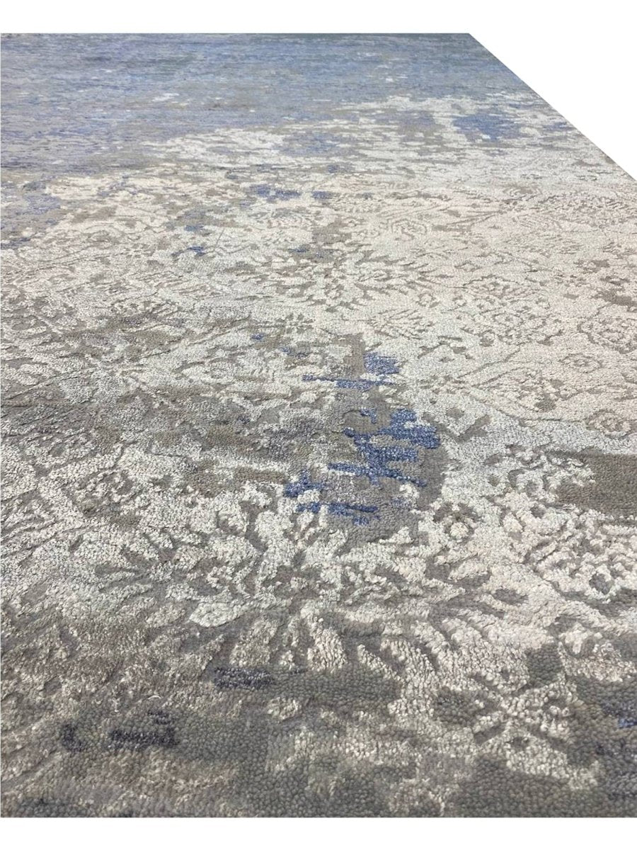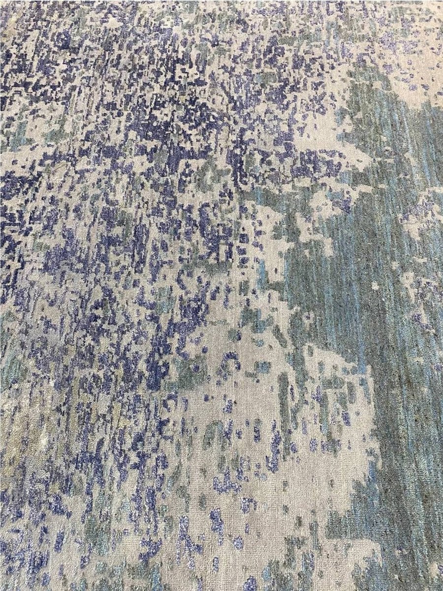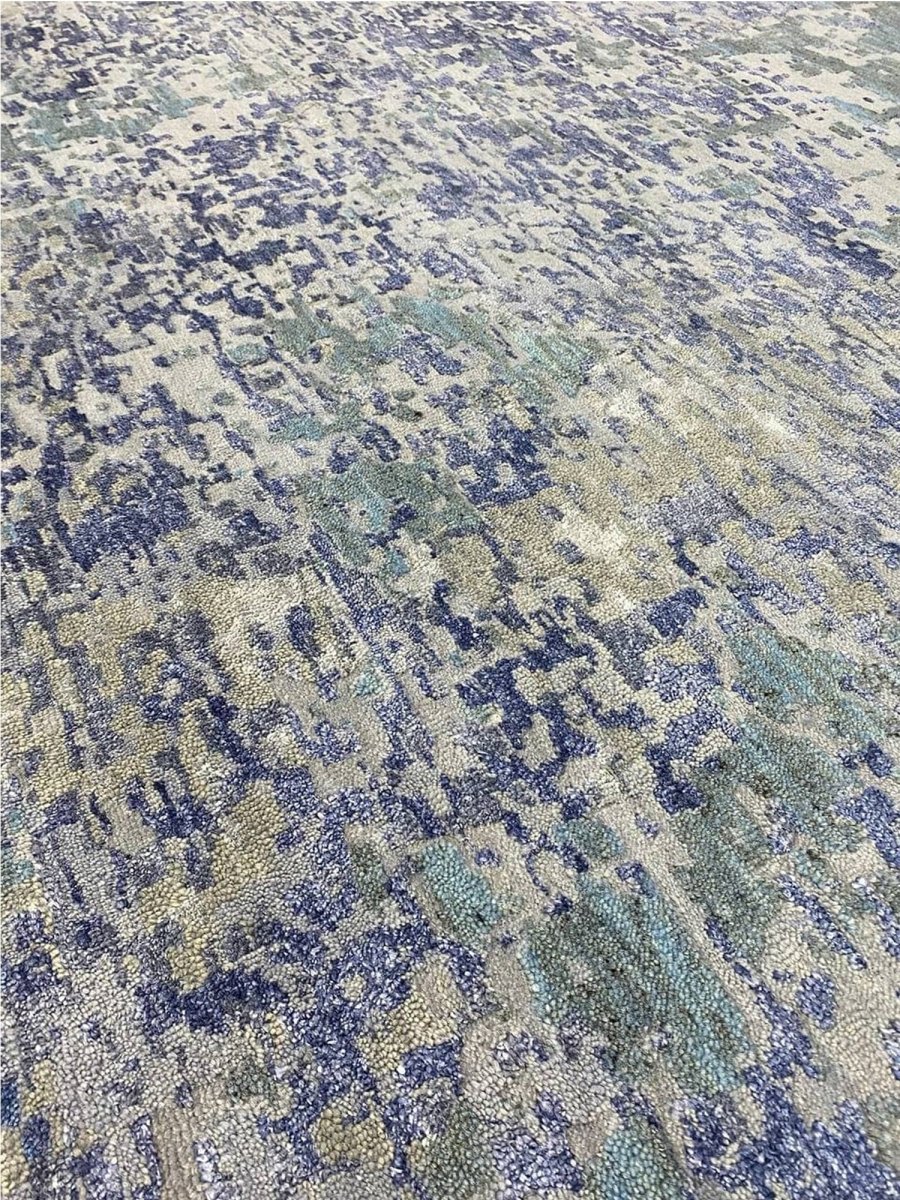 The luxurious blend of high-quality wool and lustrous bamboo silk materials provides a remarkably soft pile with a subtle sheen, enriching the delicate texture of the abstract design. Its subtle colors and artistic abstract pattern ensure it serves as a versatile and elegant centerpiece, offering both comforting warmth and a sophisticated visual appeal that elevates the overall ambiance of your home.