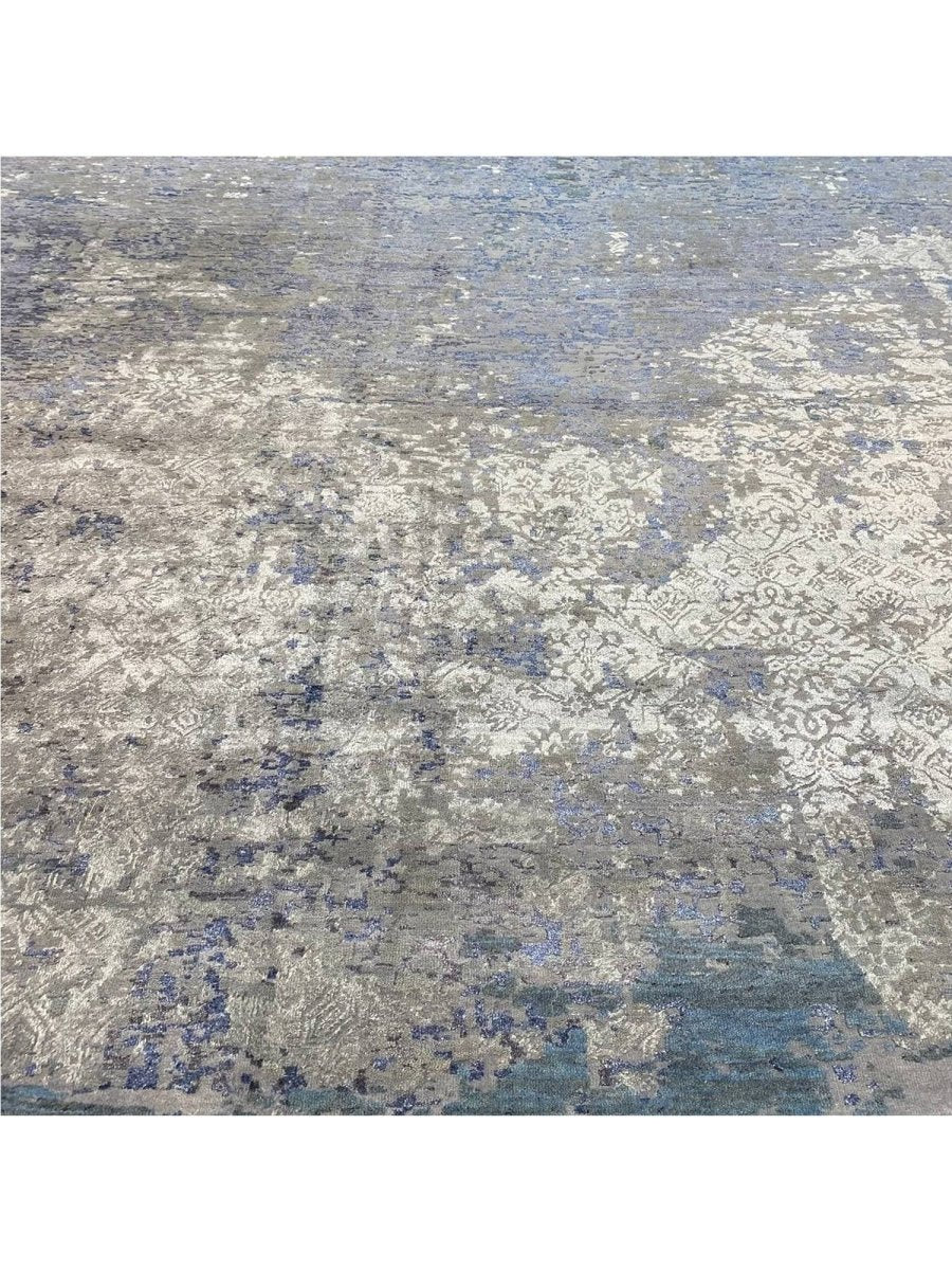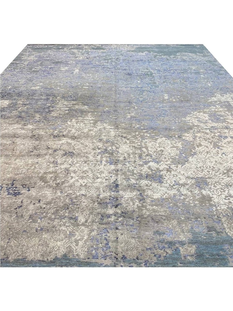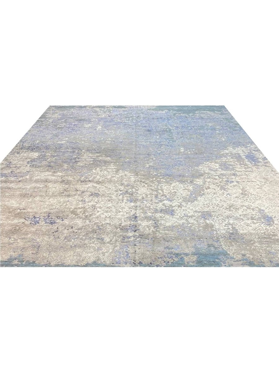 Introduce a tranquil and artistic presence to your home with this captivating hand-knotted 12x15 modern abstract area rug, meticulously crafted in India. This generously sized rug features a compelling abstract pattern, where gentle washes of gray, beige, and blue tones blend seamlessly across the surface, creating a serene and expansive visual effect. The design evokes a sense of fluid movement and quiet contemplation, offering an understated elegance that enhances any interior.
