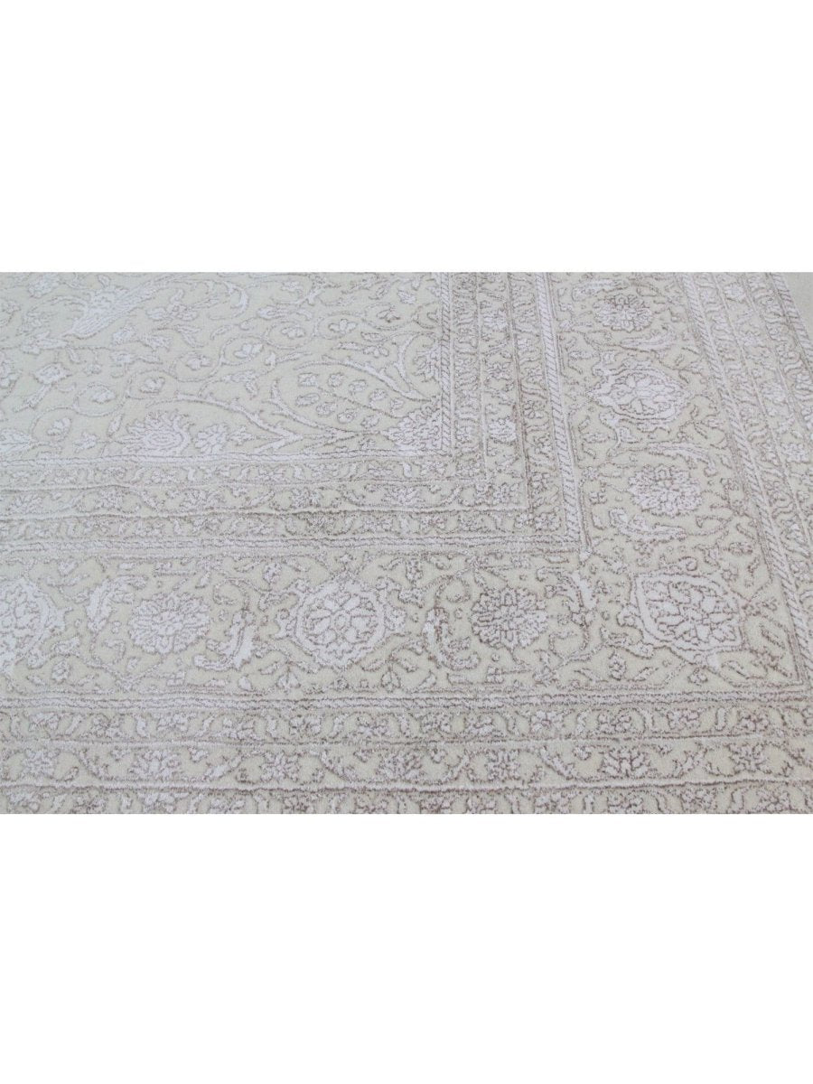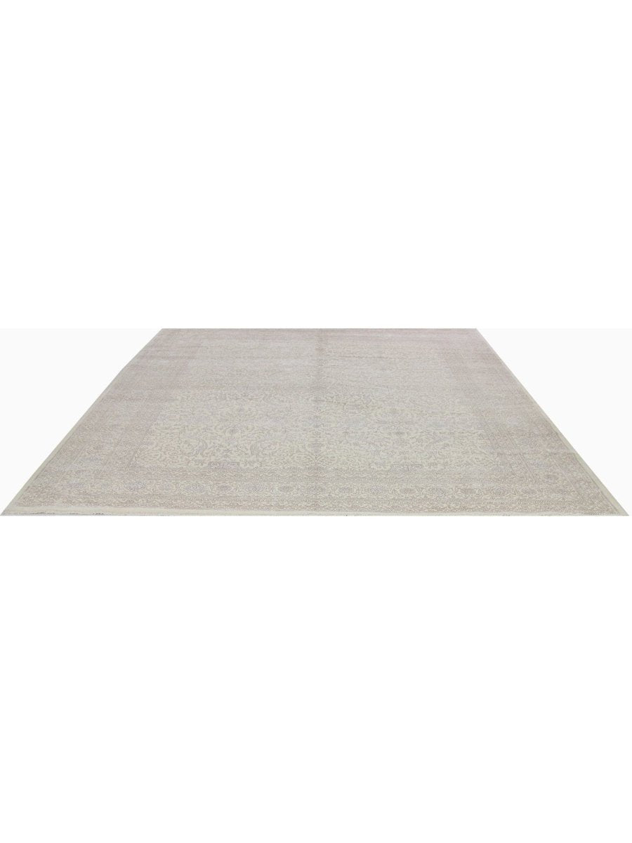 Enhance your home with the subtle elegance of this 12x15 Tabriz Style Area Rug. Handwoven in India, this rug captures the sophisticated aesthetic of traditional Tabriz designs with its stunning all-over floral pattern. The color palette features a soft, light beige and gray background, creating a calming and versatile foundation. Subtle accents of muted color are woven throughout the floral motifs and borders, adding depth and complexity to the design. Crafted from premium wool, this area rug offers a soft texture and lasting quality, perfect for anchoring large rooms such as spacious living rooms, dining rooms, or bedrooms. Its 12x15 size offers a perfect balance of scale and sophistication, bringing elegance and authentic craftsmanship to your space.
