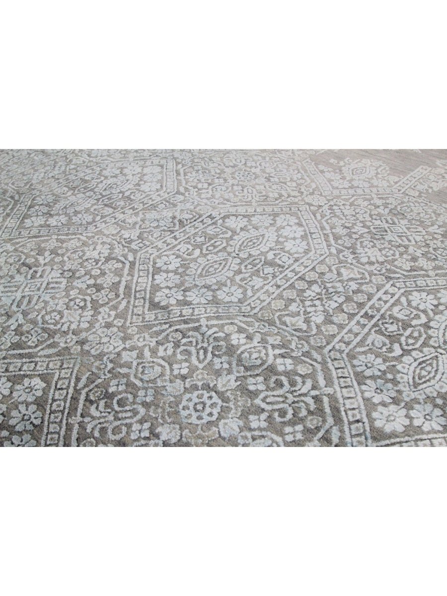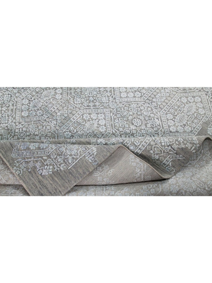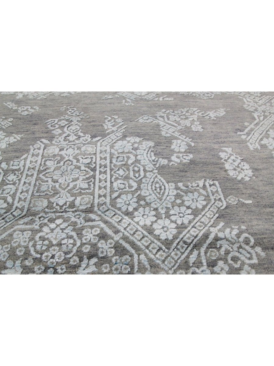 The colors, including subtle tones of light gray, beige, and light blue, create a harmonious and calming effect that effortlessly complements diverse decor styles. Its expansive size makes it an ideal choice for enhancing a grand living room, adding elegance to a large dining area, or bringing comfort to a spacious bedroom, seamlessly integrating into your existing aesthetic. This hand-knotted rug is a true testament to the skilled artistry of Indian weaving, promising to be a cherished addition that elevates the aesthetic and comfort of your home.