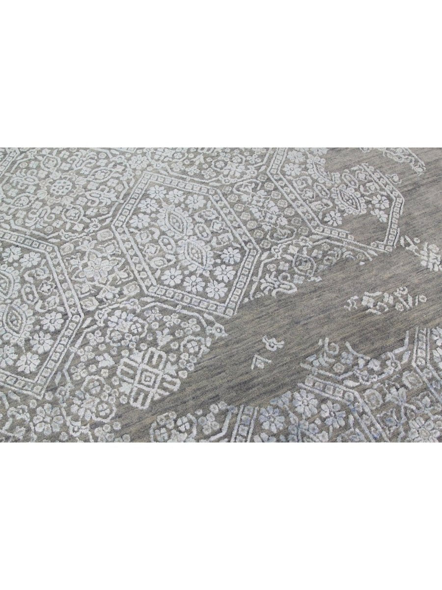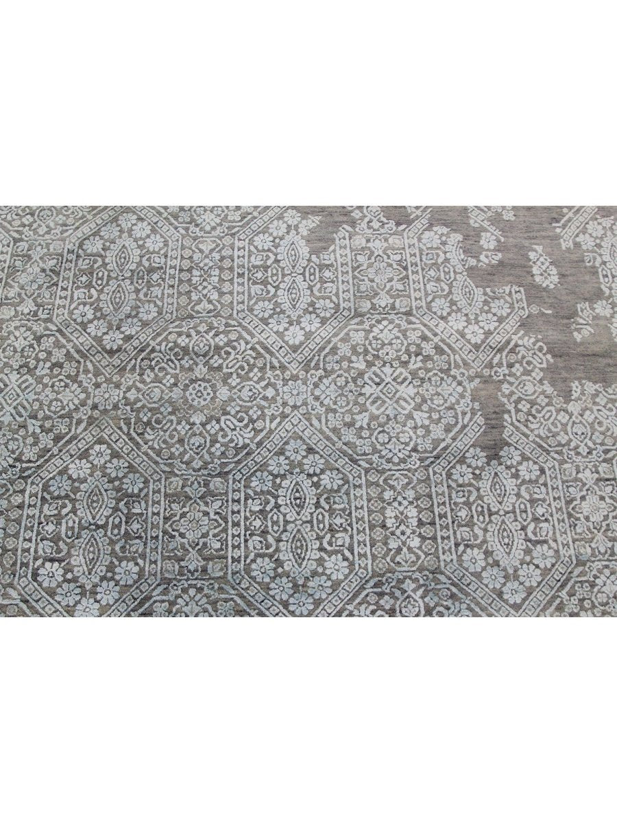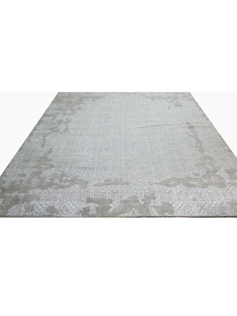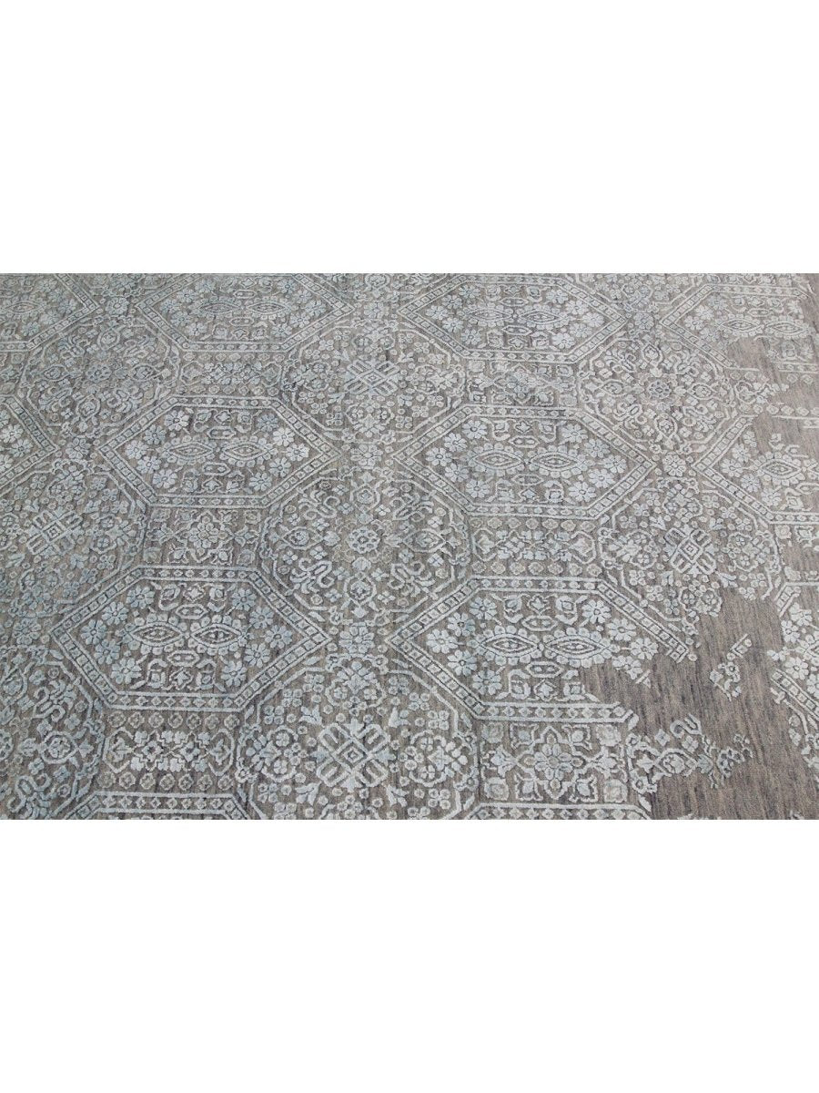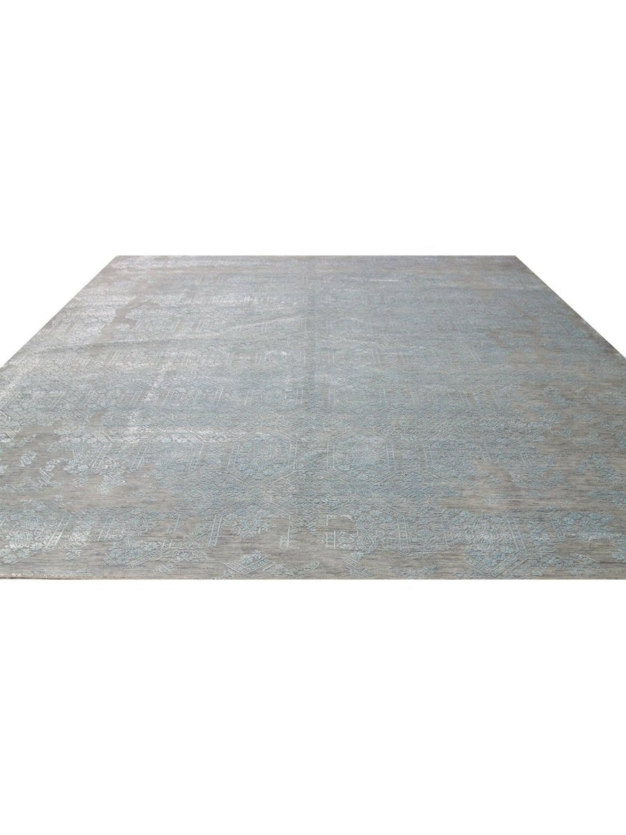 Immerse your space in the sophisticated allure of this magnificent 12x15 Transitional area rug. Hand-knotted by skilled artisans in India, this piece showcases a captivating geometric pattern that brings a refined and inviting atmosphere to any room. Crafted from a luxurious blend of premium wool and bamboo silk, this rug offers a sumptuous underfoot feel coupled with exceptional durability.