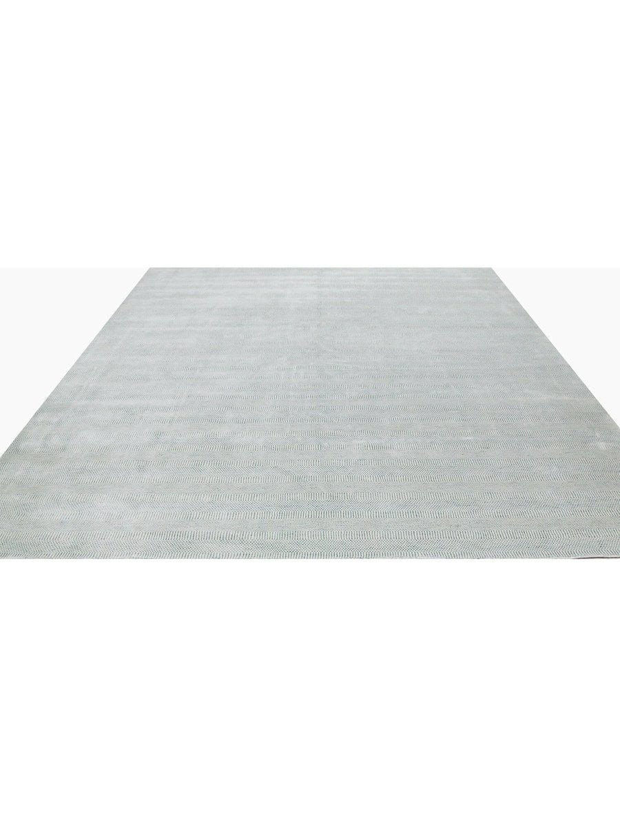 Decorate your space with the sophisticated allure of this magnificent 10x14 Transitional area rug. Hand-knotted by skilled artisans in India, this new piece showcases a captivating geometric pattern that brings a refined and inviting atmosphere to any room. Crafted from a luxurious blend of premium wool and bamboo silk, this rug offers a sumptuous underfoot feel coupled with exceptional durability.