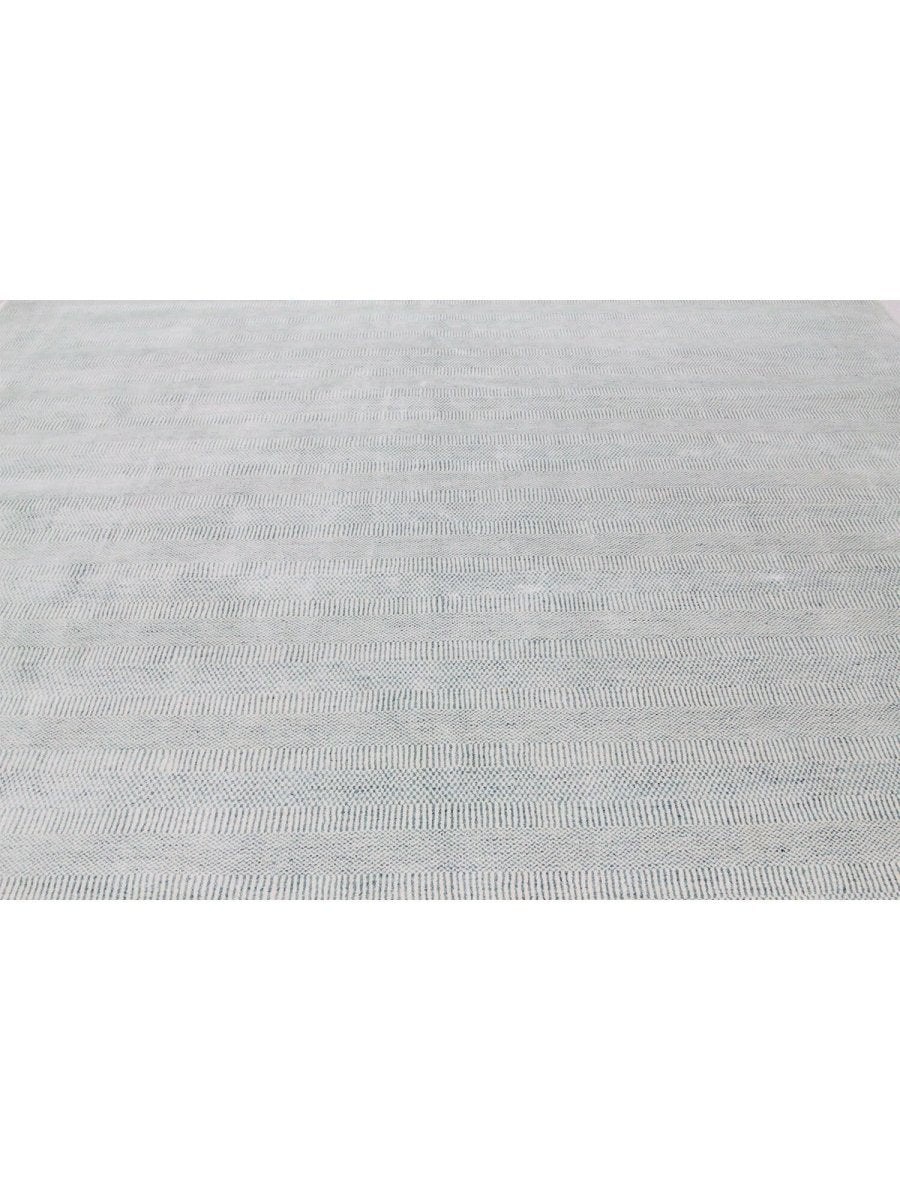 The colors, including subtle tones of light gray and cream, create a harmonious and calming effect that effortlessly complements diverse decor styles. Its expansive size makes it an ideal choice for enhancing a grand living room, adding elegance to a large dining area, or bringing comfort to a spacious bedroom, seamlessly integrating into your existing aesthetic. This hand-knotted rug is a true testament to the skilled artistry of Indian weaving, promising to be a cherished addition that elevates the aesthetic and comfort of your home.