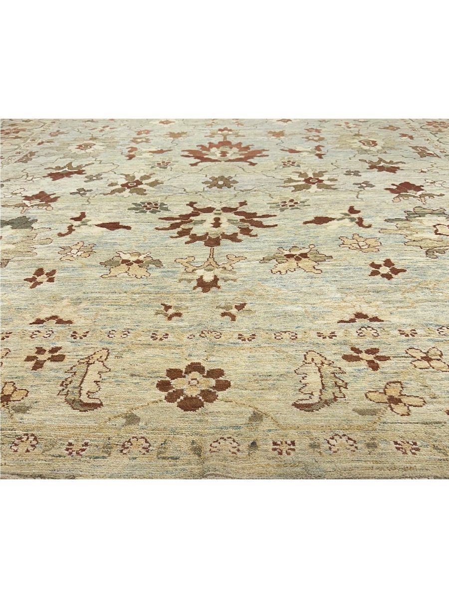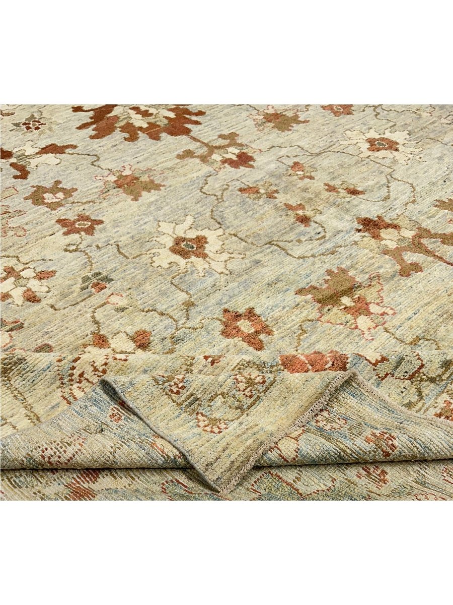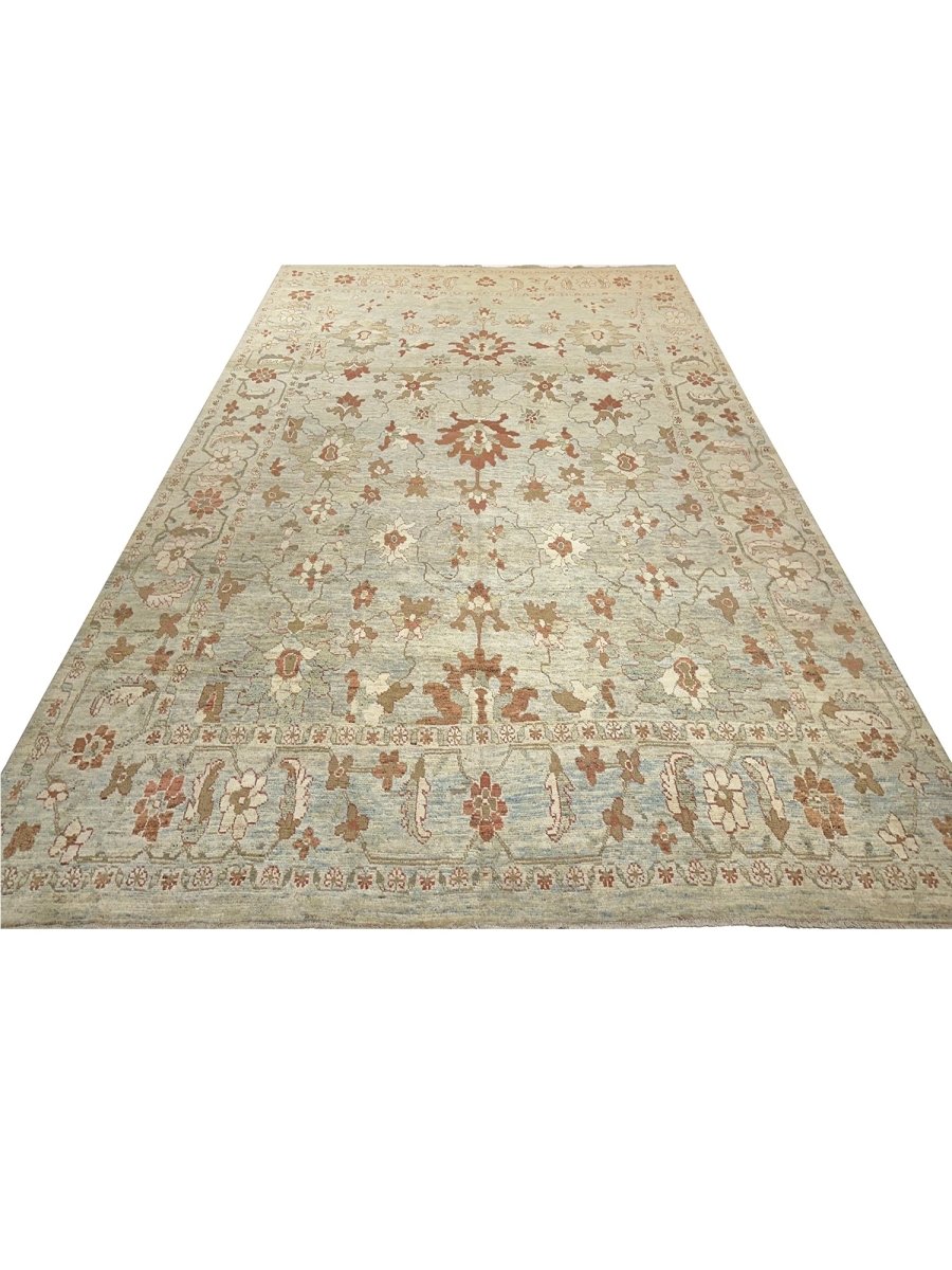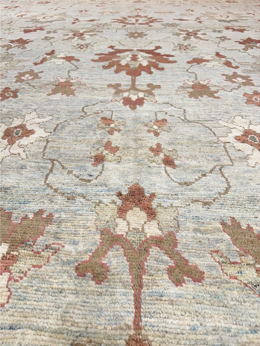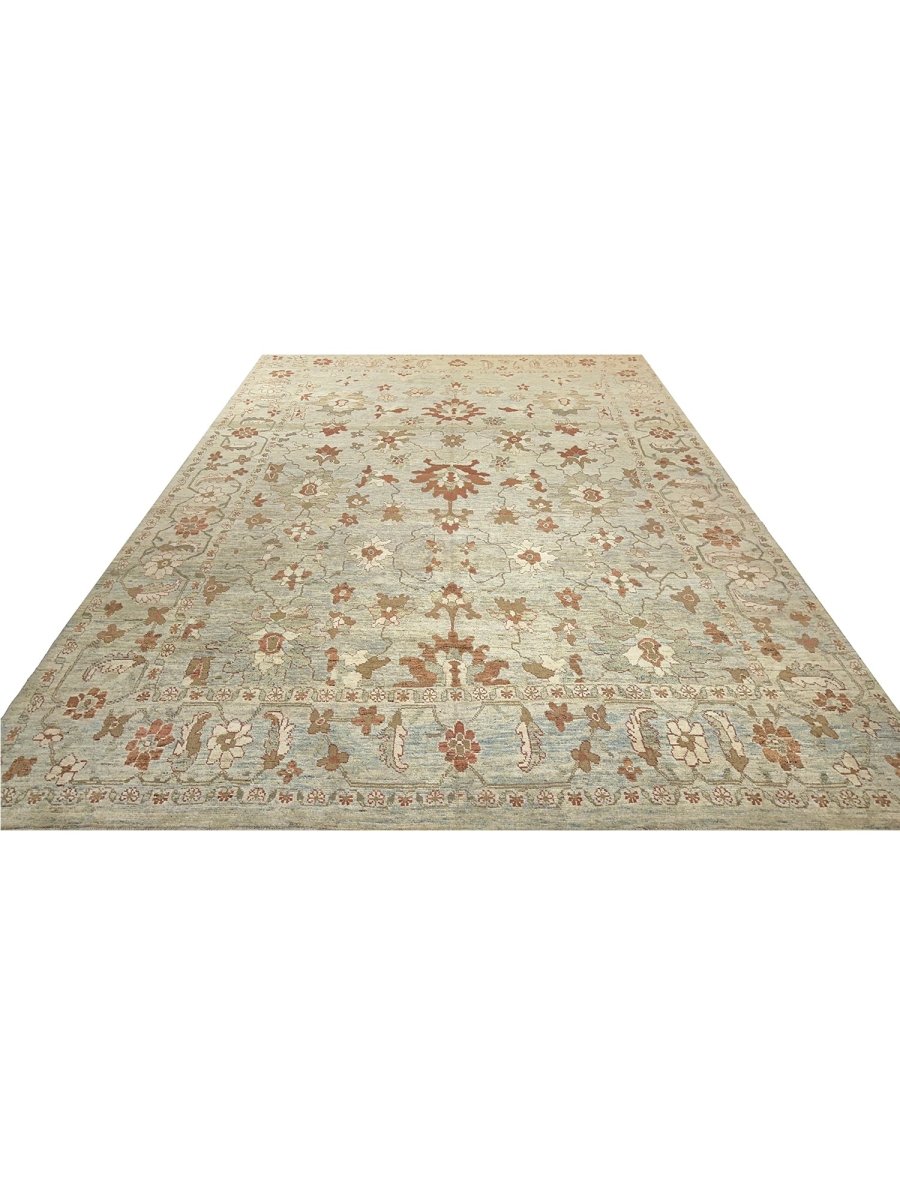 Experience the beauty of traditional Persian craftsmanship with this beautiful 12x16 Persian Sultanabad area rug, expertly hand-knotted in Persia using high-quality wool. This rug has a charming geometric design with floral motifs. The grayish-beige base of the rug provides a soothing backdrop for the vibrant pattern, which features stunning rust and gray colors. With its classic Persian design, timeless color palette, and durable construction, this rug is perfect for adding a touch of elegance and sophistication to any room. It will remain a beautiful and functional piece of art for years to come. Whether placed in a formal living room, spacious bedroom, or dining room, this rug will become a stunning focal point that ties the entire space together, complementing various decorating styles with its intricate pattern and beautiful color palette.