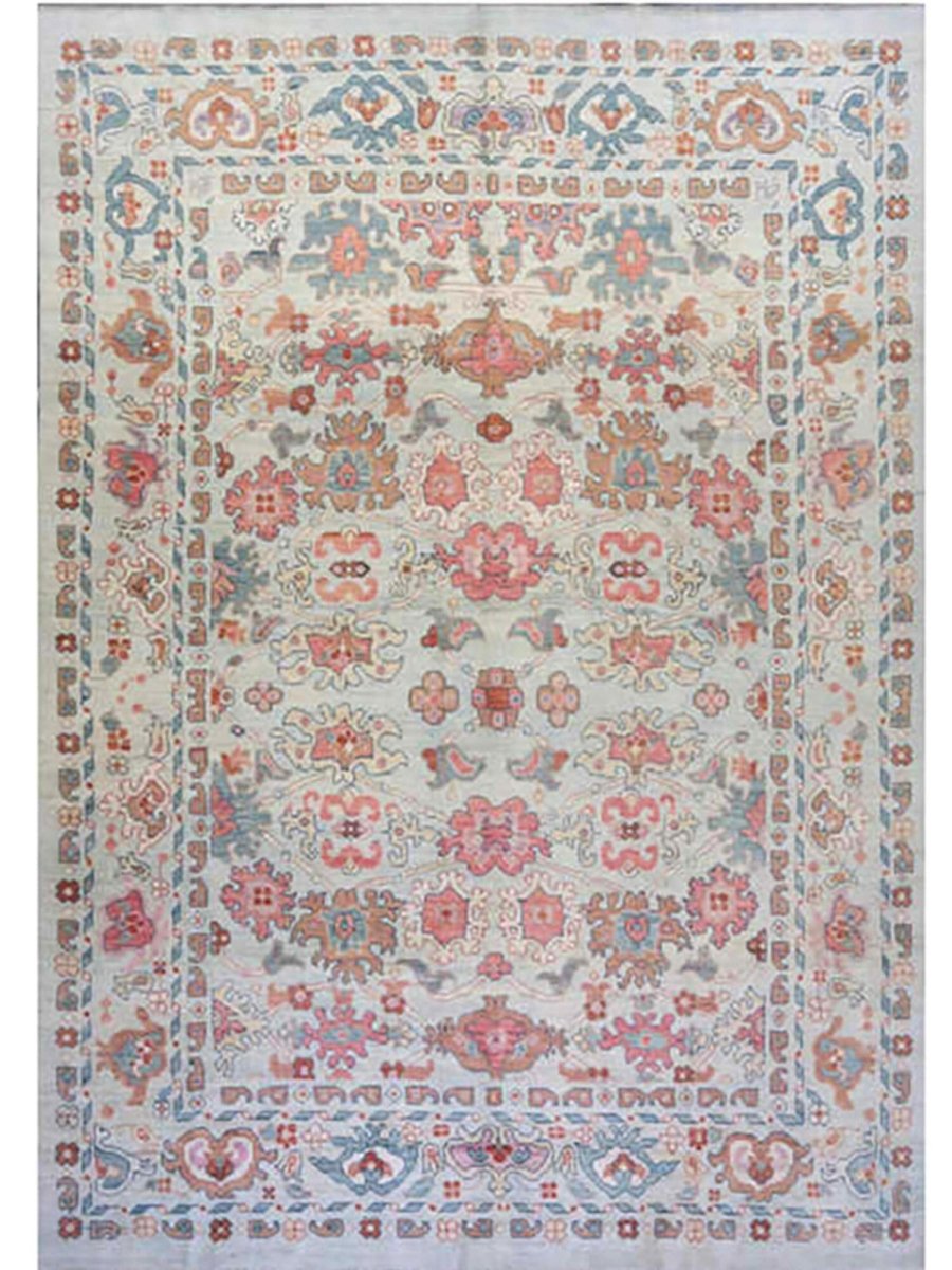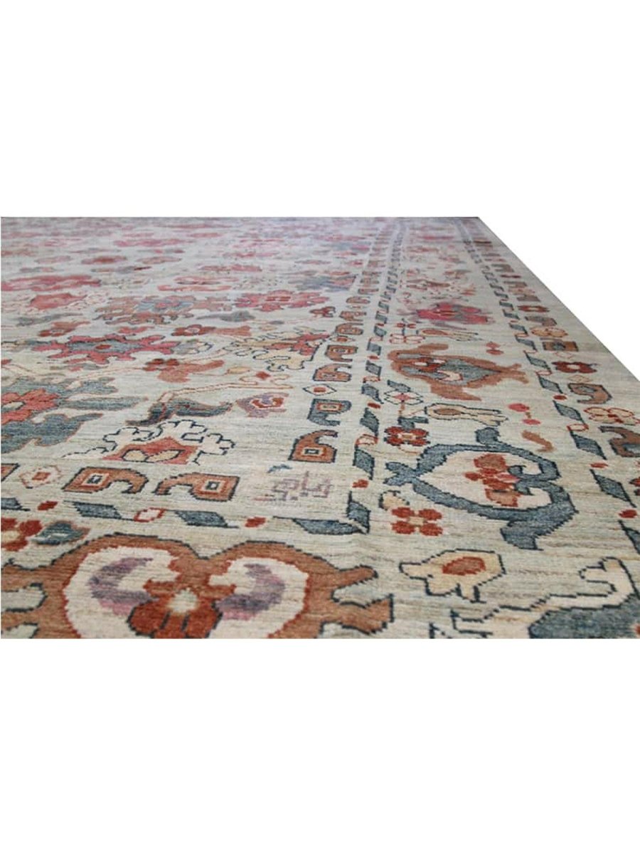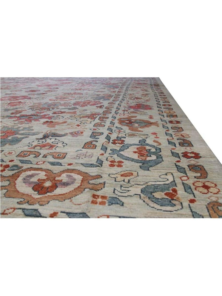Shop this exquisite 11x16 Persian Sultanabad area rug, expertly hand-knotted in Persia using high-quality wool. This rug boasts exceptional quality and a charming floral design. The beige-colored base of the rug provides a neutral and calming backdrop for the vibrant pattern, which features stunning blue, red, and pink colors. With its classic Persian design, timeless color palette, and durable construction, this rug is perfect for adding a touch of elegance and sophistication to any room. It will remain a beautiful and functional piece of art for years to come. Whether placed in a formal living room or spacious bedroom, this rug is sure to become a stunning focal point that ties the entire space together, complementing various decorating styles with its intricate pattern and beautiful color palette.