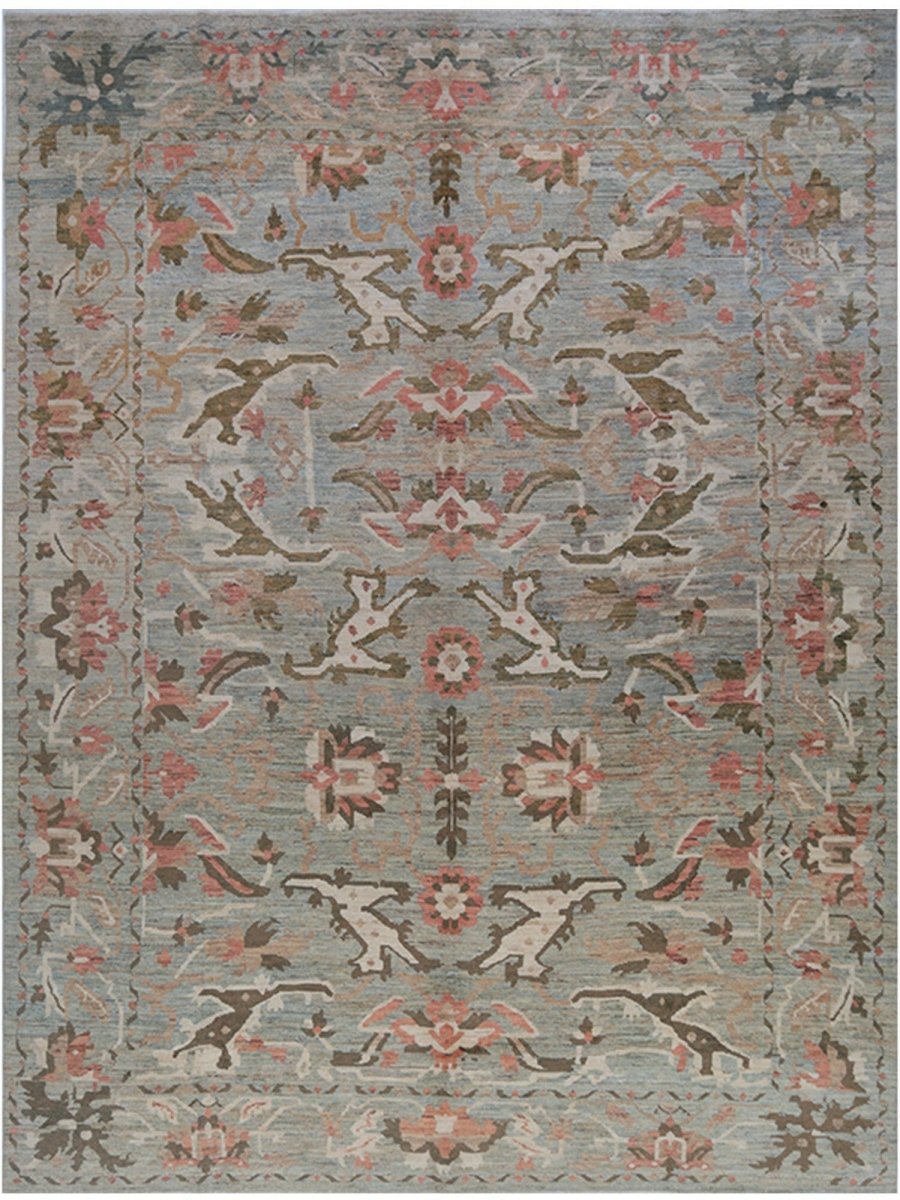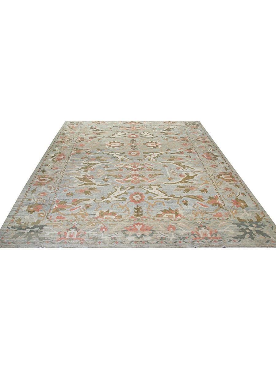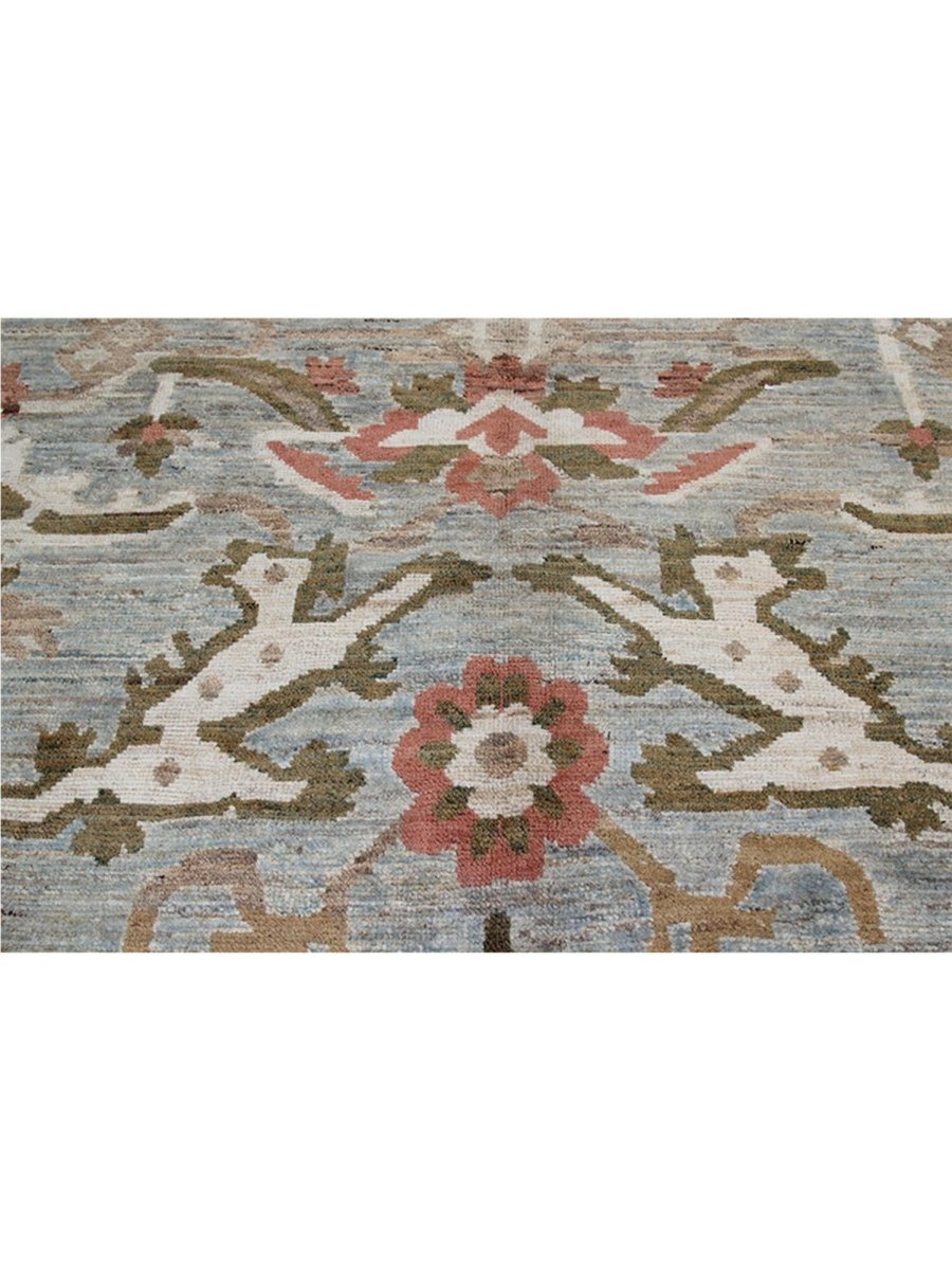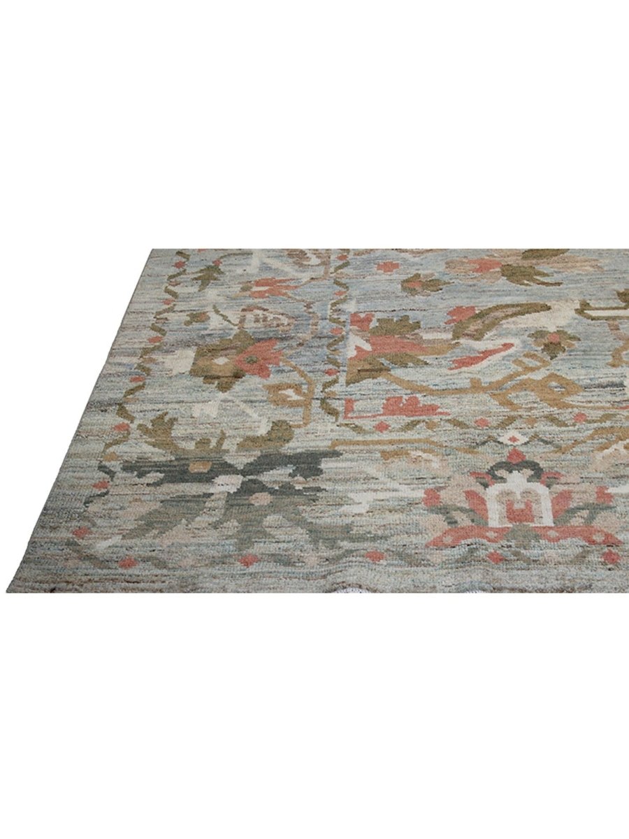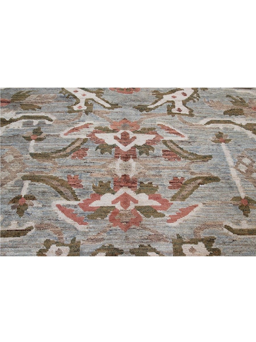 Enjoy the beauty of traditional Persian craftsmanship with this beautiful 12x16 Persian Sultanabad area rug, expertly hand-knotted in Persia using high-quality wool. This rug boasts exceptional quality and a stunning floral pattern. The blueish-gray colored base of the rug provides a sophisticated and calming backdrop for the vibrant pattern, which features stunning green, pink, beige, and orange colors. With its classic Persian design, timeless color palette, and durable construction, this rug is perfect for adding a touch of elegance and sophistication to any room. It will remain a beautiful and functional piece of art for years to come. Whether placed in a formal living room, spacious bedroom, or cozy study, this rug will surely become a stunning focal point that ties the entire space together.