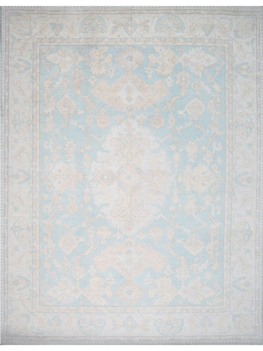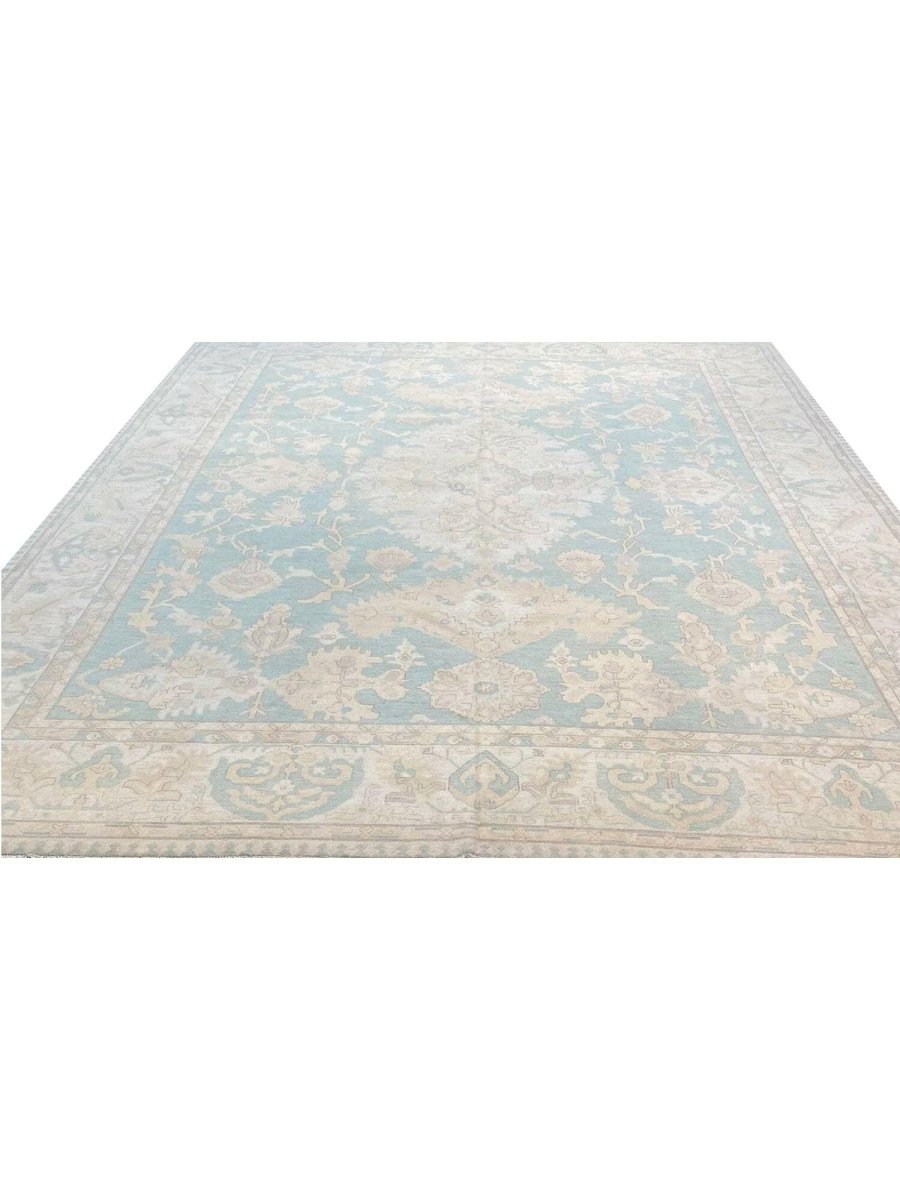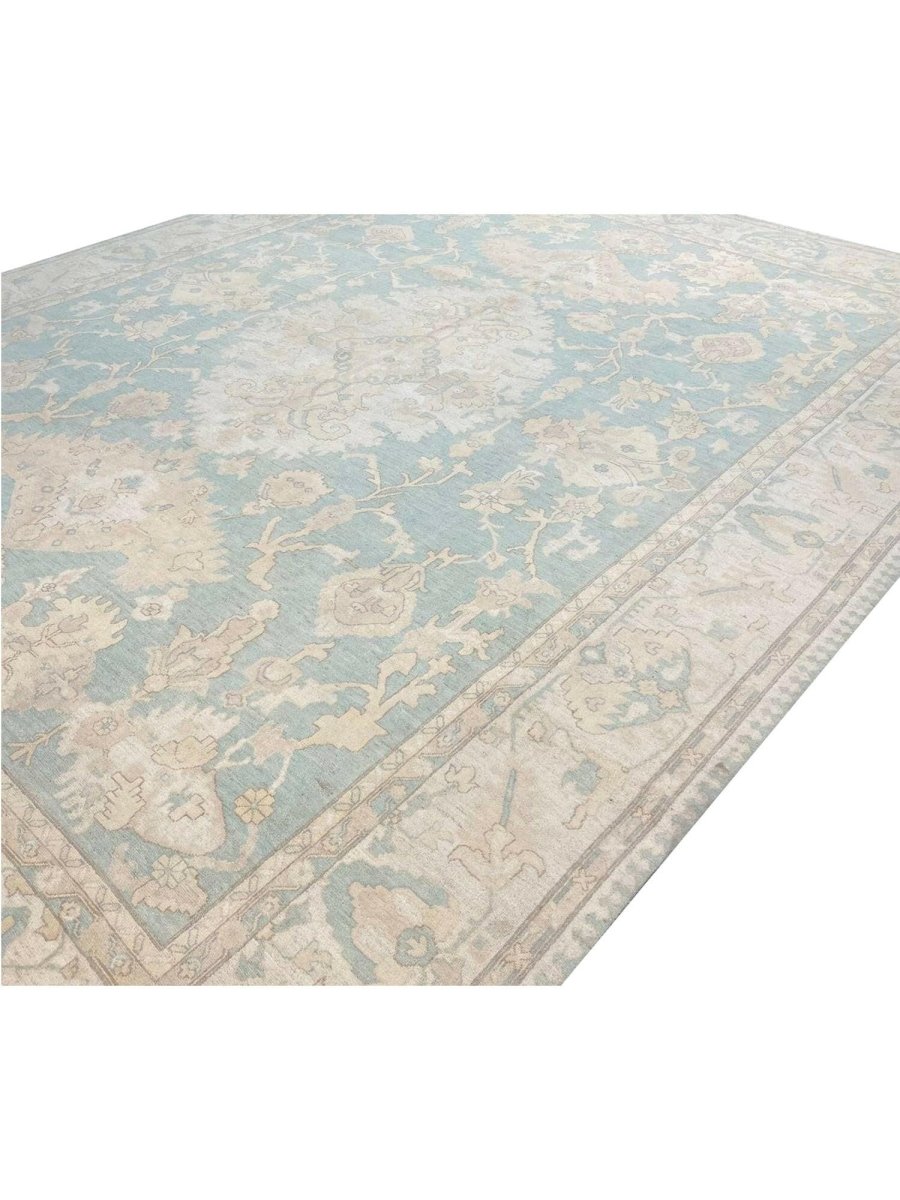 Add warmth and sophistication with the 12x15 Oushak Style Area Rug, a unique addition that brings traditional style and charm to your home. Hand-knotted from the finest quality wool, this stunning rug features a medallion design that adds character and elegance to any room. Perfect for dining rooms, living spaces, or adding drama to an entranceway, it creates a cozy atmosphere. The striking combination of earthy tones like greenish-blue, beige, and brown complements a variety of home styles. This exceptional piece not only enhances your décor but also serves as a beautiful work of art. Enjoy free US shipping.