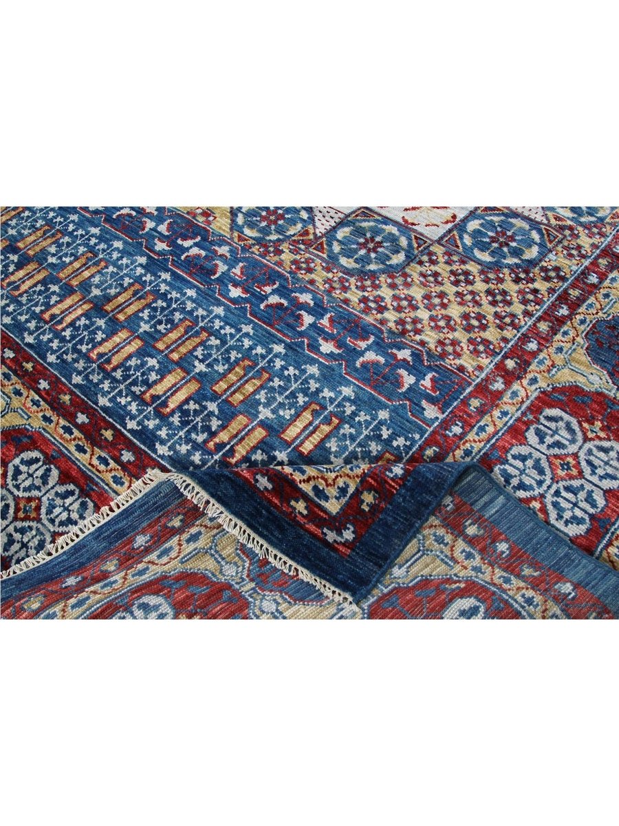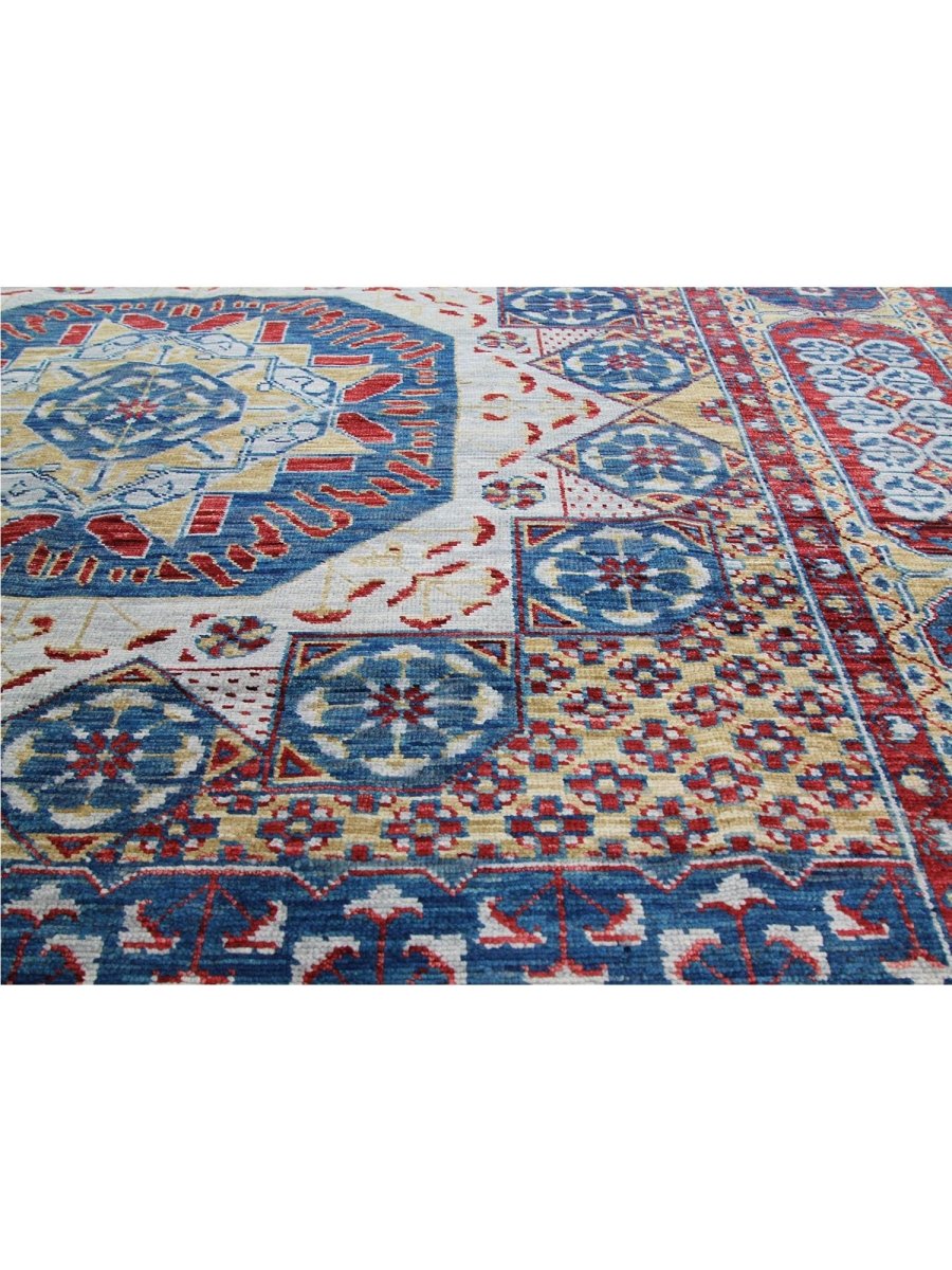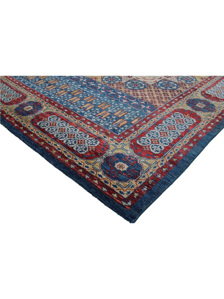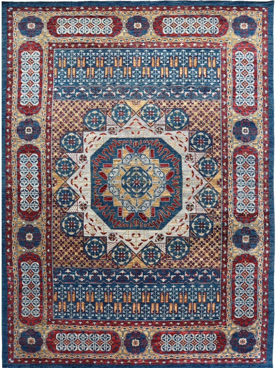 Add a touch of classic elegance to your home with this 10x14 Mamlouk Style Area Rug, crafted in India. This rug features a captivating medallion pattern, showcasing intricate motifs in a rich, deep blue, deep red, light beige, and gold palette. Composed of durable wool, it ensures longevity and is perfect for spacious living rooms, dining areas, or bedrooms. The intricate border detail reflects expert craftsmanship and enduring design. This piece effortlessly elevates, adding warmth, texture, and sophistication. A true blend of artistry and utility, it easily brings heritage charm into any space. Enjoy the benefit of free shipping across the United States. Each rug has one-of-a-kind subtle variations inherent to its creation.