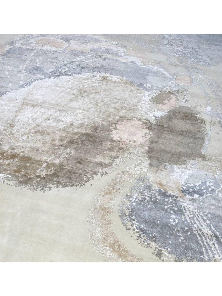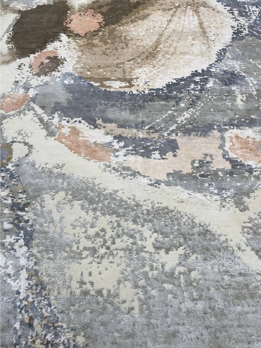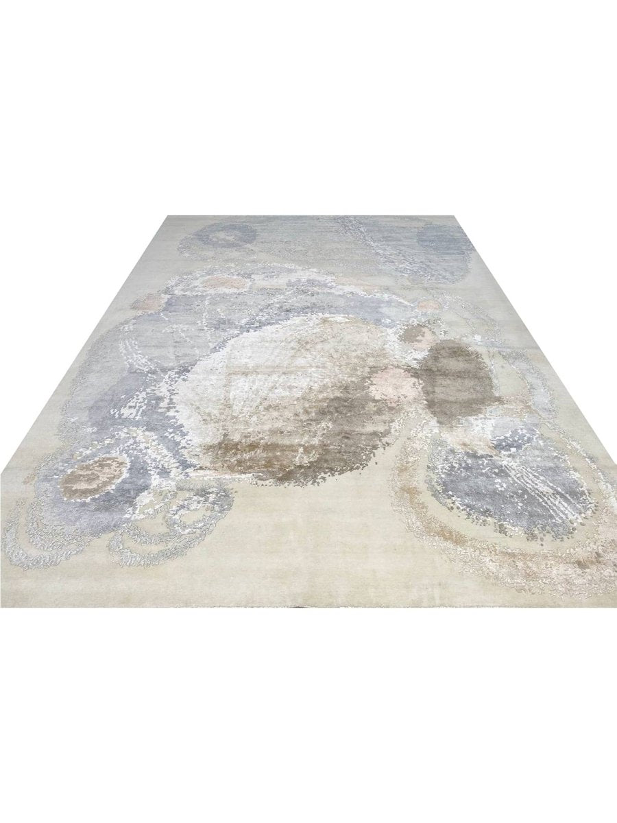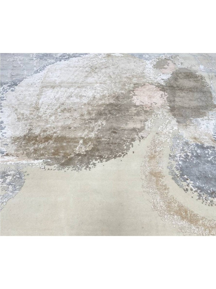 The 10x14 Modern Abstract Area Rug is a unique treasure that embodies the rich history of Indian weaving. Made from premium wool and bamboo silk, this stunning rug features an abstract design that complements any interior style. Its striking blend of beige, brown, peach, gray, and slate blue hues adds depth, character, and visual interest, making it a versatile and sophisticated addition to your home. This exceptional piece is not only a beautiful floor covering but also a work of art that elevates any space. Enjoy free U.S. delivery.