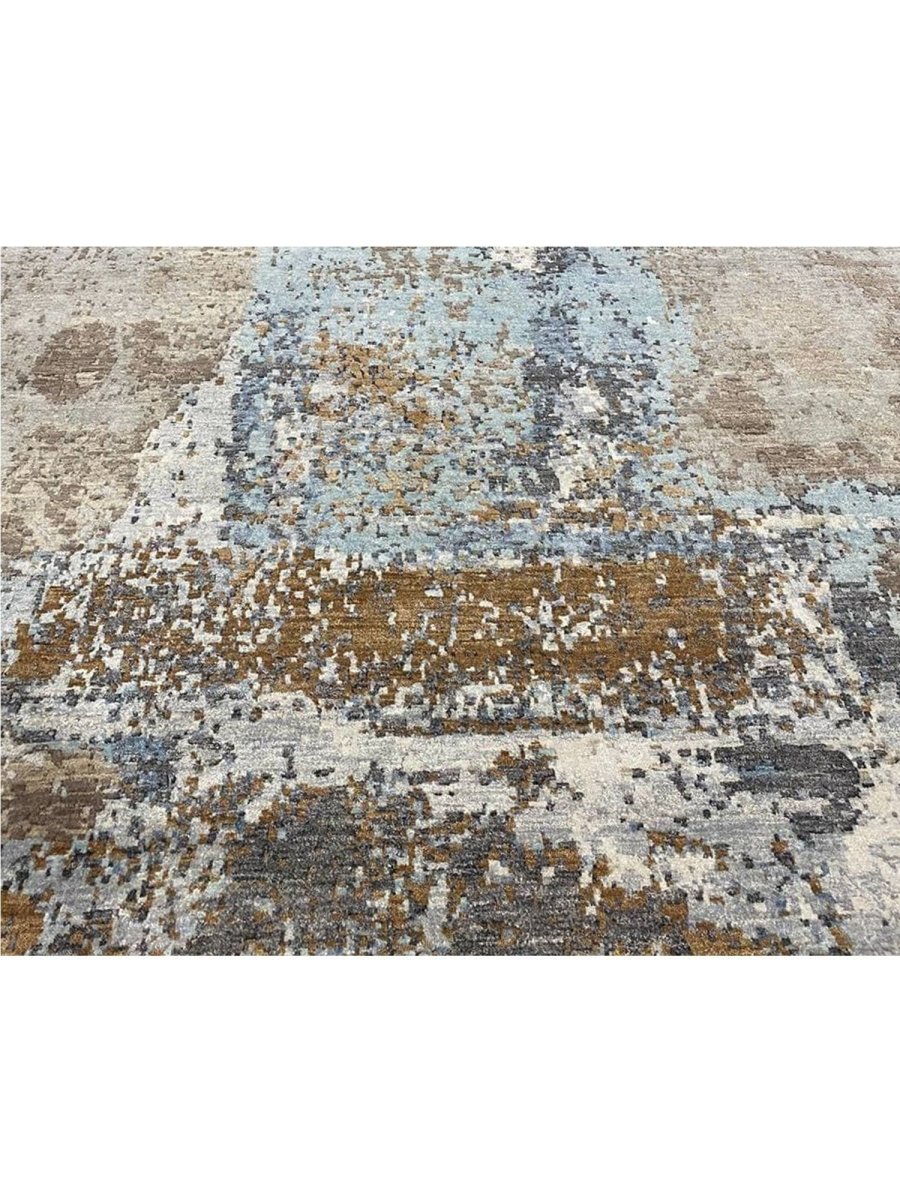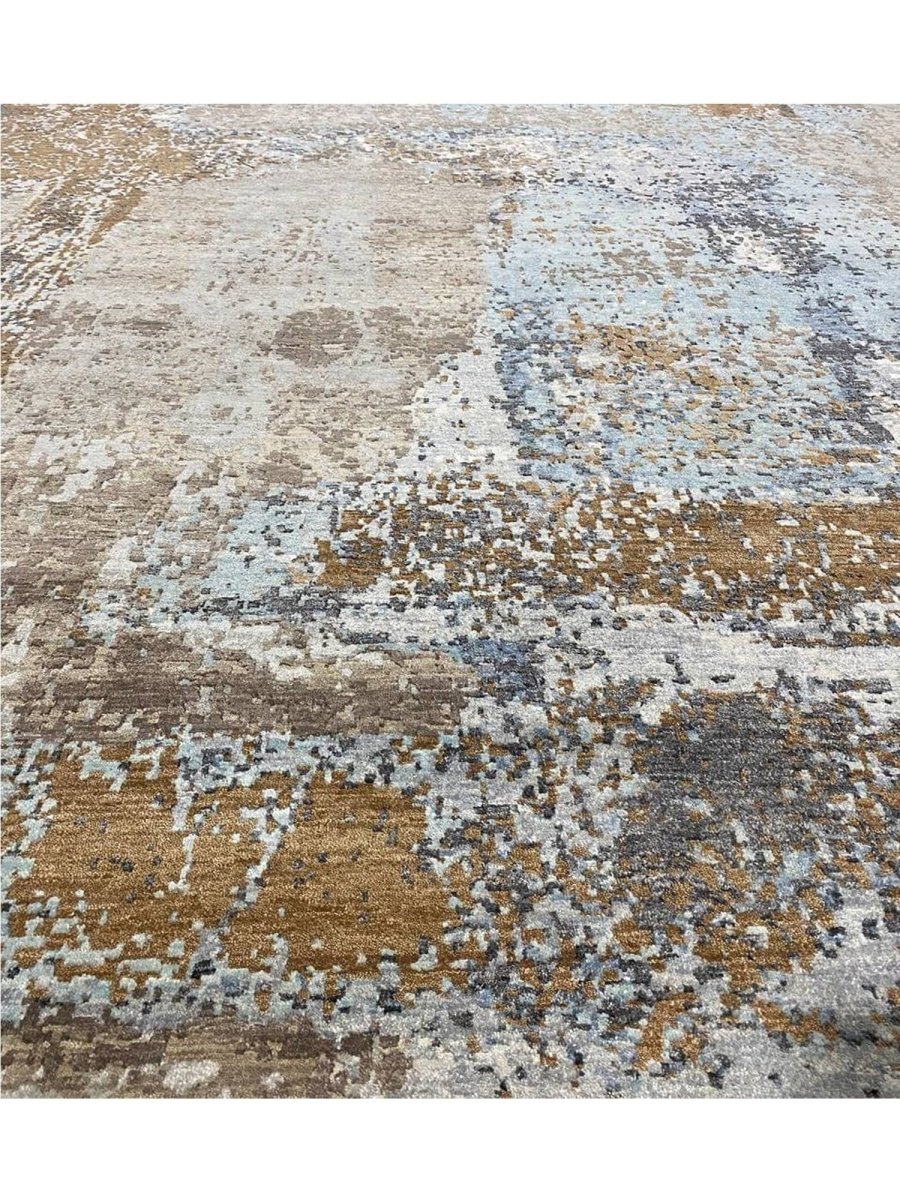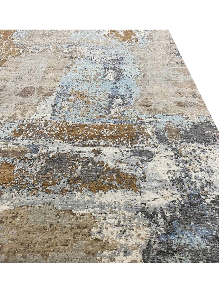 Add a touch of casual style to your home with this 10x14 Modern Abstract Area Rug, crafted in India. This modern rug features a captivating abstract pattern, showcasing a simple yet effective design in a soft palette of beige, brown, blue, charcoal, and gray. Its durable wool and bamboo silk construction ensures longevity and easy care, while the clean finish reflects quality craftsmanship and thoughtful design. This piece effortlessly brightens any interior, adding warmth, texture, and a relaxed yet refined feel. A balanced blend of simplicity and function, it enhances any space with ease. Enjoy free shipping across the United States.