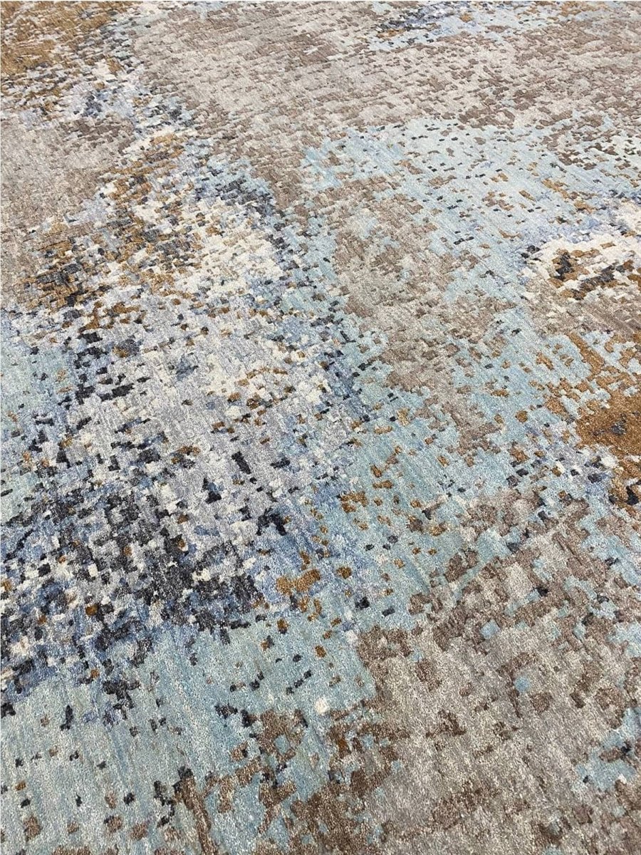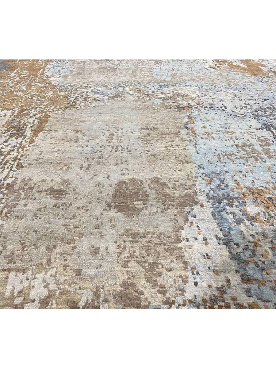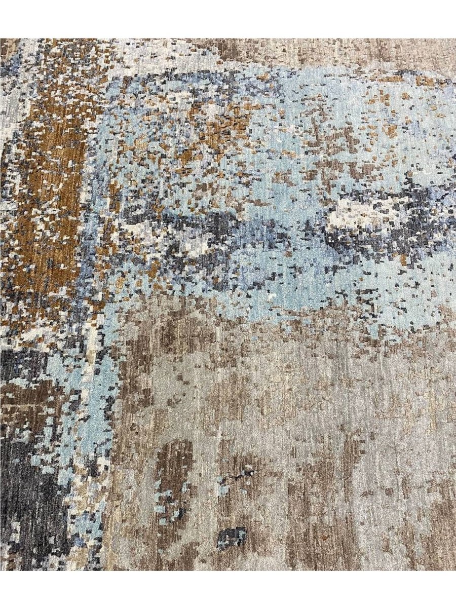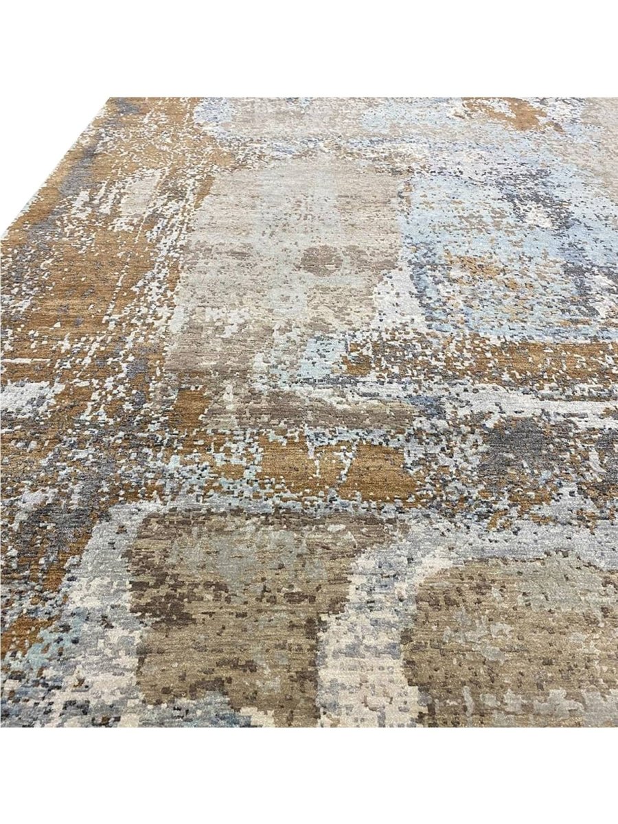 Add a touch of casual style to your home with this 10x14 Modern Abstract Area Rug, crafted in India. This modern rug features a captivating abstract pattern, showcasing a simple yet effective design in a soft palette of beige, brown, blue, charcoal, and gray. Its durable wool and bamboo silk construction ensures longevity and easy care, while the clean finish reflects quality craftsmanship and thoughtful design. This piece effortlessly brightens any interior, adding warmth, texture, and a relaxed yet refined feel. A balanced blend of simplicity and function, it enhances any space with ease. Enjoy free shipping across the United States.
