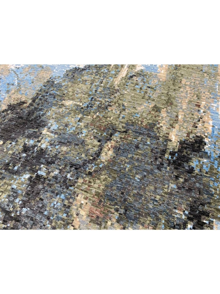 Discover the allure of this 10x14 Modern Abstract Area Rug, a unique accent that adds classic style to your home. Hand-knotted from premium wool and bamboo silk, this gorgeous rug features an abstract design that brings personality and charm to any space. Its warm and inviting color palette, combining brown, blue, ivory, black, beige, and green, creates depth and complements a variety of interior styles. This exceptional piece functions as both a practical floor covering and a stunning work of art, elevating your decor with timeless sophistication. Enjoy free U.S. delivery.