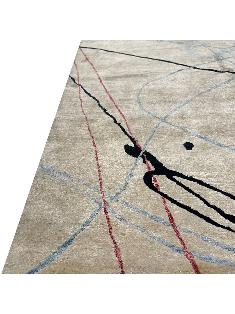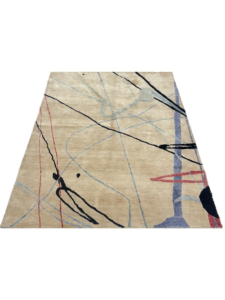 Glam up your house with the 5x6 Modern Abstract Area Rug. This fun rug is hand-knotted in India from durable wool and is adorned in large abstract designs - its pattern gives it character while beige and black colors contemporize the visuals. The quality wool will provide years of breathing room for you, giving a quality rug that has a slew of durability while looking fabulous and providing comfort. This rug is a true piece of modern artwork to fit with your modern decor while still being refined. Free shipping within the US is included.