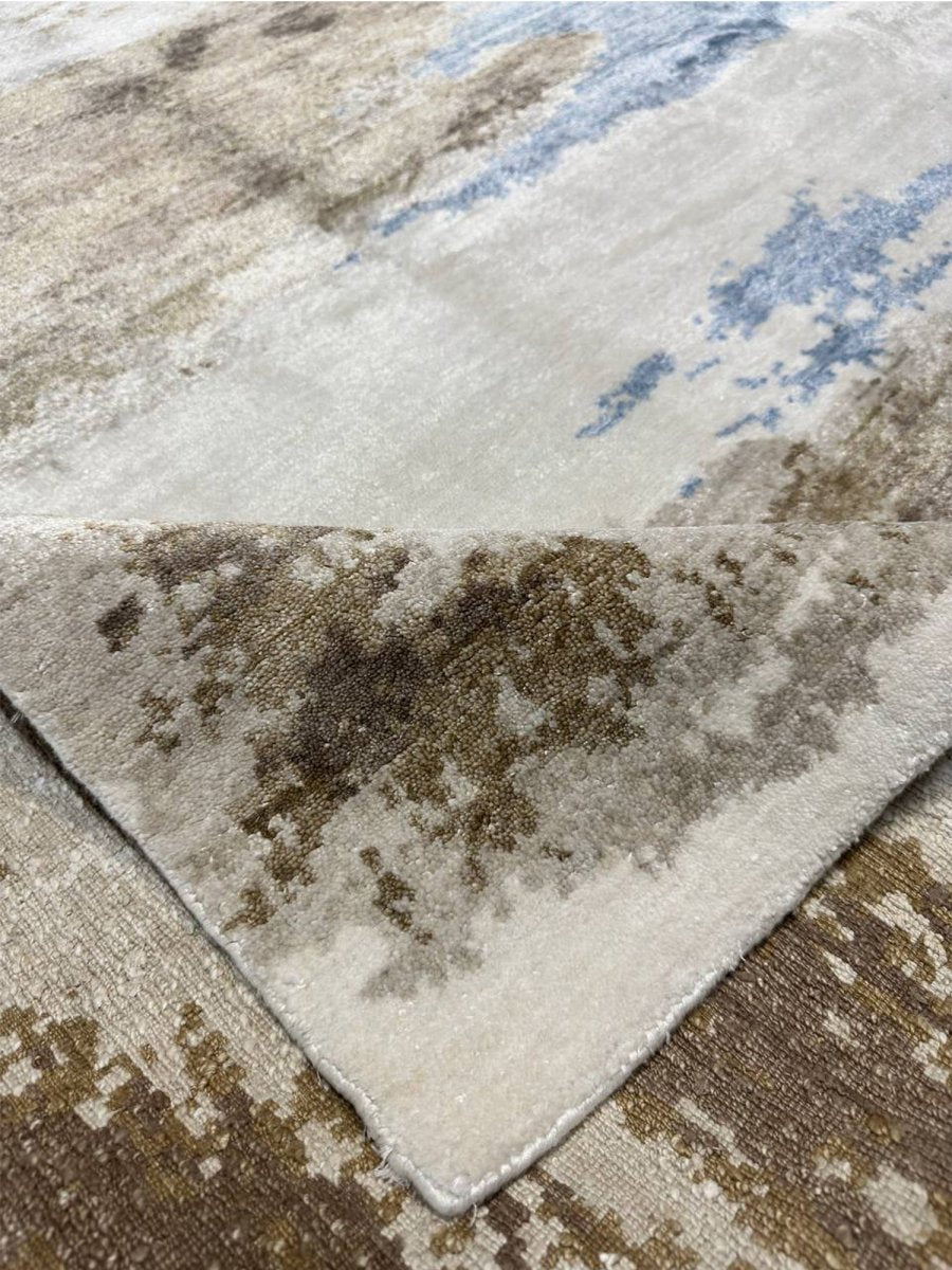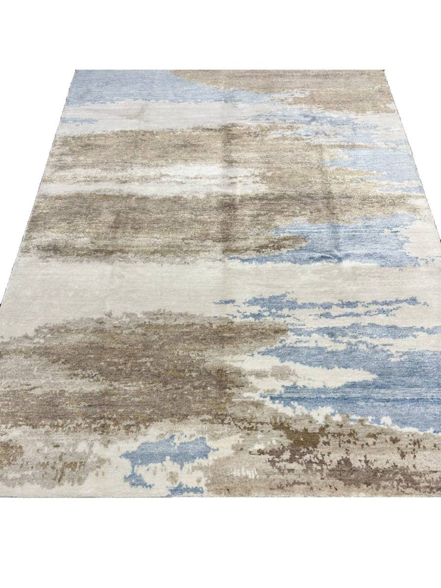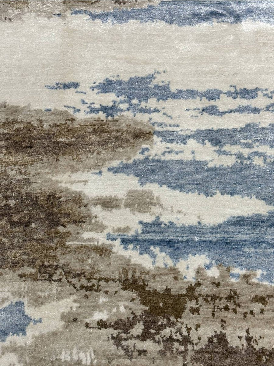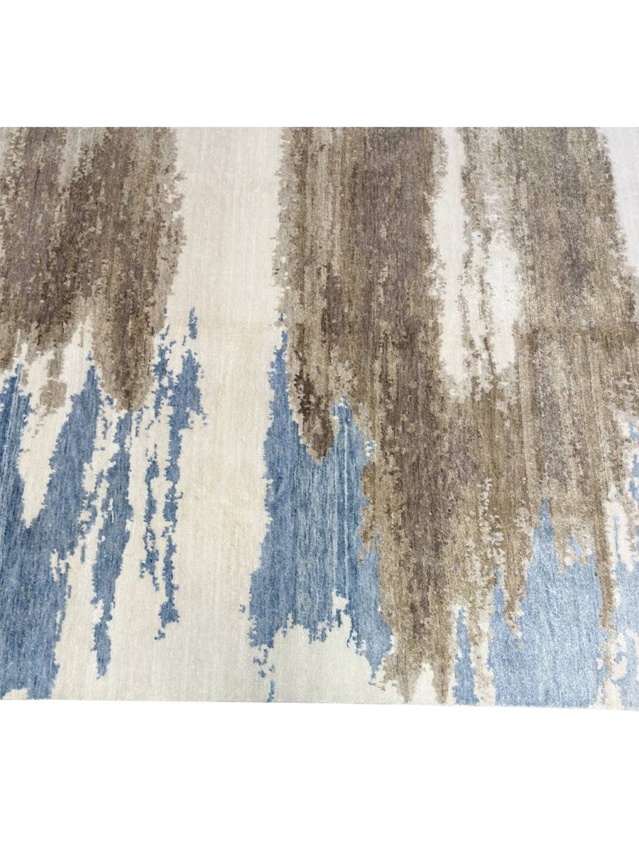 Immerse your space in the artistic allure of this magnificent 6x9 Modern Abstract area rug. Expertly hand-knotted in India, this rug is crafted from premium wool and bamboo silk, offering a luxurious sheen and exceptional softness. The enchanting blue palette, enriched with beige and brown hues, creates a soothing yet bold aesthetic, making it a stunning addition to any interior. This rug strikes a balance between elegance and functionality, while its meticulous hand-knotted construction ensures long-lasting quality. The intricate abstract patterns add a touch of artistry, providing timeless beauty and refined sophistication that enhances any space.