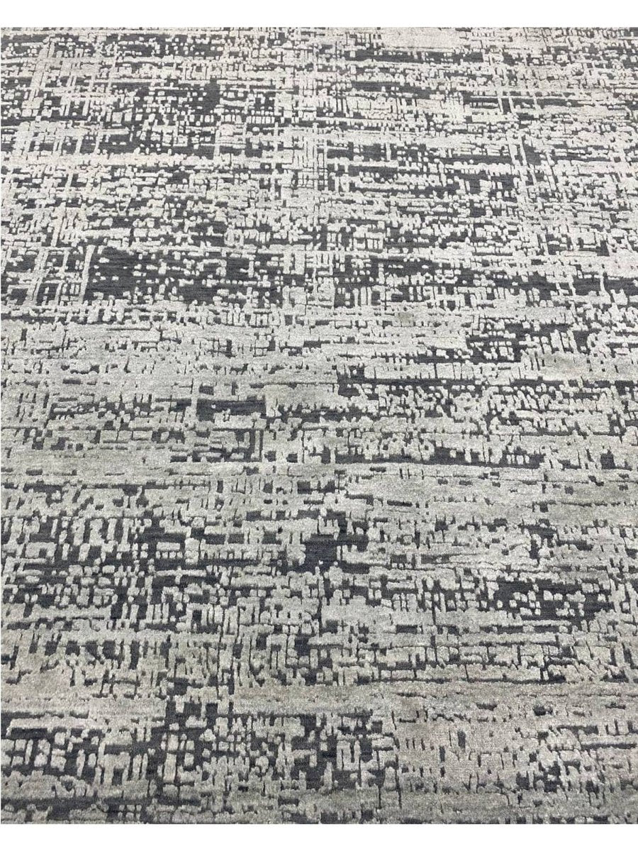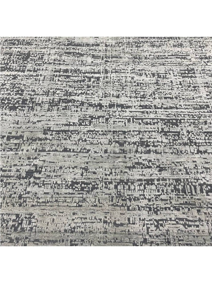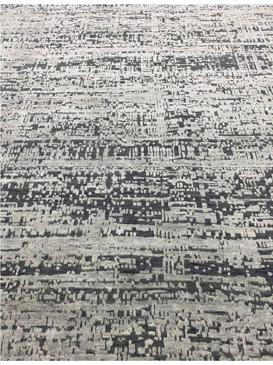 Upgrade your decor with this elegant 9x12 contemporary rug, hand-knotted in India with expert craftsmanship. Made from a high-quality blend of wool and bamboo silk, this rug offers a soft texture complemented by a refined, luminous sheen. The graceful combination of gray and black tones creates a versatile and sophisticated palette that blends effortlessly with modern interiors. With an exact size of 8'10" x 12'1", it provides generous coverage while maintaining a balanced and polished appearance. Its contemporary design enhances any space with sleek style and timeless appeal. Enjoy free shipping within the U.S. and elevate your interior with this beautifully crafted rug.