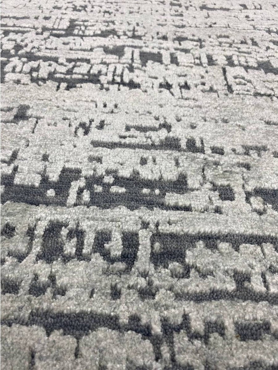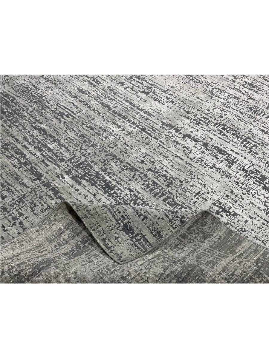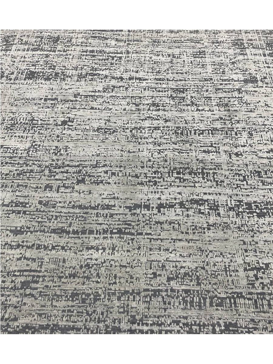 Upgrade your decor with this elegant 9x12 contemporary rug, hand-knotted in India with expert craftsmanship. Made from a high-quality blend of wool and bamboo silk, this rug offers a soft texture complemented by a refined, luminous sheen. The graceful combination of gray and black tones creates a versatile and sophisticated palette that blends effortlessly with modern interiors. With an exact size of 8'10" x 12'1", it provides generous coverage while maintaining a balanced and polished appearance. Its contemporary design enhances any space with sleek style and timeless appeal. Enjoy free shipping within the U.S. and elevate your interior with this beautifully crafted rug.