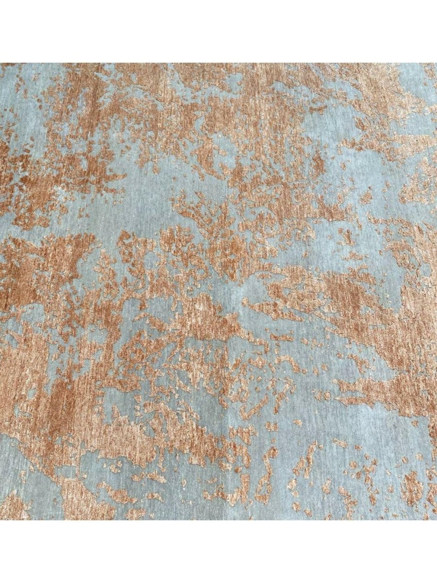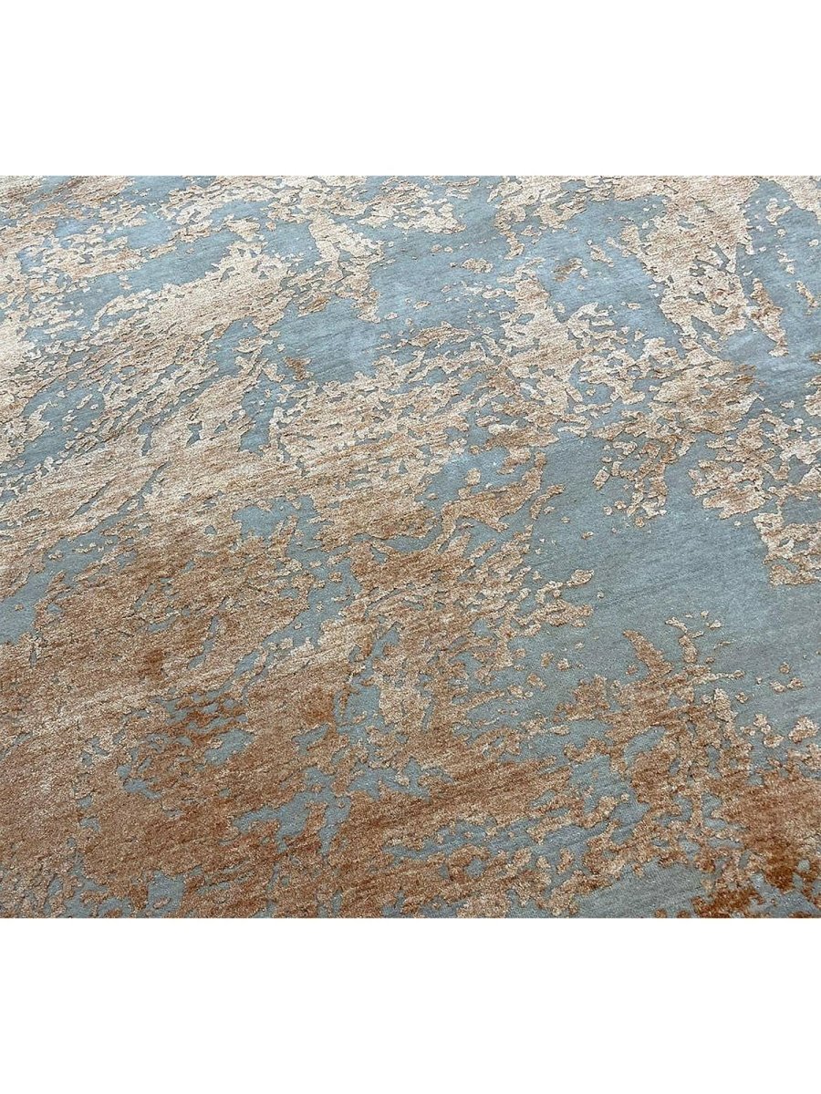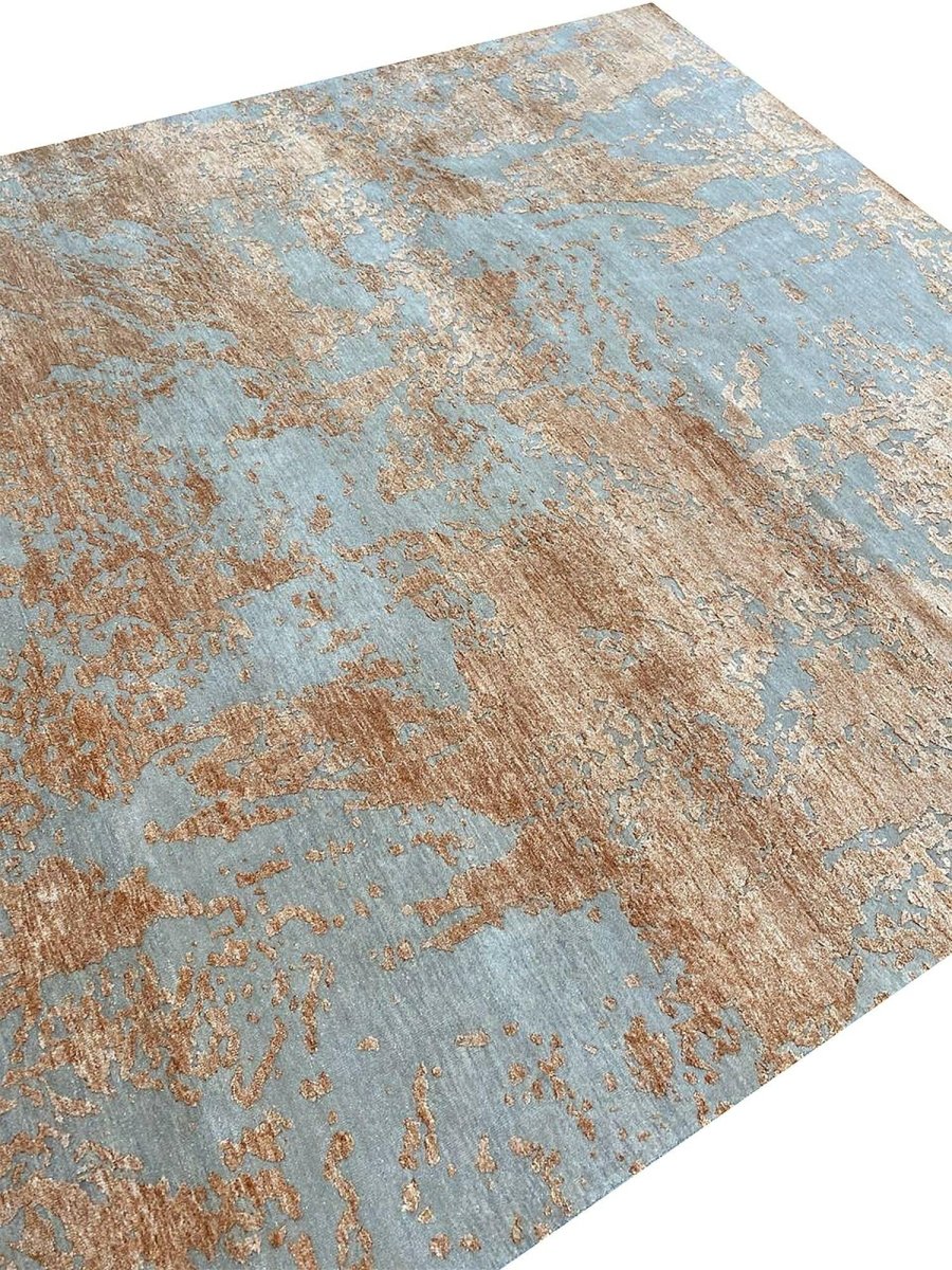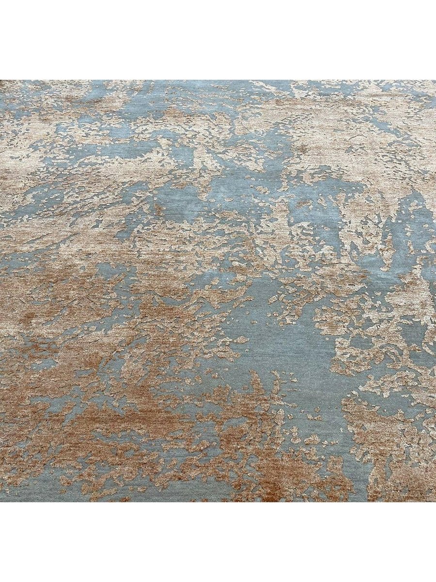 Discover the allure of this 8x10 Modern Abstract Area Rug, a unique accent that adds classic style to your home. Hand-knotted from premium wool and bamboo silk, this exquisite rug features an abstract design that brings personality and artistic flair to any space. Its harmonious combination of blue, gold, and brown creates a versatile and visually engaging effect, enhancing a variety of decor styles. This remarkable piece functions not only as a beautiful floor covering but also as a stunning work of art. Enjoy the convenience of free U.S. delivery.