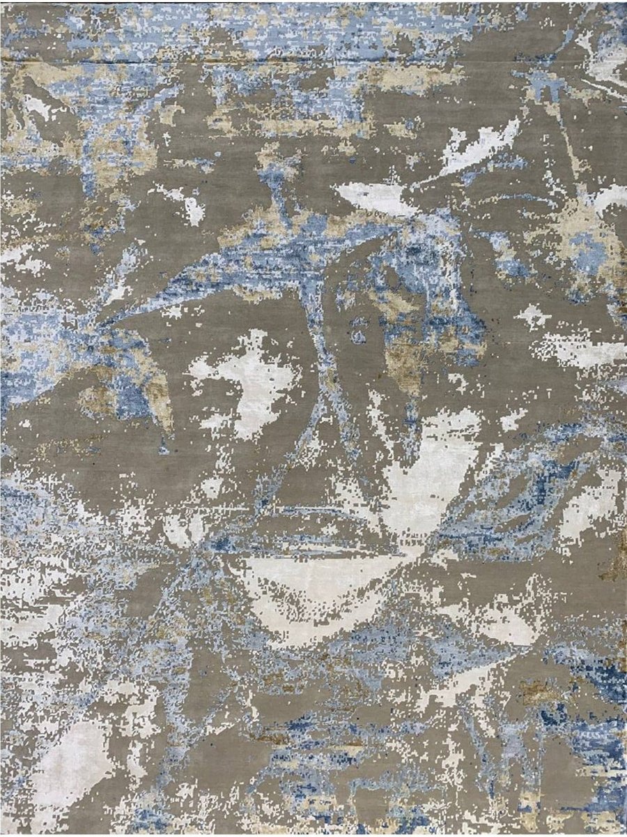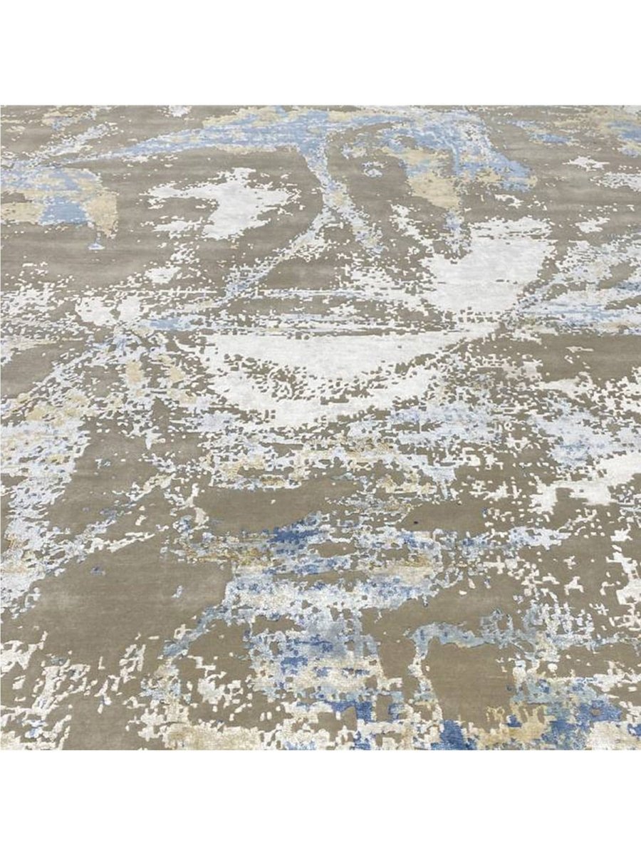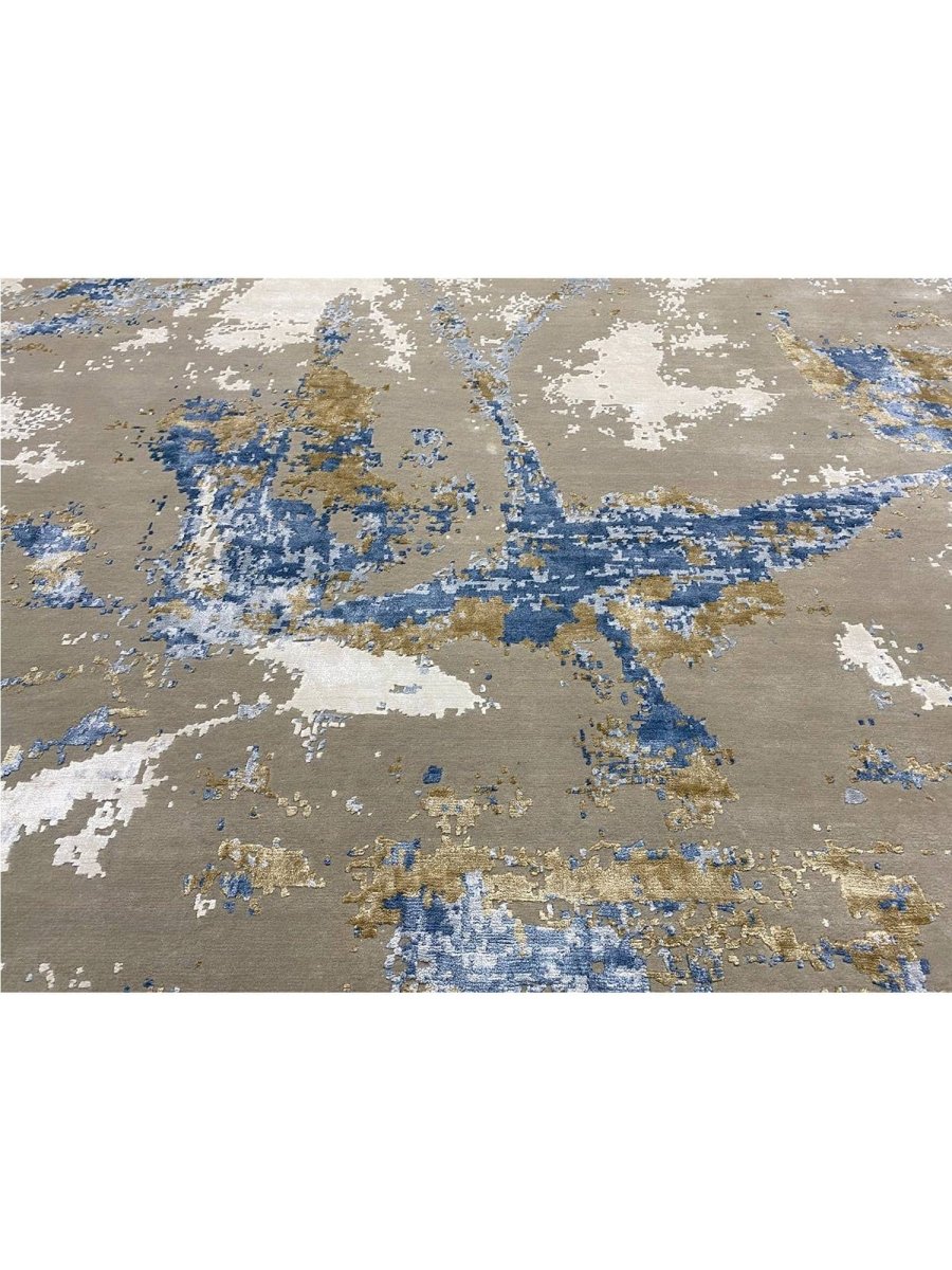 Add a touch of casual style to your home with this 9x12 Modern Abstract Area Rug, crafted in India. This classic rug features a captivating abstract pattern, showcasing a simple yet effective design in a soft ivory, warm gray, beige, brown, and blue palette. Its durable wool and bamboo silk construction ensures longevity and easy care, while the clean finish reflects quality craftsmanship and design. Effortlessly enhancing any interior, this piece adds warmth, texture, and a relaxed yet sophisticated feel. A harmonious blend of timeless design and practical function, it elevates any space with subtle artistry. Enjoy free shipping across the United States. Each rug offers a distinct character, with subtle variations inherent to its handmade creation.