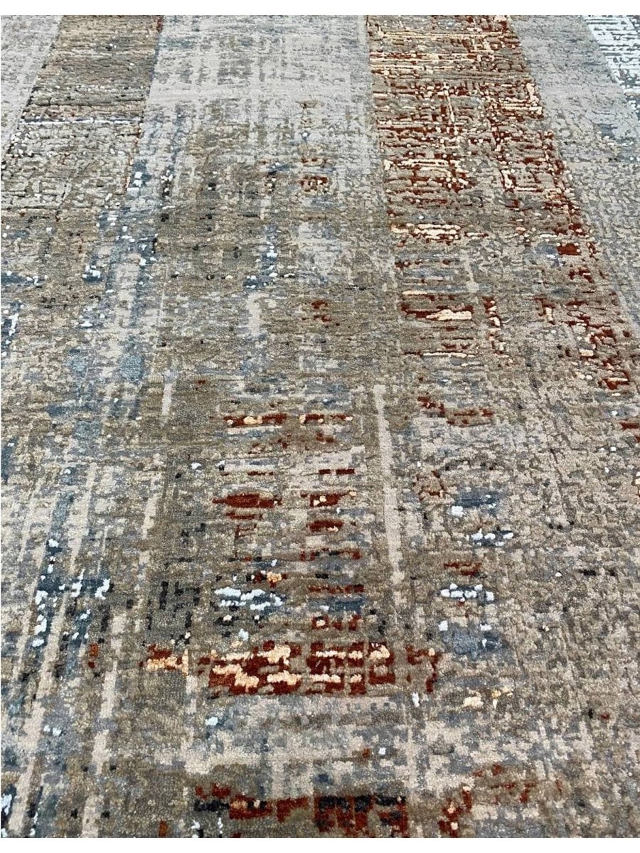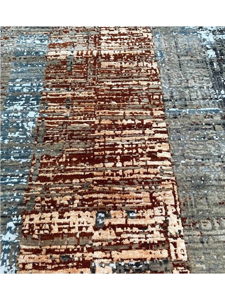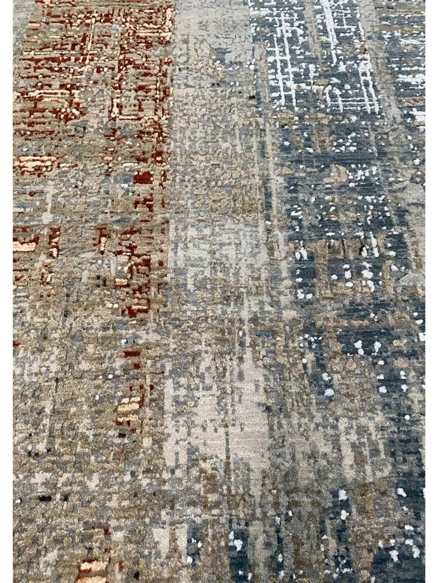 Discover the allure of this 9x12 Modern Abstract Area Rug, a unique accent that adds classic style to your home. Hand-knotted from premium wool and bamboo silk, this exquisite rug features an abstract design that brings personality and visual interest to any space. Its rich combination of burgundy, blue, gray, charcoal, brown, and soft peachy-beige tones creates depth and versatility, seamlessly complementing a variety of decor styles. The intricate patterns and exceptional craftsmanship make this a one-of-a-kind piece, destined to be treasured for years to come. Enjoy the convenience of free U.S. delivery.