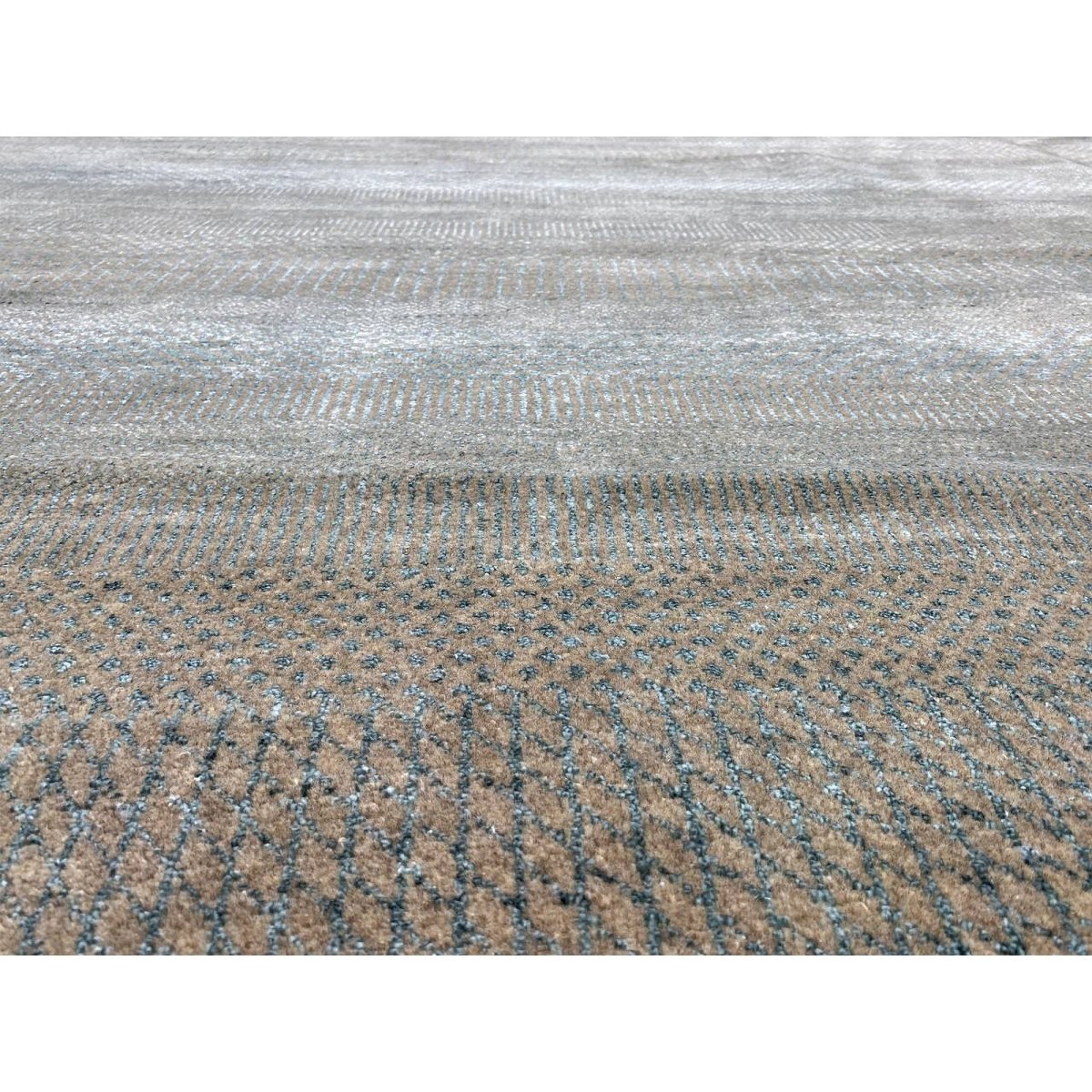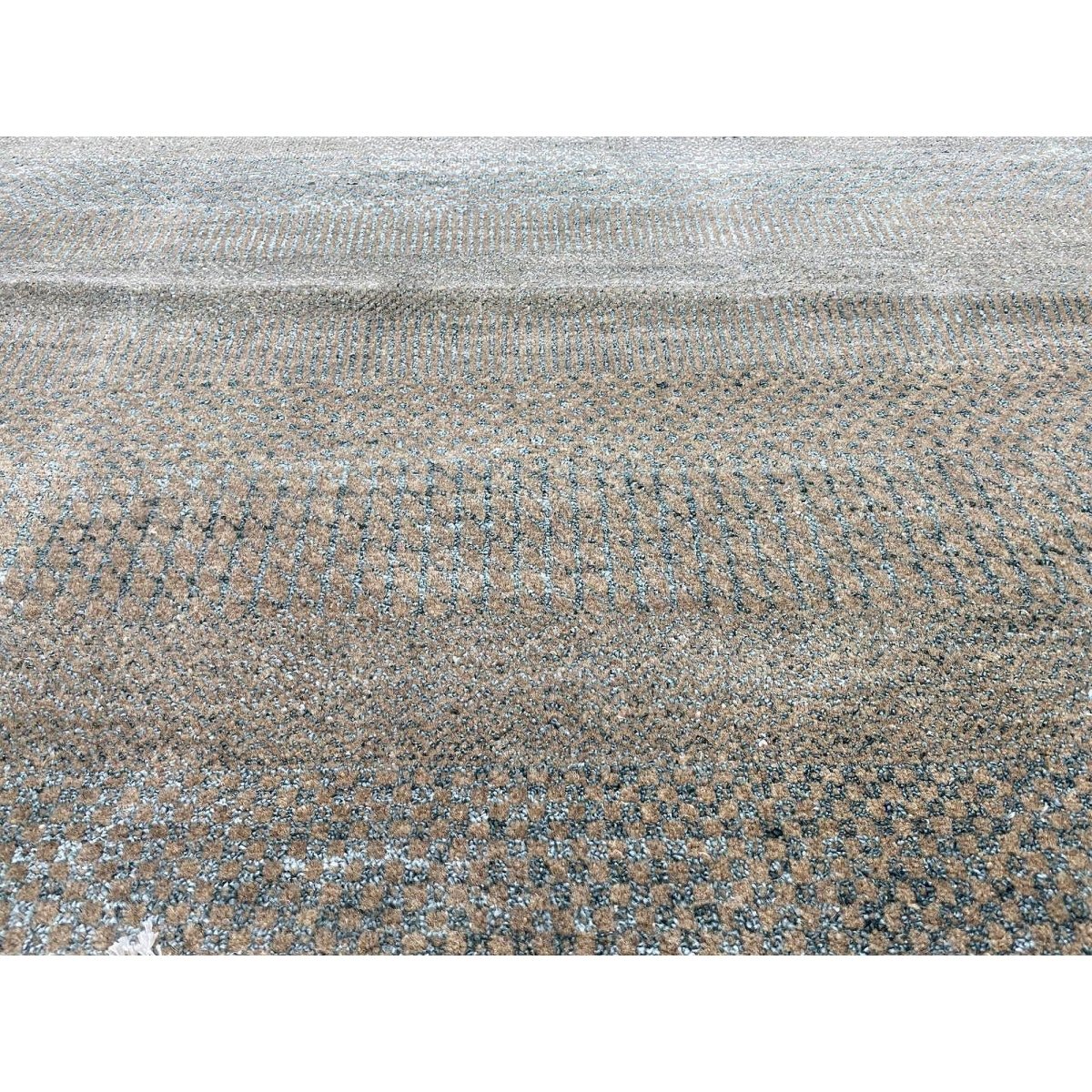 This 12x15 Modern Tribal Area Rug is hand-knotted from premium wool & bamboo silk. It features a striking tribal pattern in gray and beige, bringing warmth and character to any space. The intricate design and neutral tones enhance your decor, creating a welcoming atmosphere. Crafted in Pakistan with exceptional attention to detail, this rug embodies durability and style. Its plush texture offers comfort underfoot, making it a perfect addition to areas where family and friends gather. Elevate your interior with this exquisite piece that blends classic design with recent aesthetics. Free shipping in the U.S.