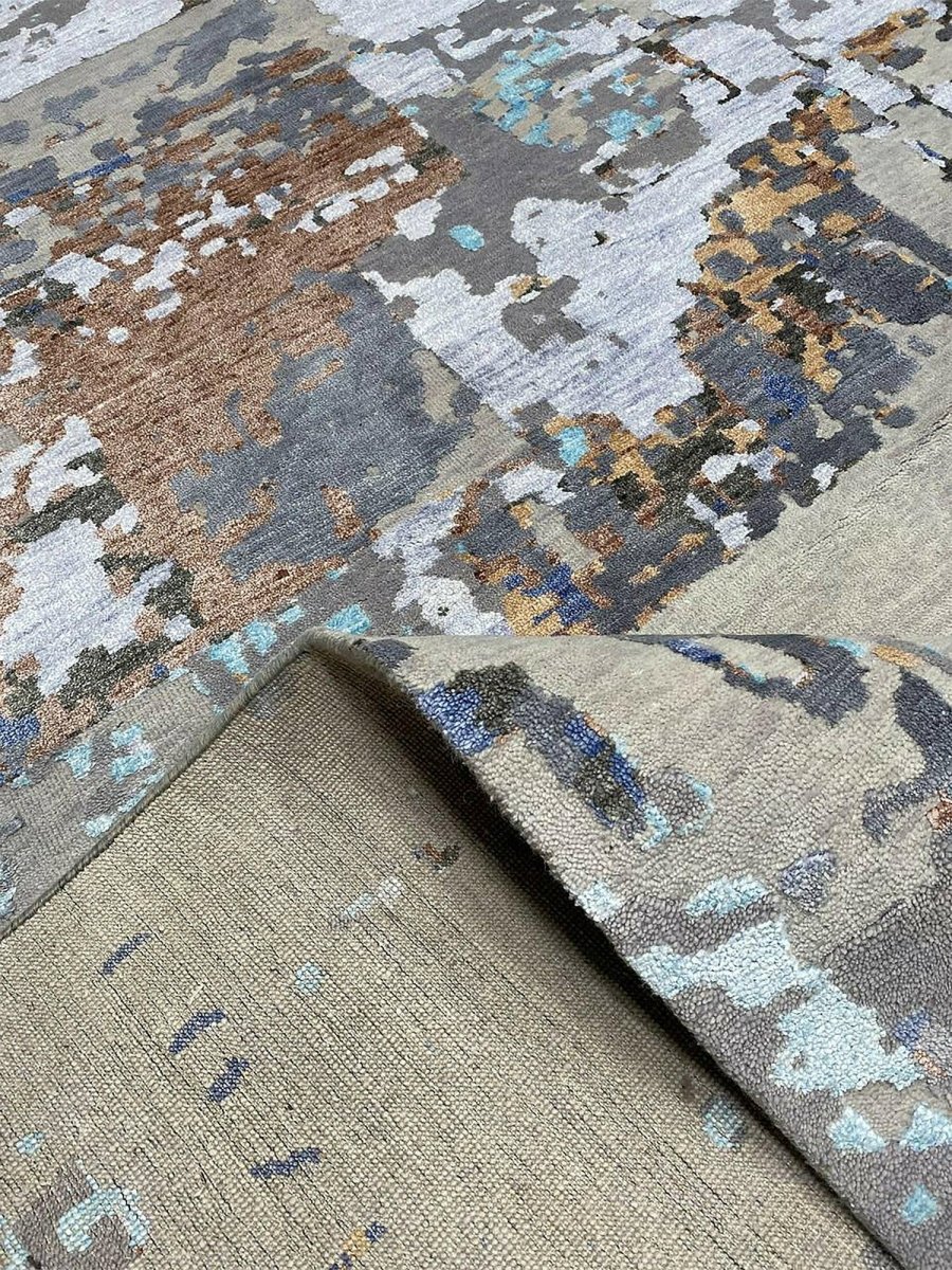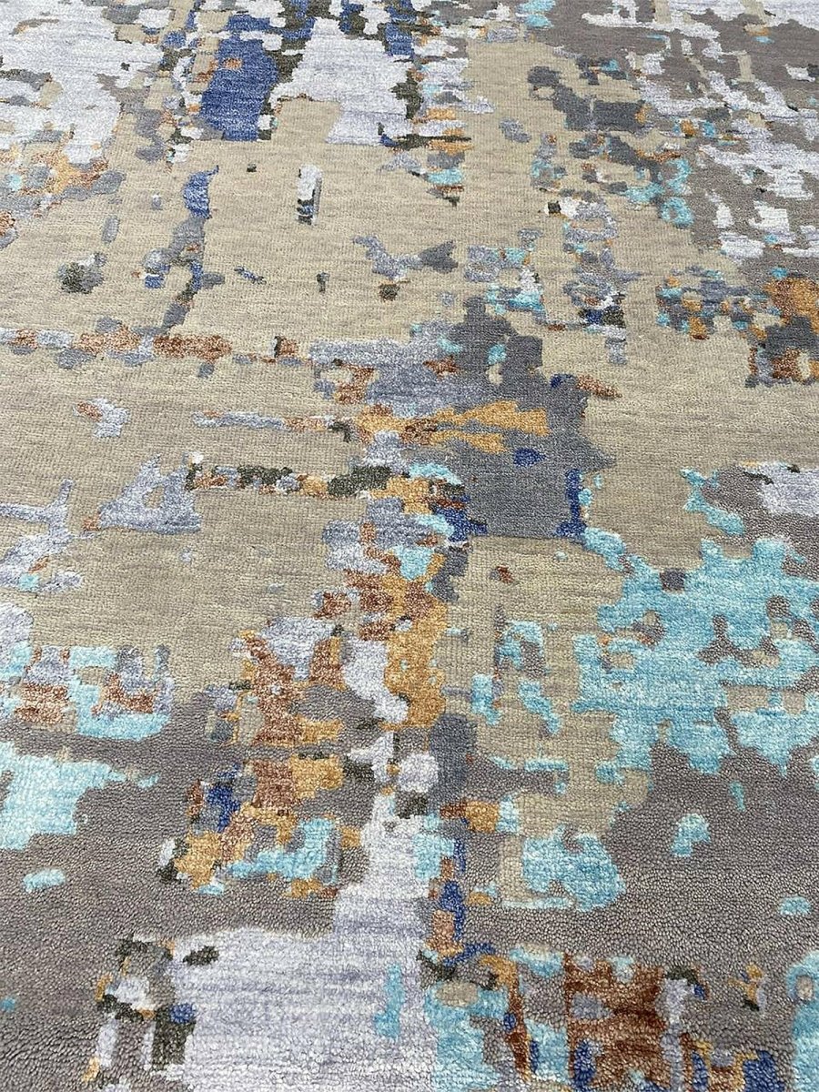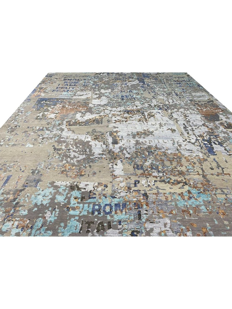 Add a touch of casual style to your home with this 12x15 Modern Abstract Area Rug, expertly crafted in India. This rug showcases a captivating abstract pattern in a soft palette of beige, blue, charcoal, gray, brown, and turquoise, offering a harmonious blend of color and texture. Made from durable wool and bamboo silk blend, it provides long-lasting quality and easy care, while the clean finish reflects superior craftsmanship and attention to detail. Effortlessly enhancing any interior, this piece adds warmth, texture, and a relaxed yet sophisticated feel. Each rug offers a distinct character, with subtle variations inherent to its handmade creation. Enjoy free shipping across the United States.