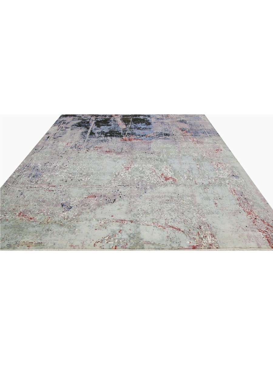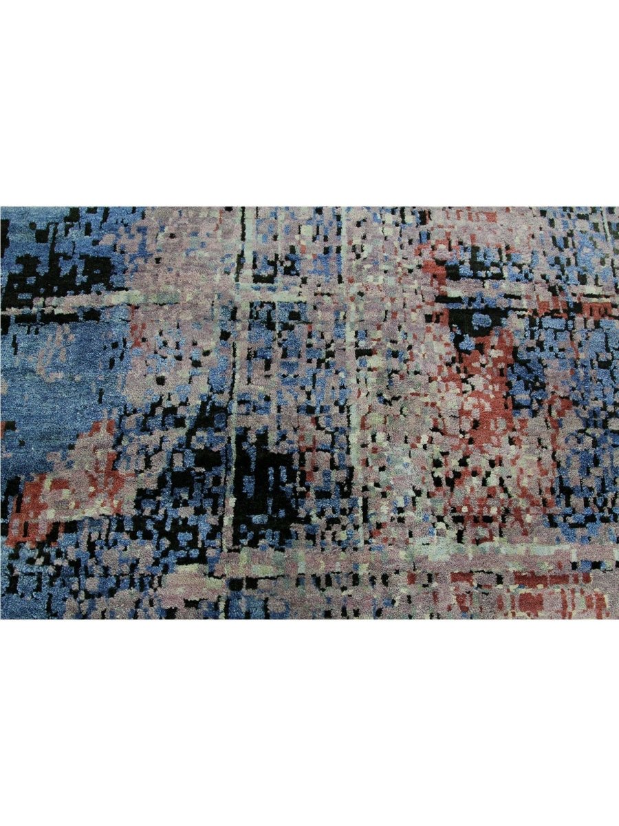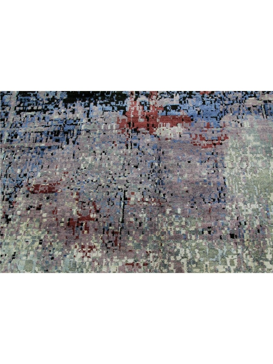 Immerse your space in the artistic allure of this magnificent 10x14 Modern Abstract Area Rug. Expertly hand-knotted in India from a luxurious blend of premium wool and bamboo silk, this new rug offers a rich texture and exceptional durability. The abstract pattern features a captivating interplay of blue, green, red, gray, and black tones, creating a dynamic and sophisticated visual appeal.
