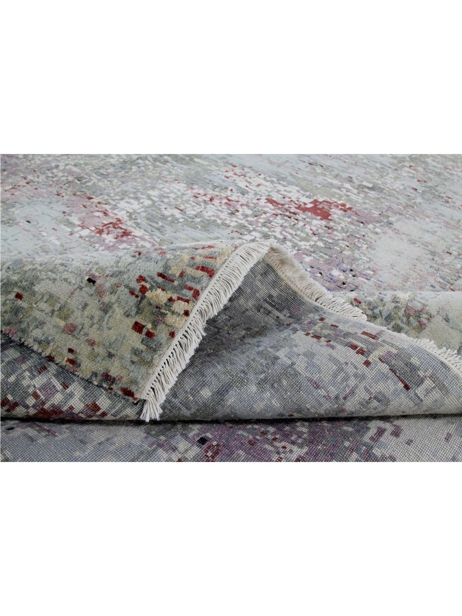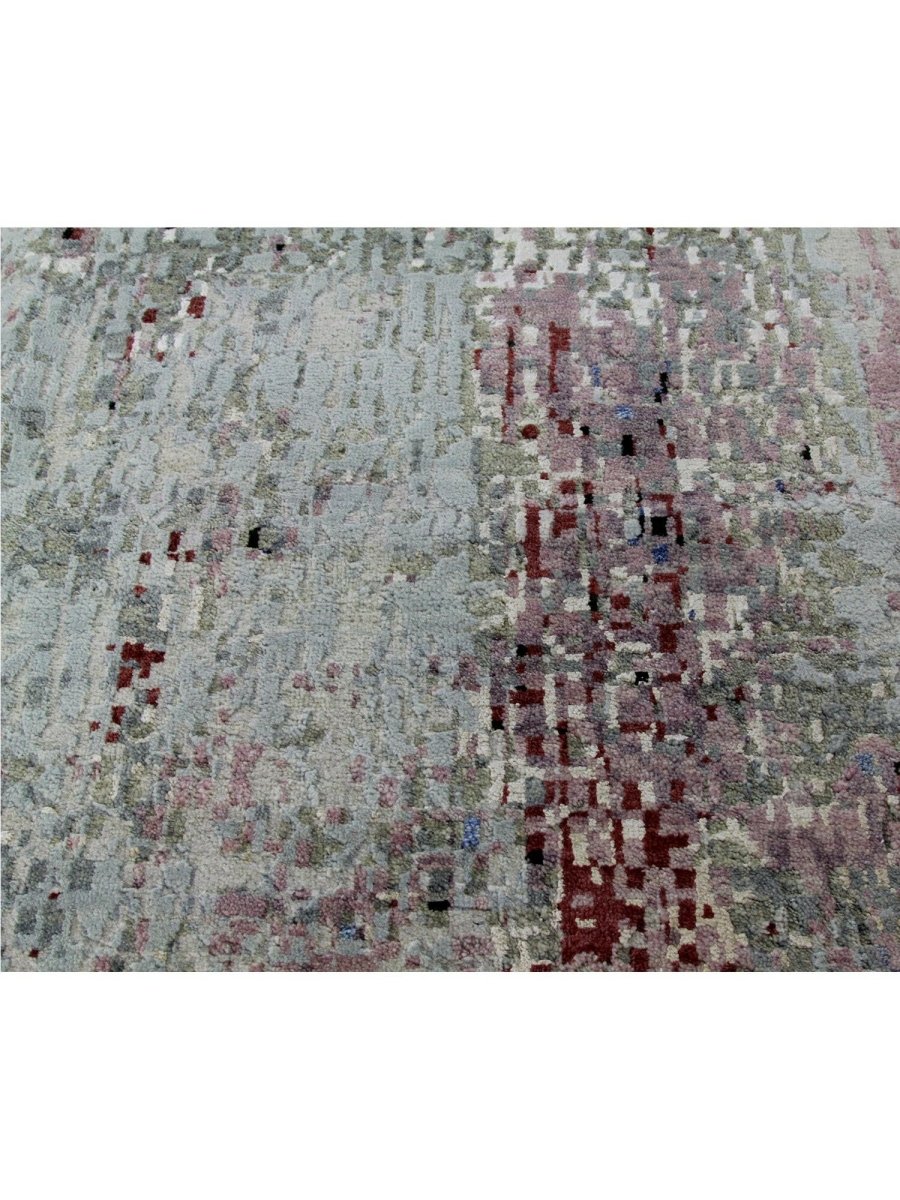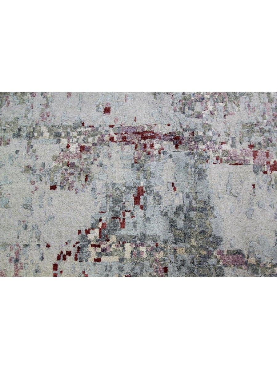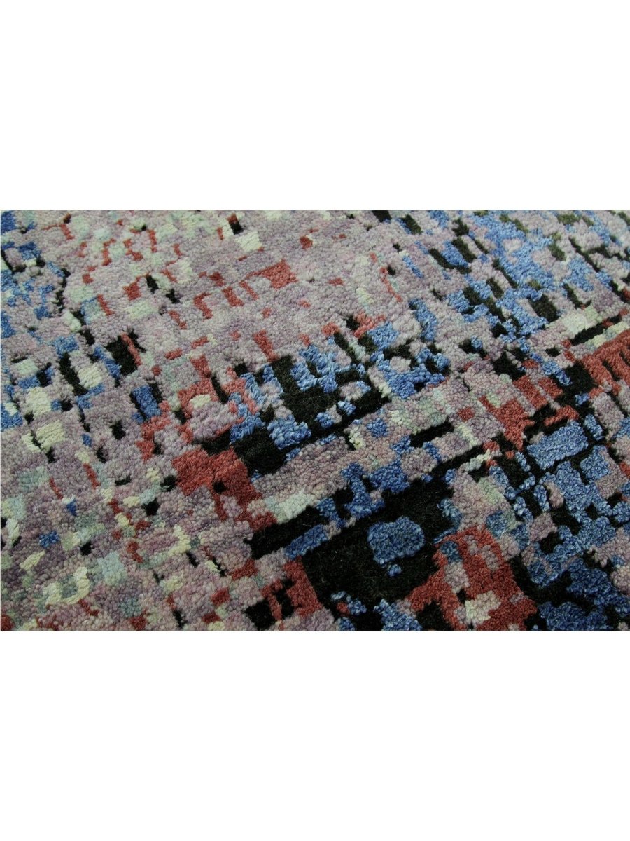 Immerse your space in the artistic allure of this magnificent 10x14 Modern Abstract Area Rug. Expertly hand-knotted in India from a luxurious blend of premium wool and bamboo silk, this new rug offers a rich texture and exceptional durability. The abstract pattern features a captivating interplay of blue, green, red, gray, and black tones, creating a dynamic and sophisticated visual appeal.