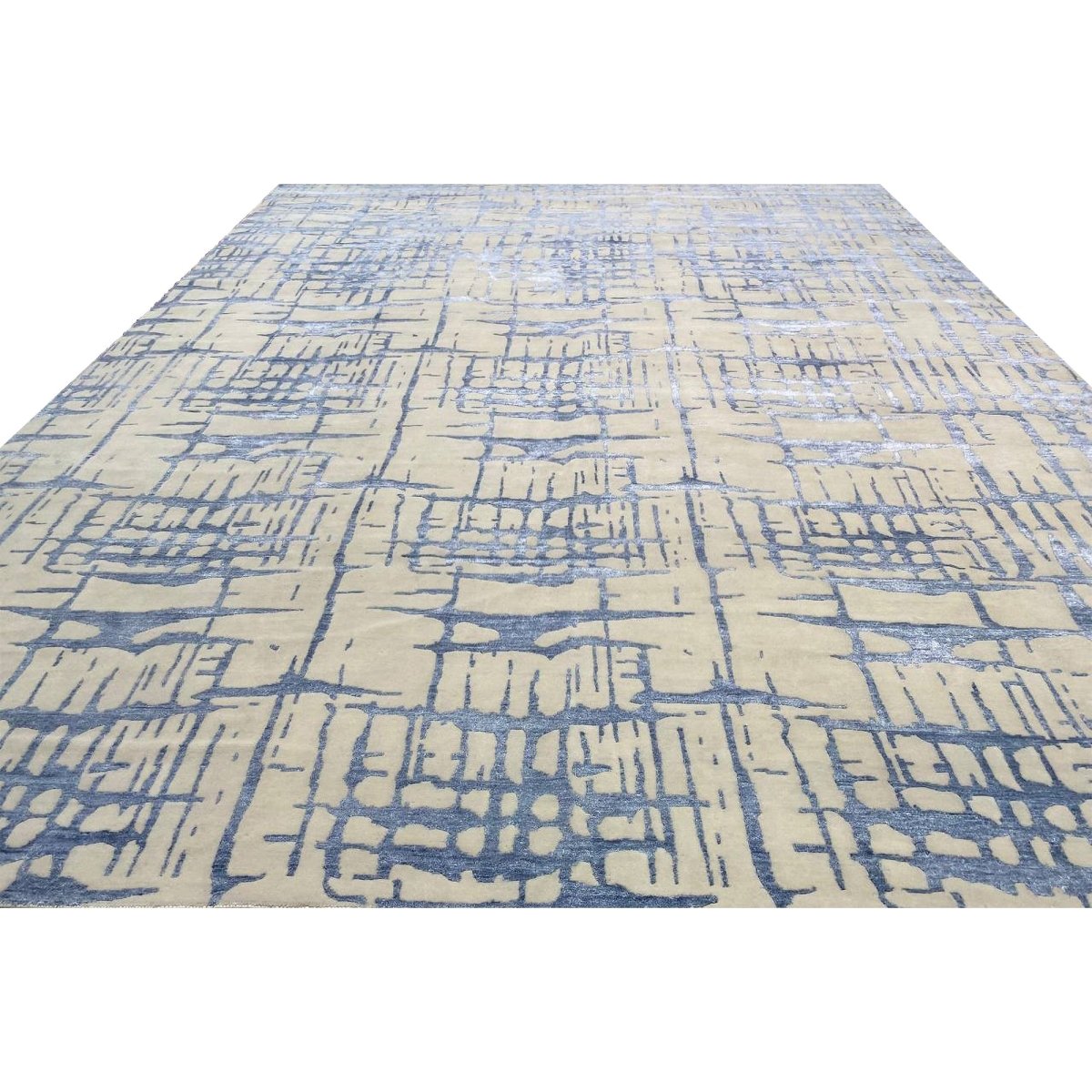 The 12x15 Contemporary Area Rug is a classic beauty that adds warmth and elegance to any space. Beautifully hand-knotted from the finest quality wool, this stunning rug features an abstract design that brings character and style, creating a cozy and inviting atmosphere. The striking combination of beige and blue makes it a versatile enhancement for any home style. This outstanding piece not only elevates your decor but also serves as a fine work of art, sure to be admired by all who see it. Enjoy free shipping in the U.S.