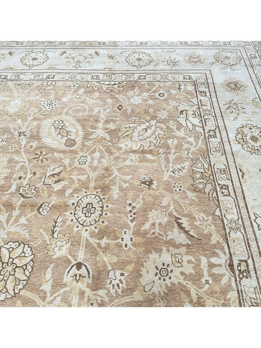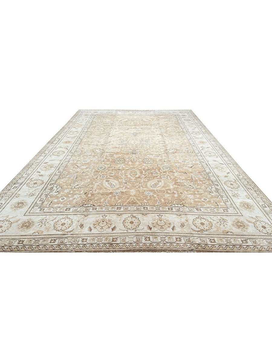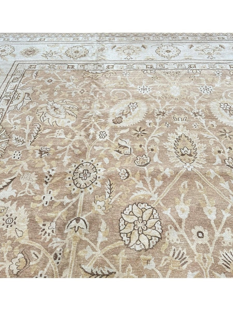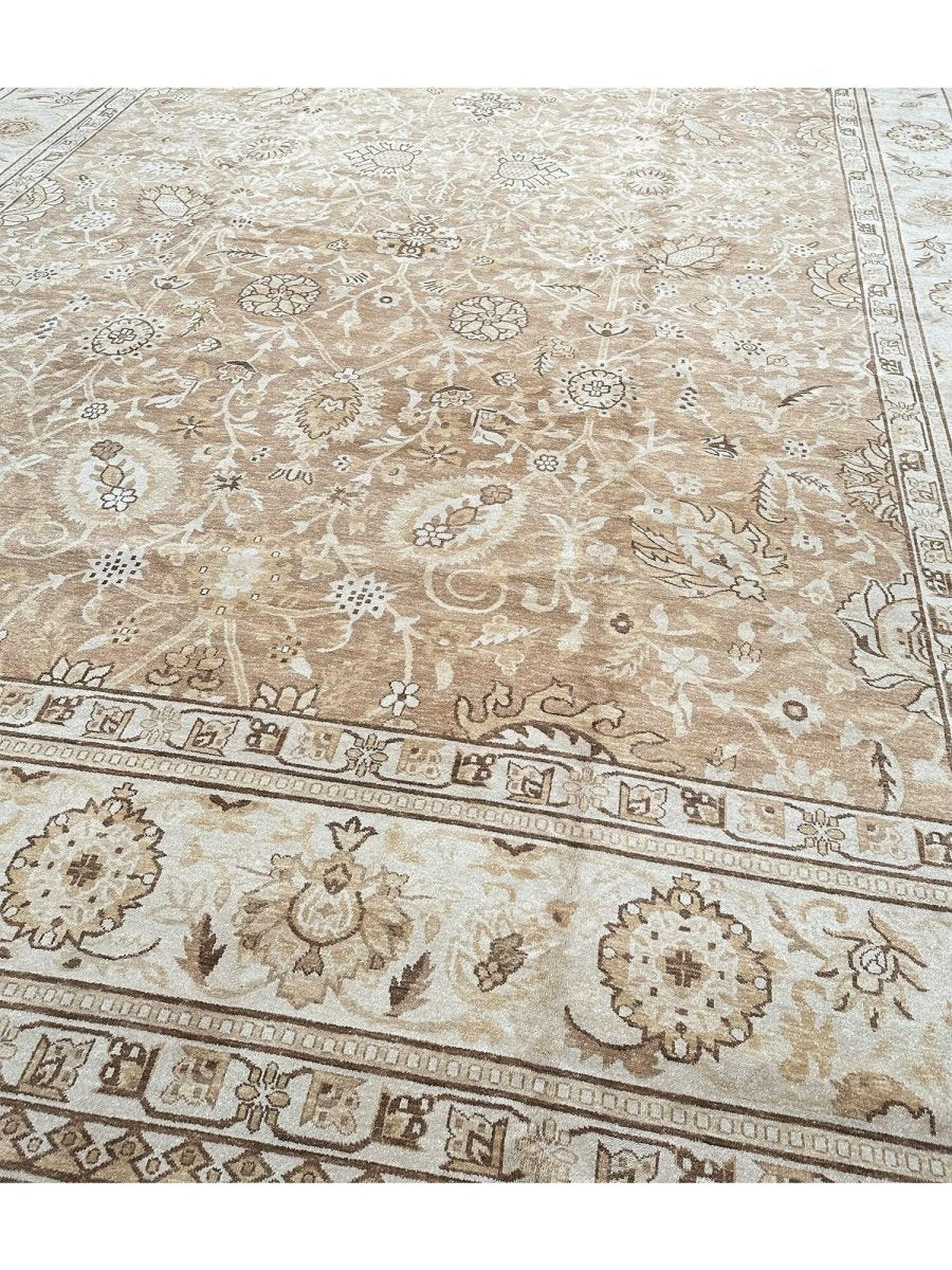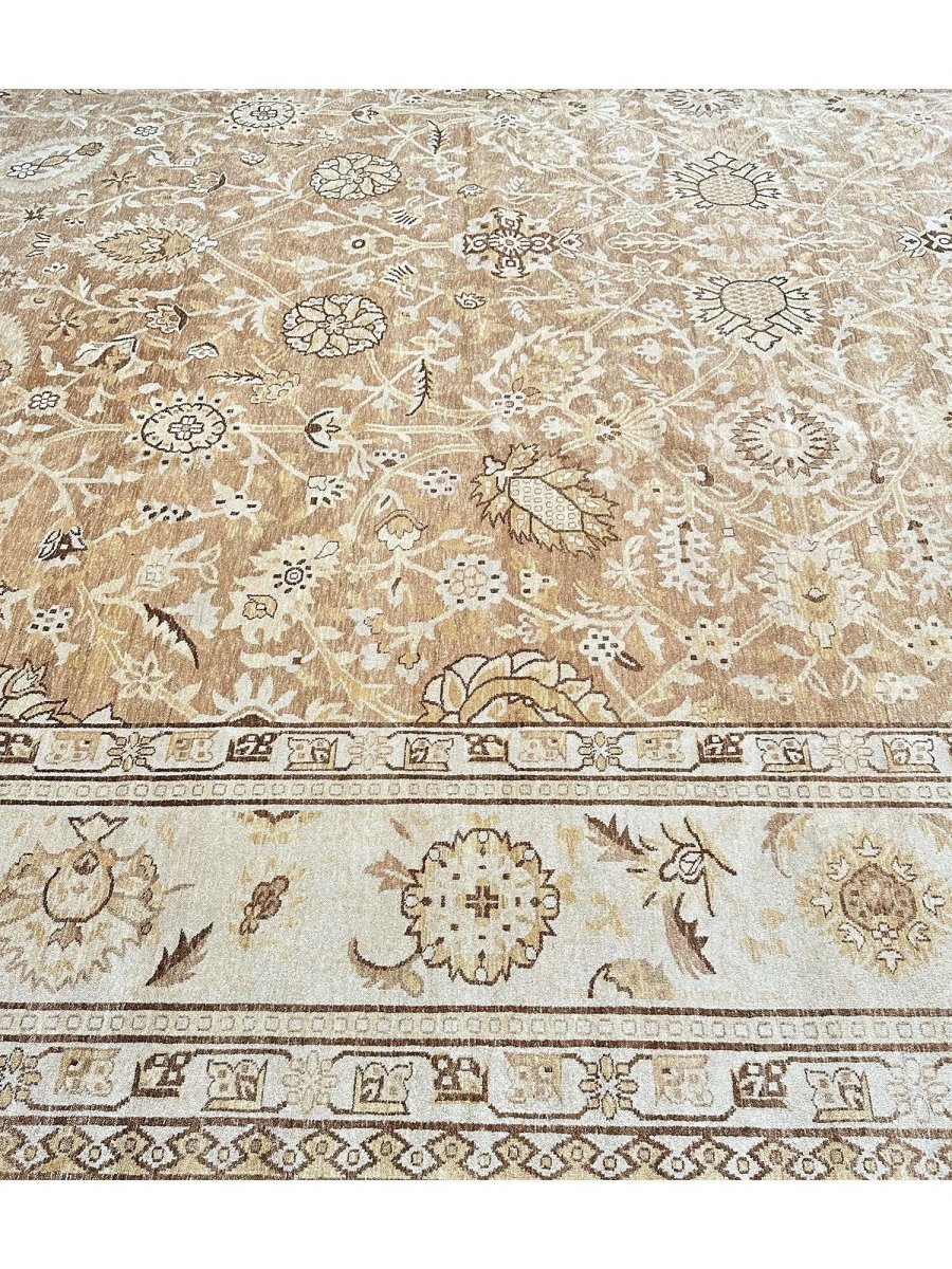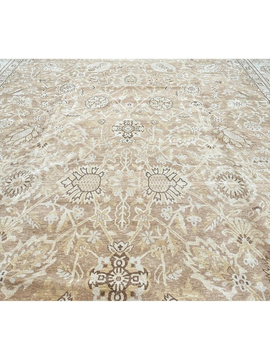 Command attention in your grand space with this magnificent 14x20 Mahal Style area rug, expertly hand-knotted in China. This large rug features a captivating all-over pattern that spans its vast surface, bringing intricate design and sophisticated texture. Reflecting classic Mahal aesthetics, the repeating motifs create a sense of continuous beauty. The field and border are rendered in a beautiful palette of light beige and tan, providing a warm and inviting foundation. The all-over pattern details are picked out in subtly darker shades of beige and brown, adding depth without overwhelming the serene feel. This substantial 14x20 size is perfect for anchoring the largest living rooms or expansive open areas, creating a truly luxurious statement. Enjoy free US shipping.