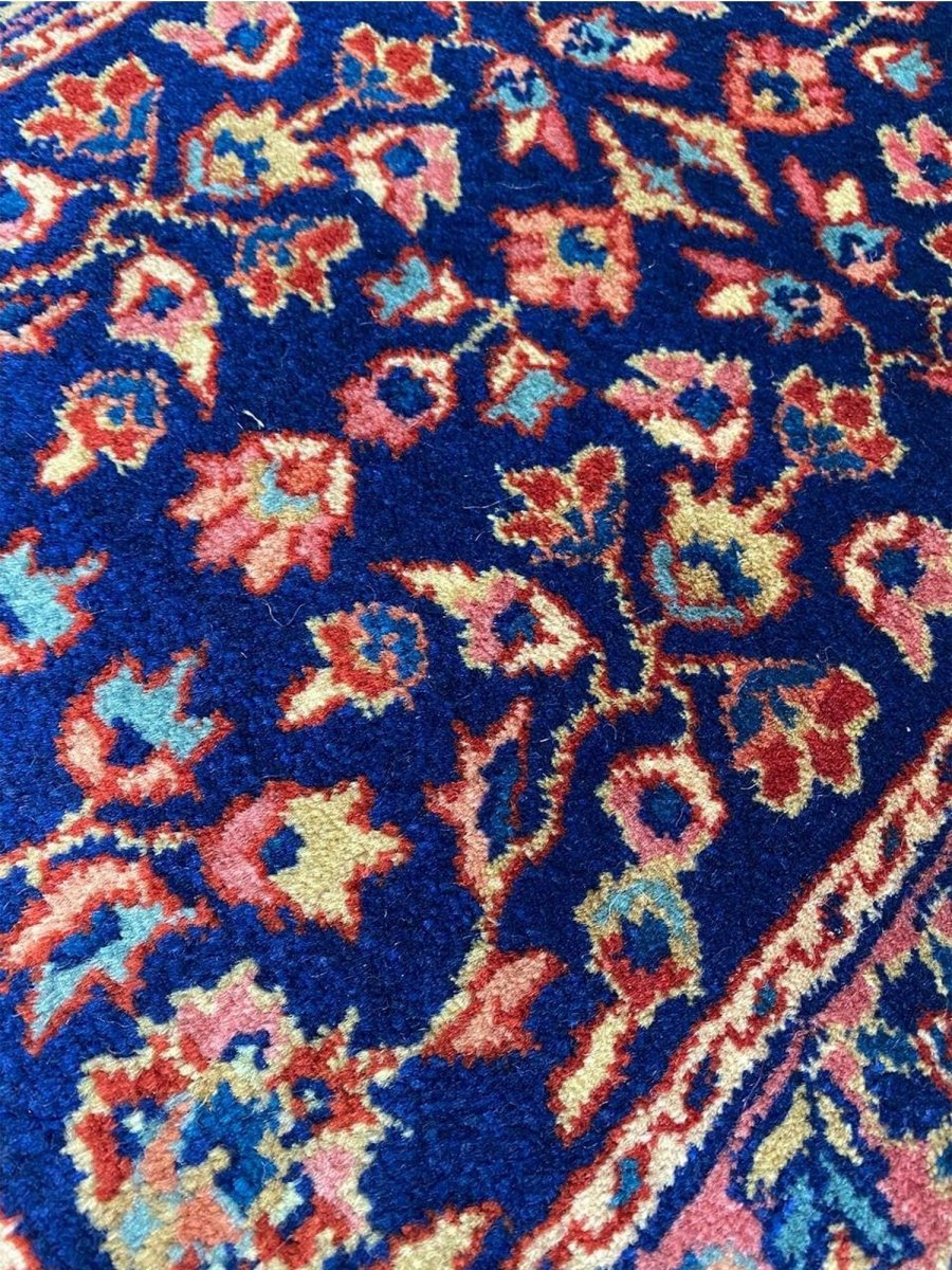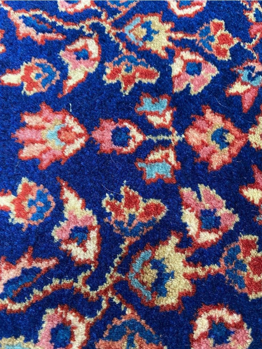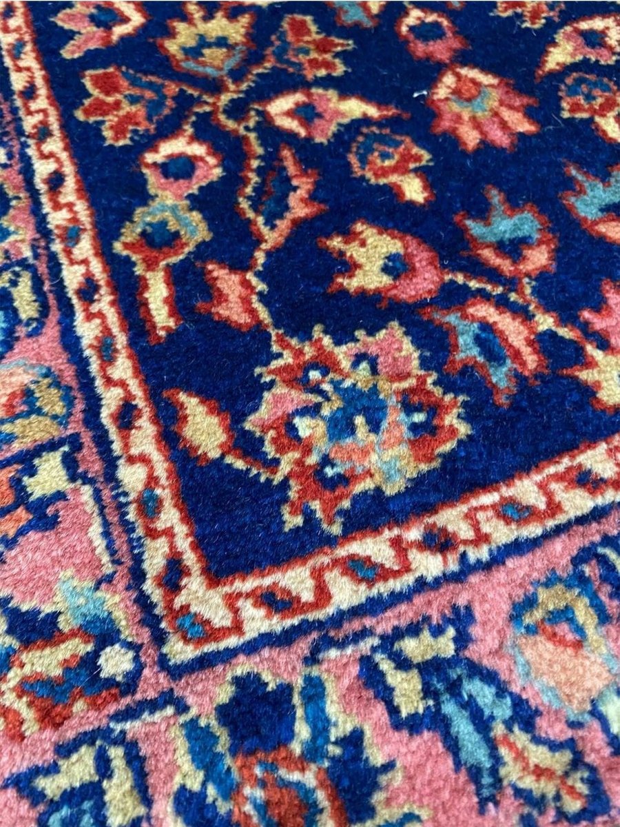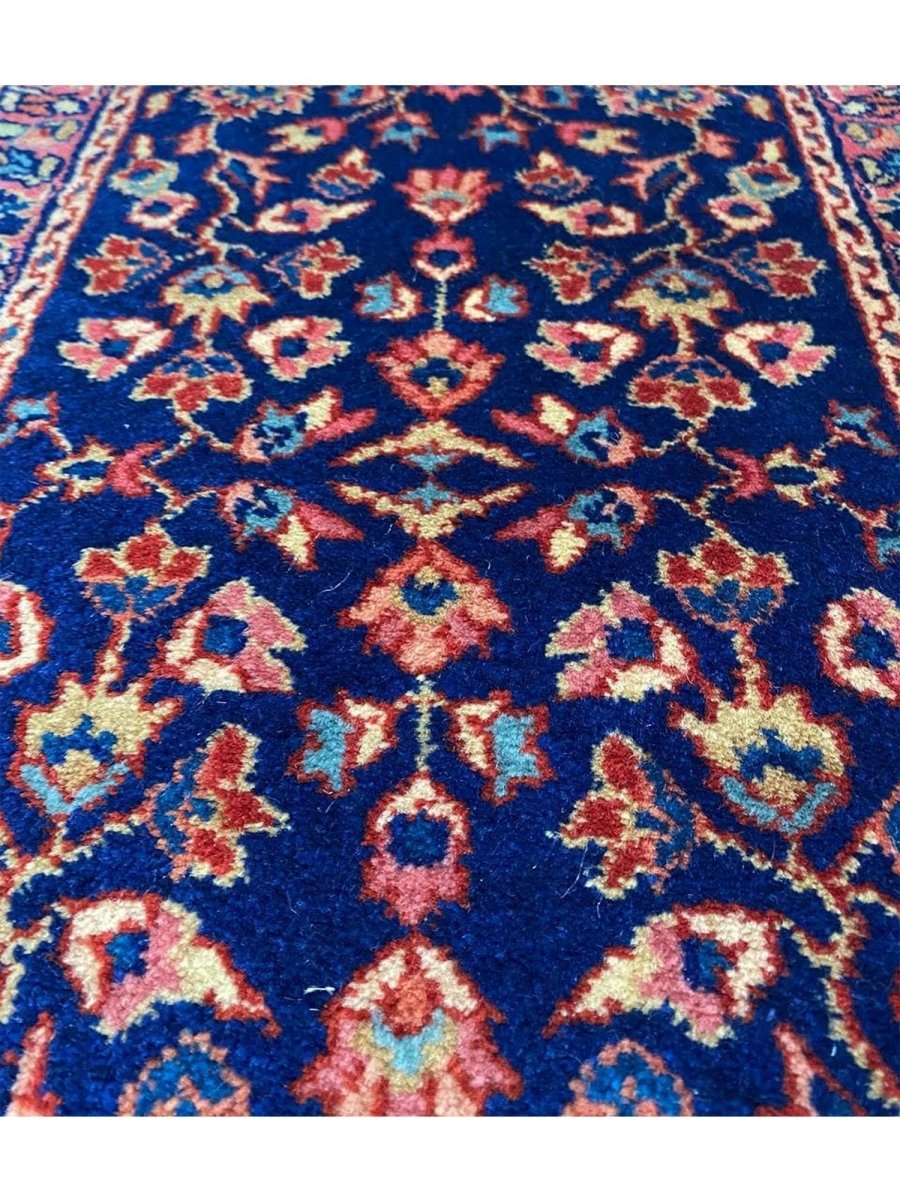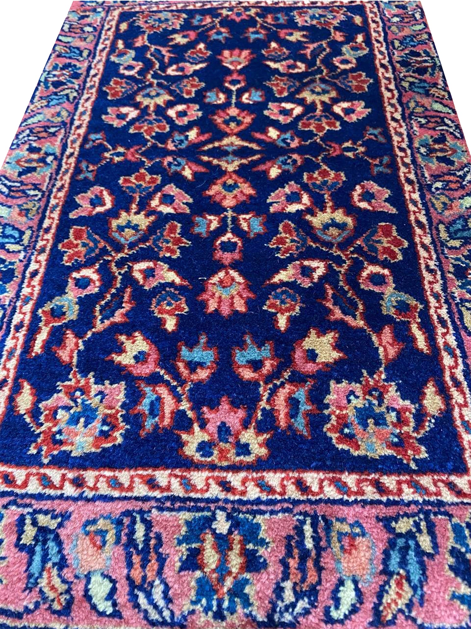 Immerse your space in the exquisite artistry of this magnificent 1x2 Handwoven Sarouk Style area rug. Handwoven by skilled artisans in India, this piece exemplifies enduring beauty and intricate craftsmanship. The detailed floral pattern, featuring rich navy blue, vibrant pink, subtle cream, and hints of red and light blue, creates an atmosphere of timeless elegance and charm. Crafted from premium wool, this rug offers exceptional durability and a soft, inviting texture underfoot. This rug is a true testament to traditional weaving artistry, promising to be a cherished addition that enhances the warmth and sophistication of any home.