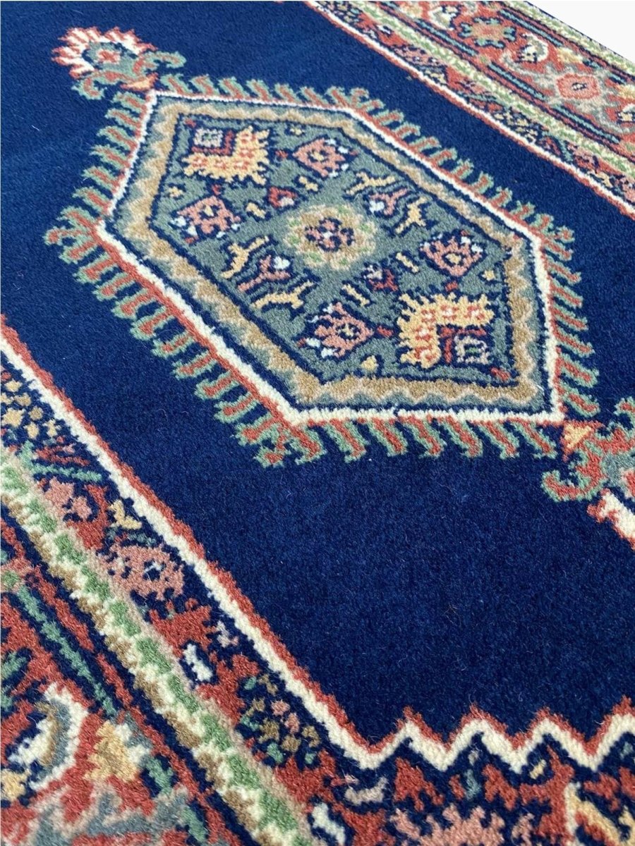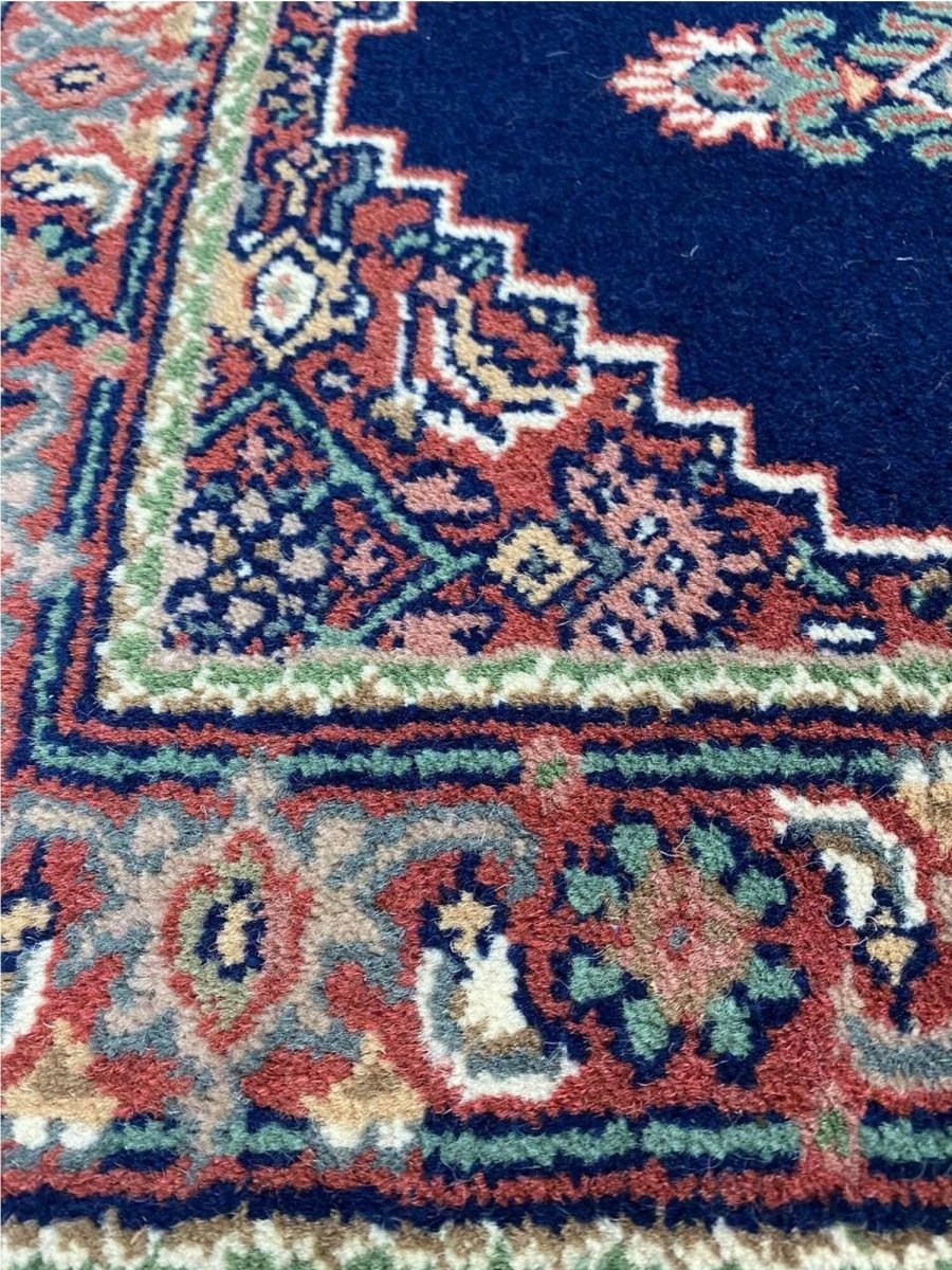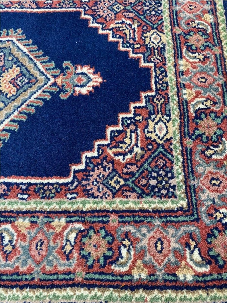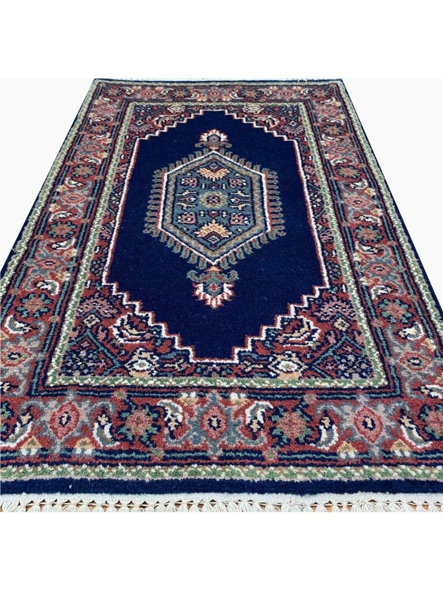 The 2x3 Bijar Style Area Rug is a unique product that skillfully combines classic craftsmanship with beauty to enhance your home. This beautiful, hand-knotted rug, made from high-quality wool, features a medallion pattern that transforms any room. It creates a cozy and inviting atmosphere. Its versatility makes it a great option for any decor style, thanks to the serene ambiance created by the perfect blend of deep blue, beige, and pink hues. This stunning rug is not just an incredible piece of artwork; it also elevates your home. Enjoy free US delivery.
