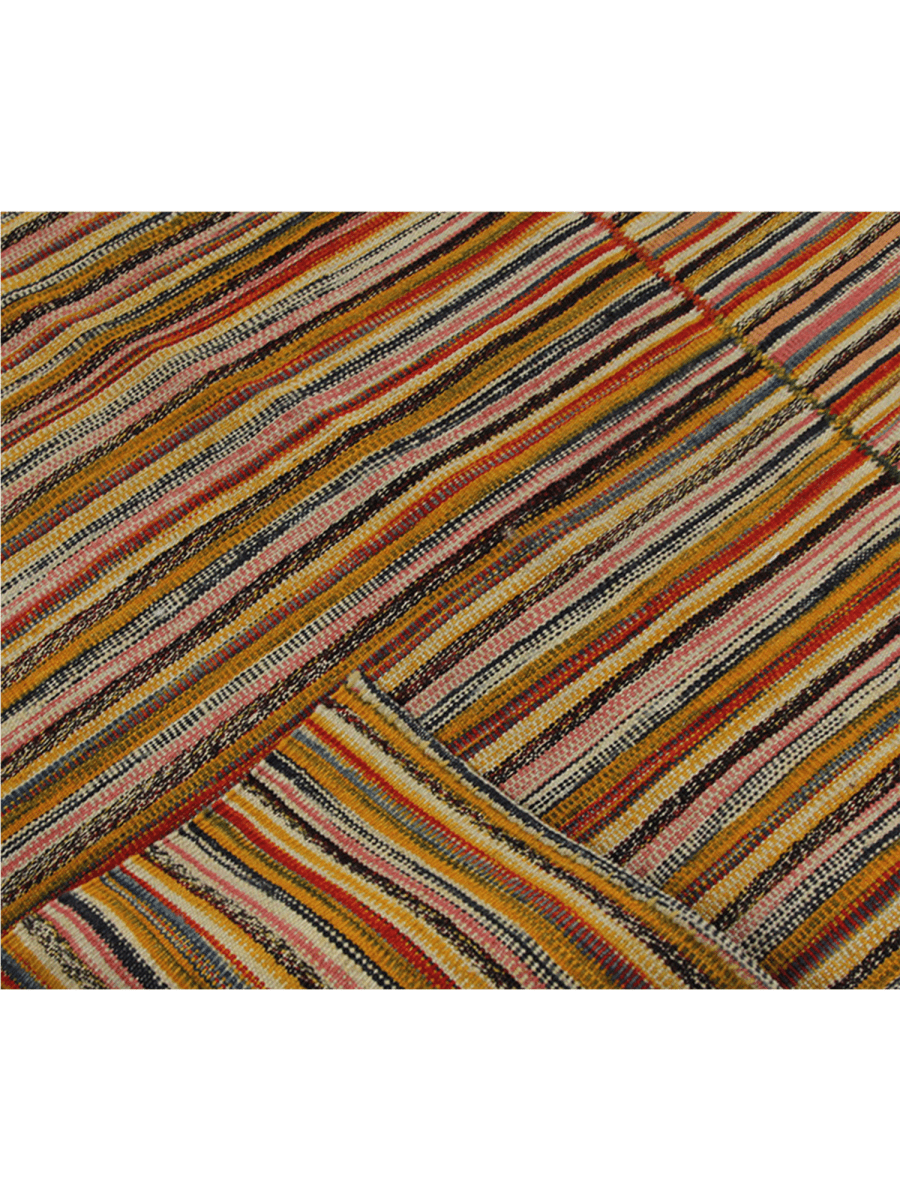 Immerse your space in the vibrant artistry of this 2x5 Persian Kilim area rug. This one-of-a-kind piece, handwoven by skilled artisans in Persia, showcases the rich heritage of Persian weaving with its captivating striped pattern. The rug's warm brown, beige, red, and mustard yellow tones create a cheerful and inviting atmosphere. Perfect for adding a pop of color and character to any room, this wool rug promises both durability and timeless appeal, making it a cherished addition to your home for years to come. Shop now to avail yourself of the benefit of quick delivery to your doorstep.