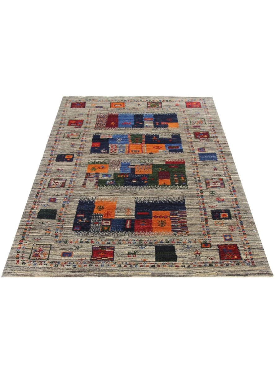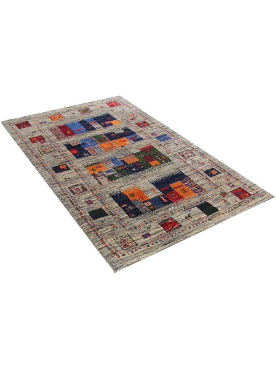 Discover the timeless beauty of this 3x4 Gray Persian Gabbeh Area Rug, made in Persia. Hand-knotted, this elegant runner features a captivating geometric pattern that fills the entire field. The color palette is soft and inviting, with a lovely gray field and an all-over geometric pattern rendered in shades of blue, orange, green, gray, and rust. Crafted from fine wool, this runner offers both exceptional durability and a comfortable texture underfoot. The geometric design creates a sense of continuous pattern and Moroccan charm, enhancing the aesthetic of any space. Enjoy the benefits of free US shipping.