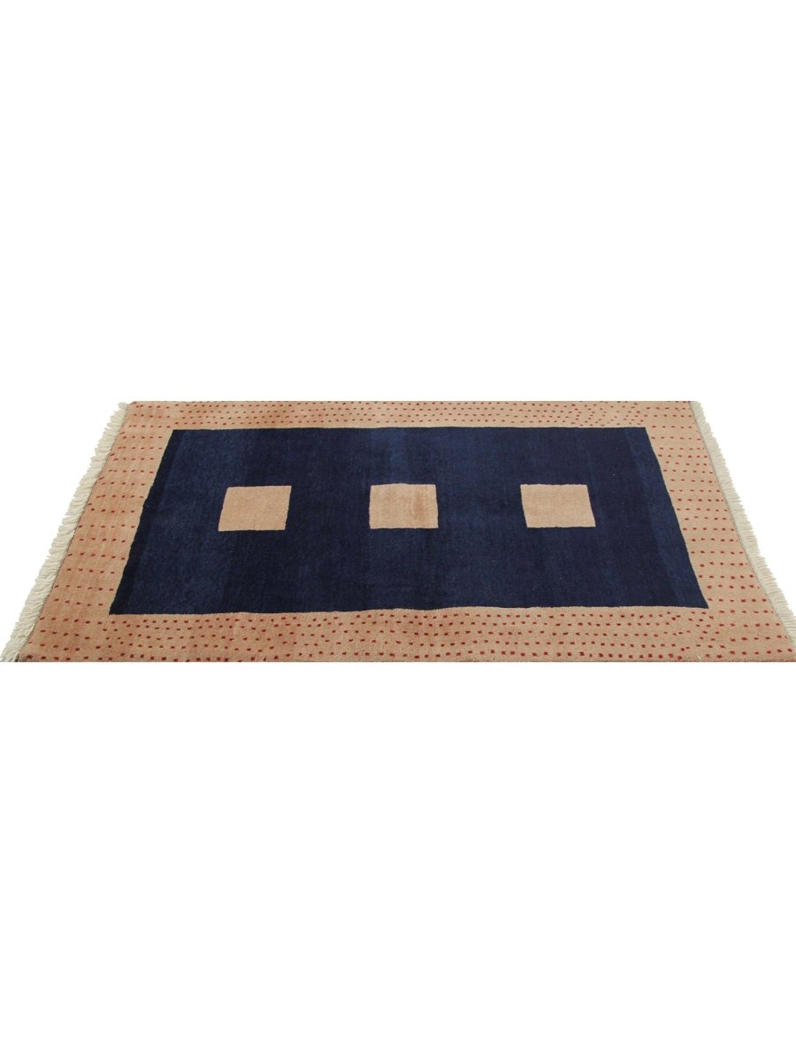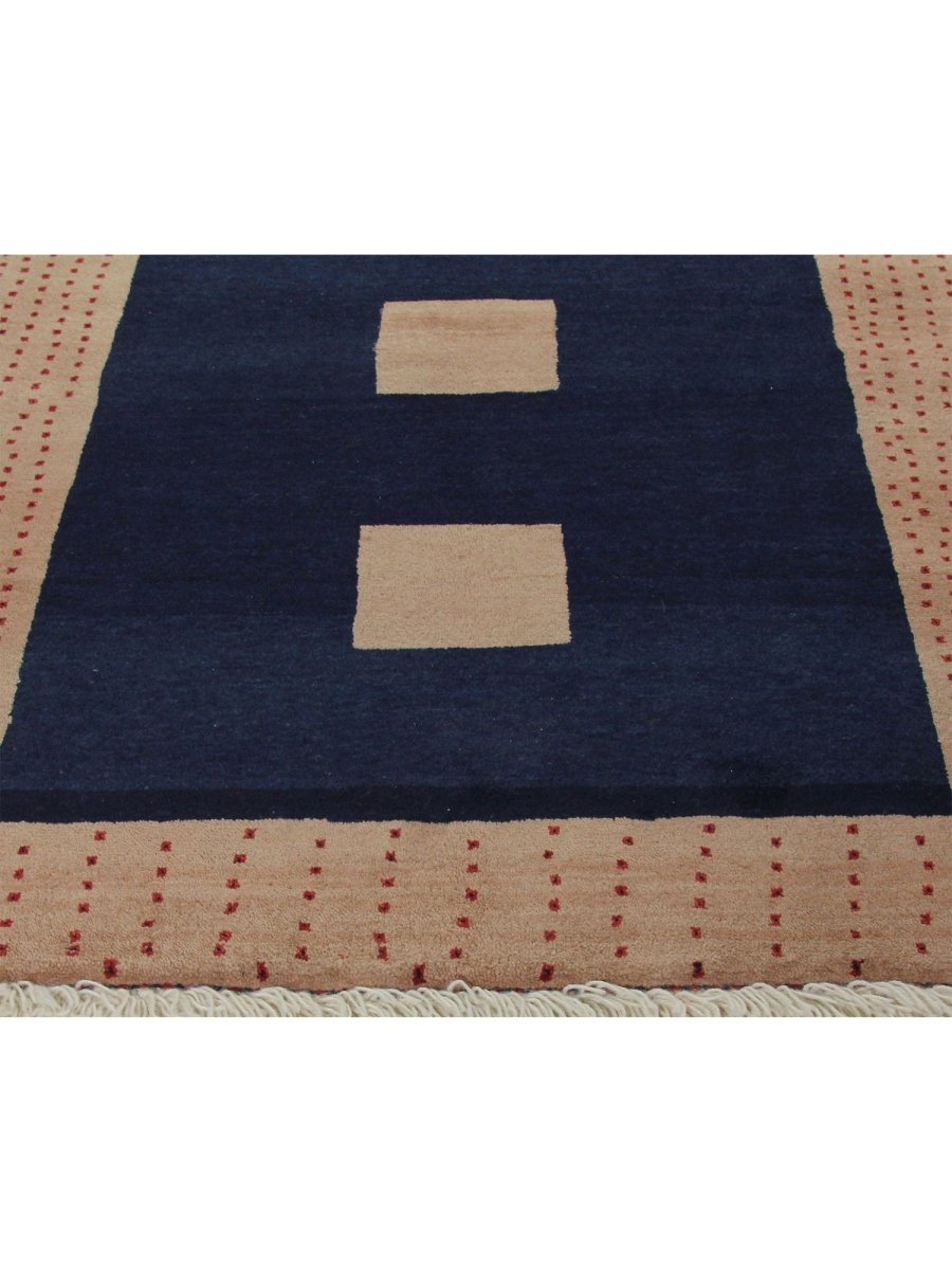 This unusual 3x5 Navy Persian Gabbeh Area Rug will transform your room with its alluring geometric design in sophisticated shades of navy blue, beige, and red. This Moroccan-style rug, hand-knotted from high-quality wool, is stylish and comfortable. Its geometric form and elaborate embellishments make it a flexible addition to your decor, creating a cozy and welcoming ambiance. This new rug is a work of art that tells a tale, not merely a floor covering. Take advantage of free delivery on this gorgeous item within the United States!