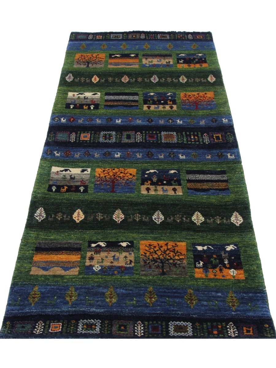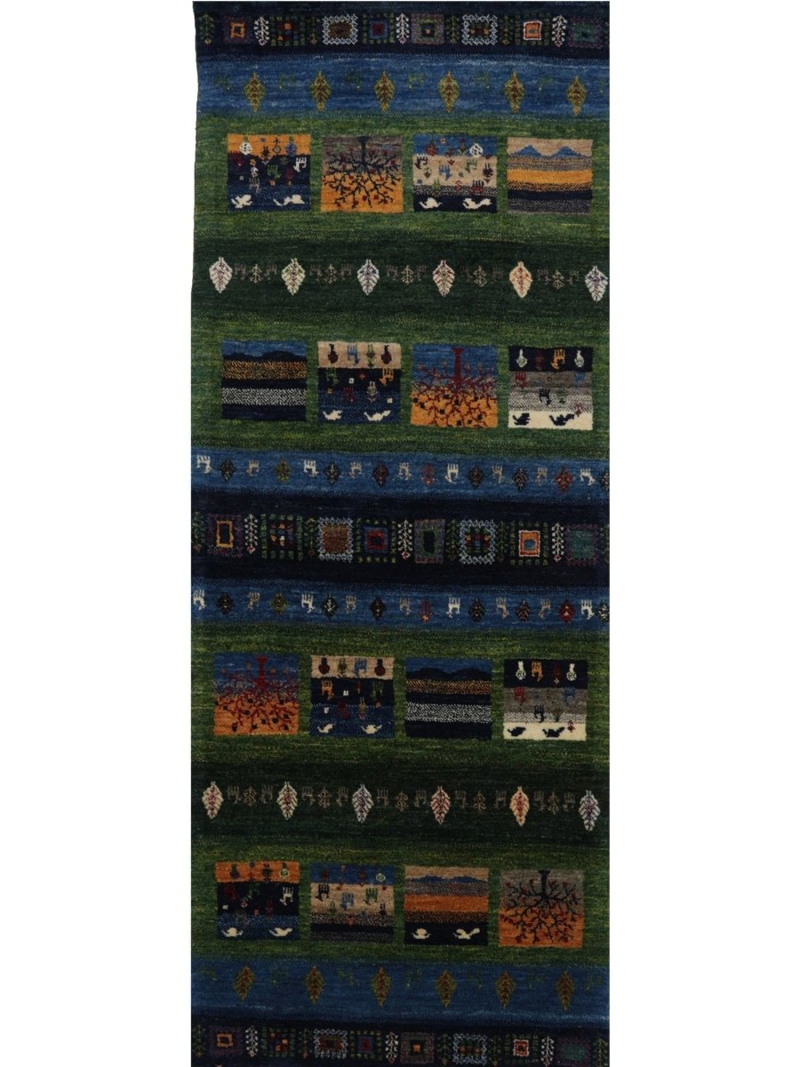 This 3x7 handwoven Persian Gabbeh runner rug is crafted in persia from high-quality wool and features a bold, geometric pattern framed by decorative borders. The rich combination of red and ivory colors blends classic Persian artistry with a contemporary aesthetic. Hand-knotted with meticulous craftsmanship, this runner is both durable and soft underfoot, making it a practical and stylish choice. Complimentary delivery is included within the US.
