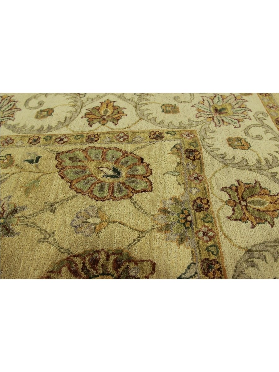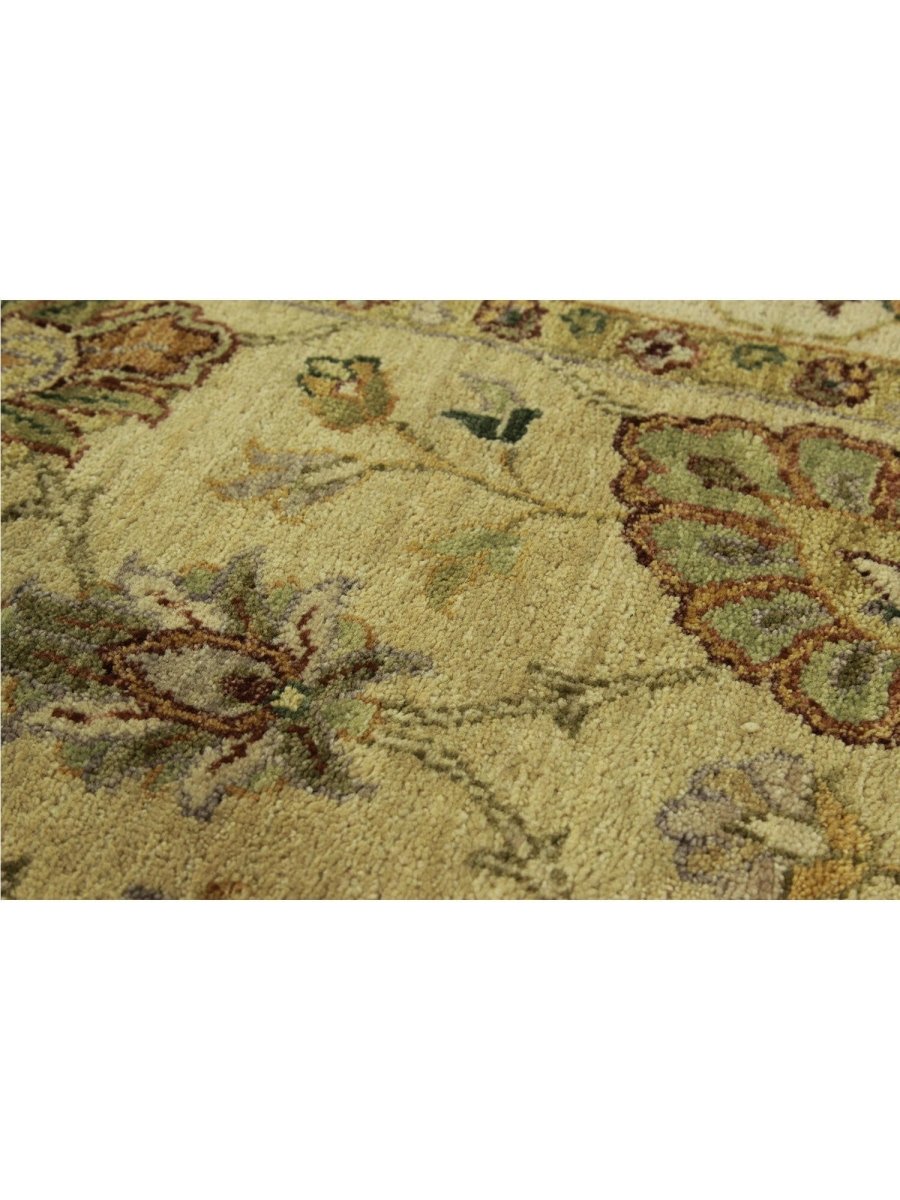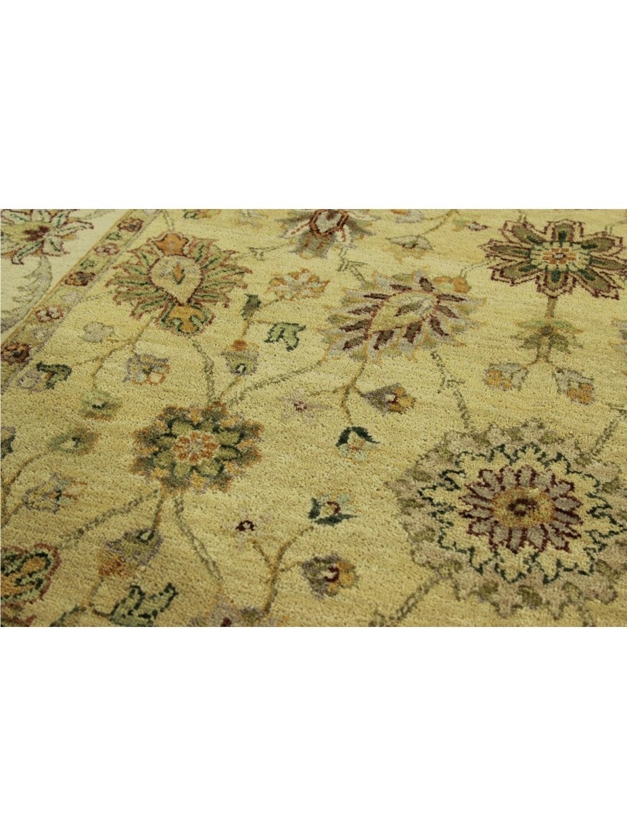 Uncover the charm of India with this gorgeous 5x7 Indian Agra area rug. Handcrafted in India, this rug features an all-over floral pattern that adds a touch of traditional artistry to your home. The color palette is soft and natural, featuring a field in warm ivory and a detailed floral design in shades of brown and gold. Crafted from quality wool, this rug offers both durability and a pleasing texture underfoot. The all-over floral pattern creates a harmonious and inviting look, perfect for adding warmth and style to a smaller living area, entryway, or bedroom. This Indian Agra rug is a beautiful piece that embodies timeless elegance and the rich heritage of Indian weaving. Enjoy the convenience of free US shipping.