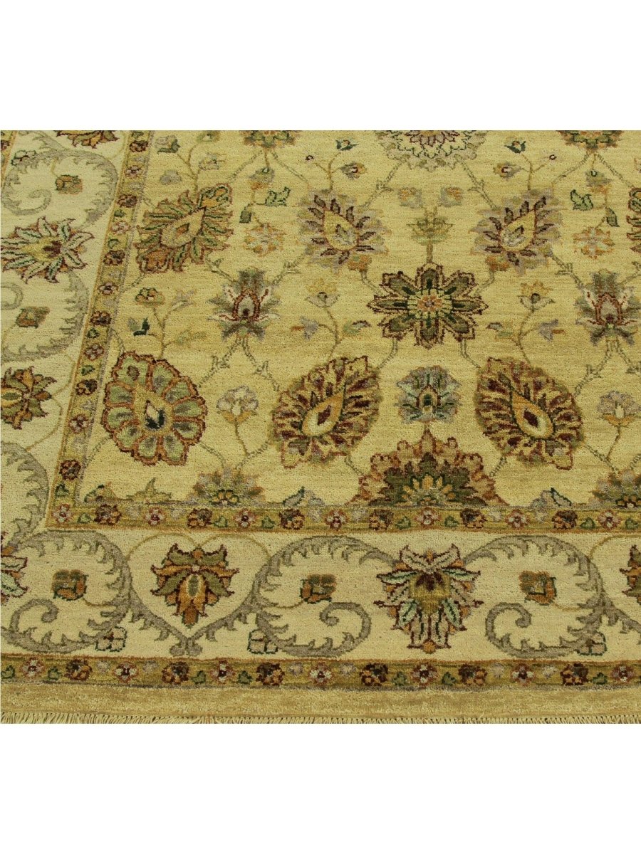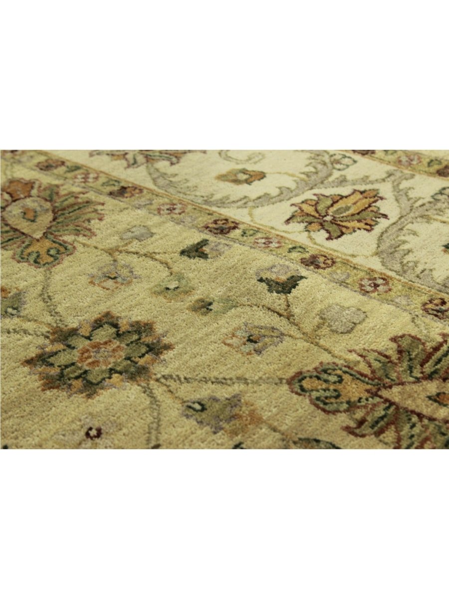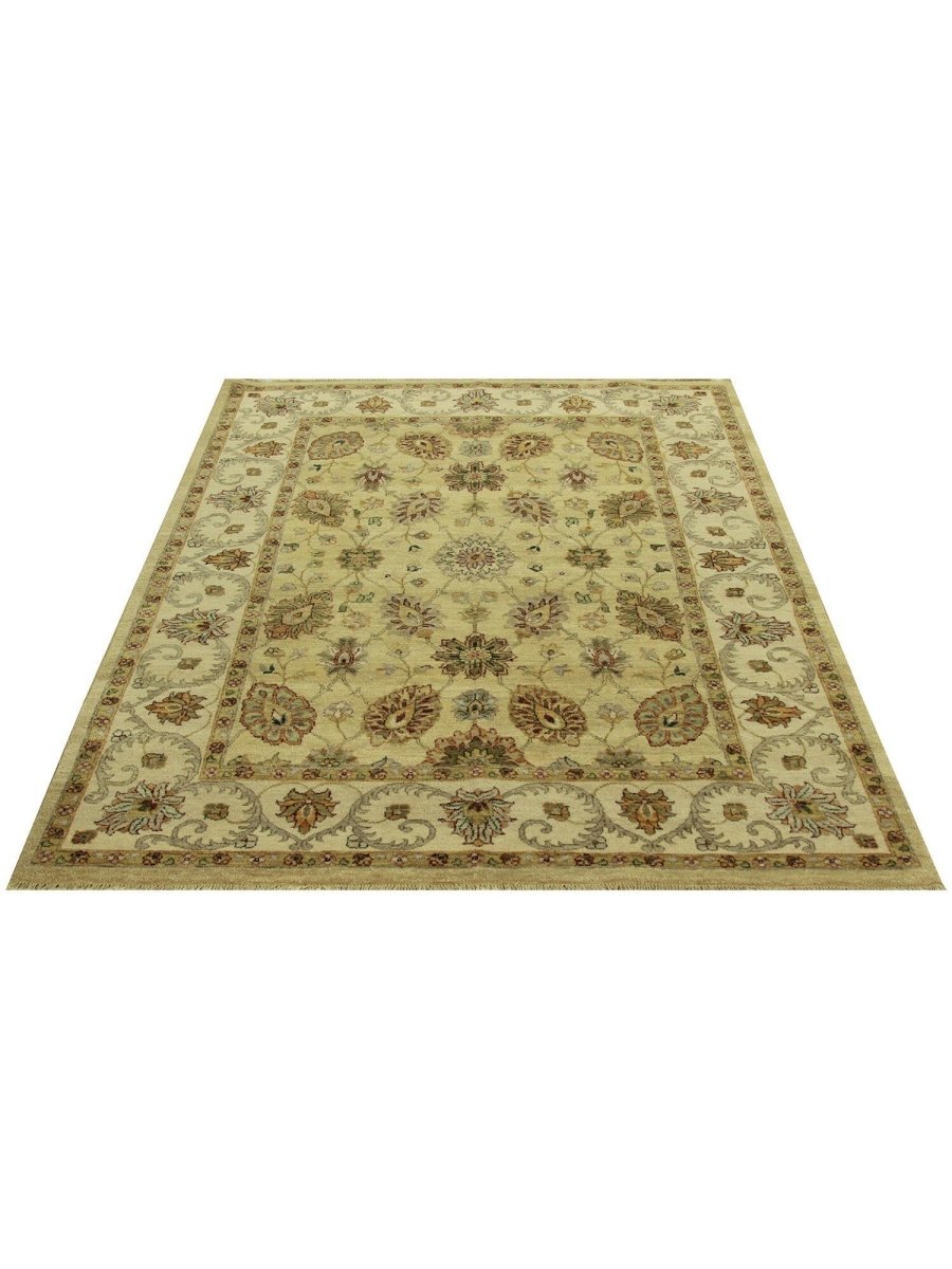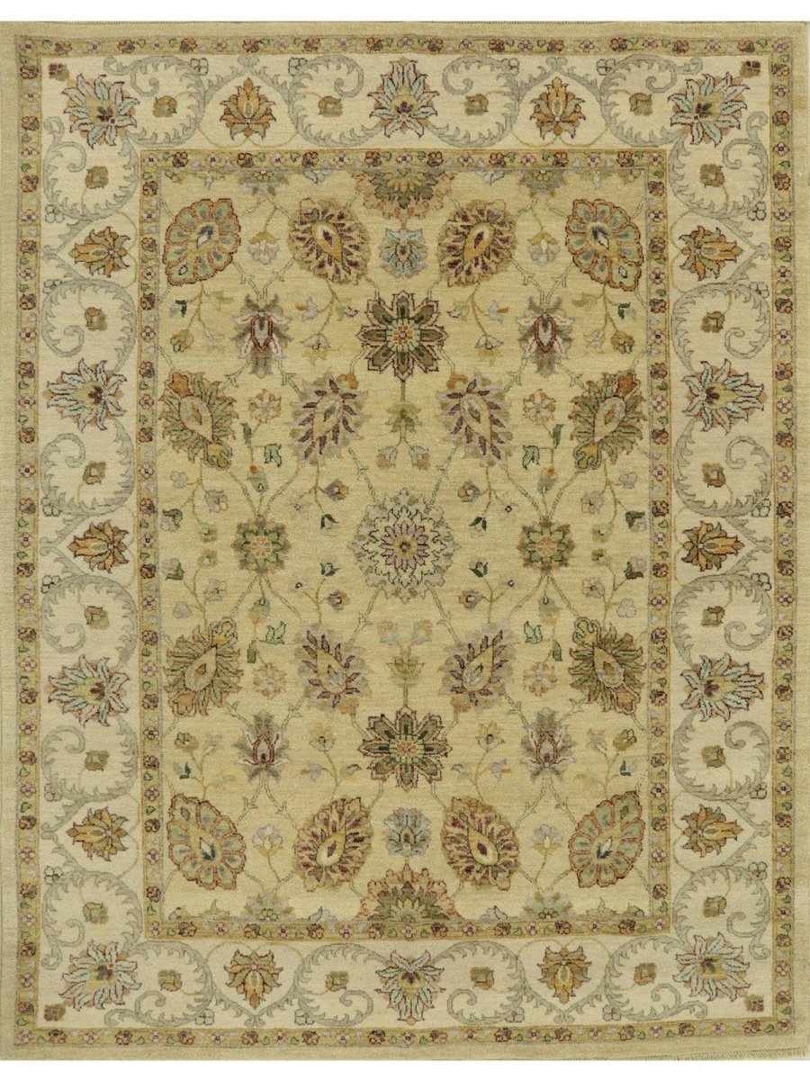 Uncover the charm of India with this gorgeous 5x7 Indian Agra area rug. Handcrafted in India, this rug features an all-over floral pattern that adds a touch of traditional artistry to your home. The color palette is soft and natural, featuring a field in warm ivory and a detailed floral design in shades of brown and gold. Crafted from quality wool, this rug offers both durability and a pleasing texture underfoot. The all-over floral pattern creates a harmonious and inviting look, perfect for adding warmth and style to a smaller living area, entryway, or bedroom. This Indian Agra rug is a beautiful piece that embodies timeless elegance and the rich heritage of Indian weaving. Enjoy the convenience of free US shipping.
