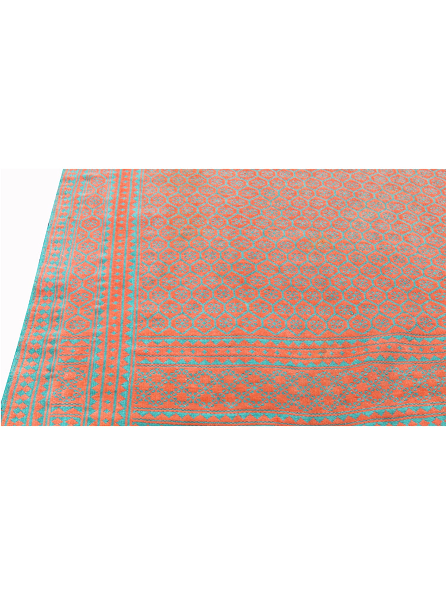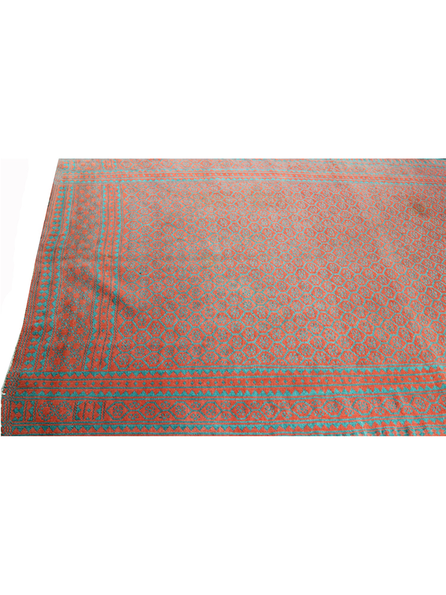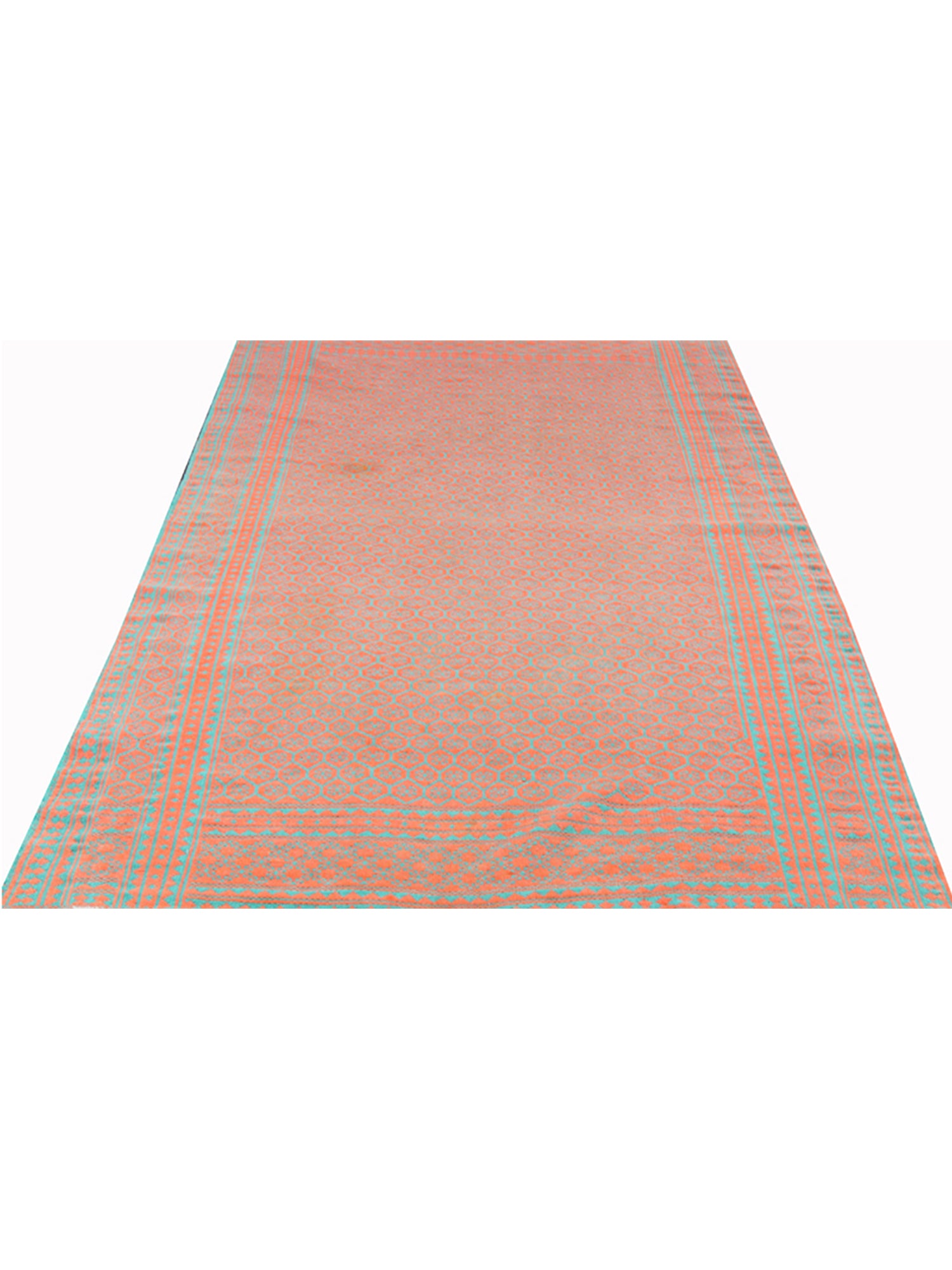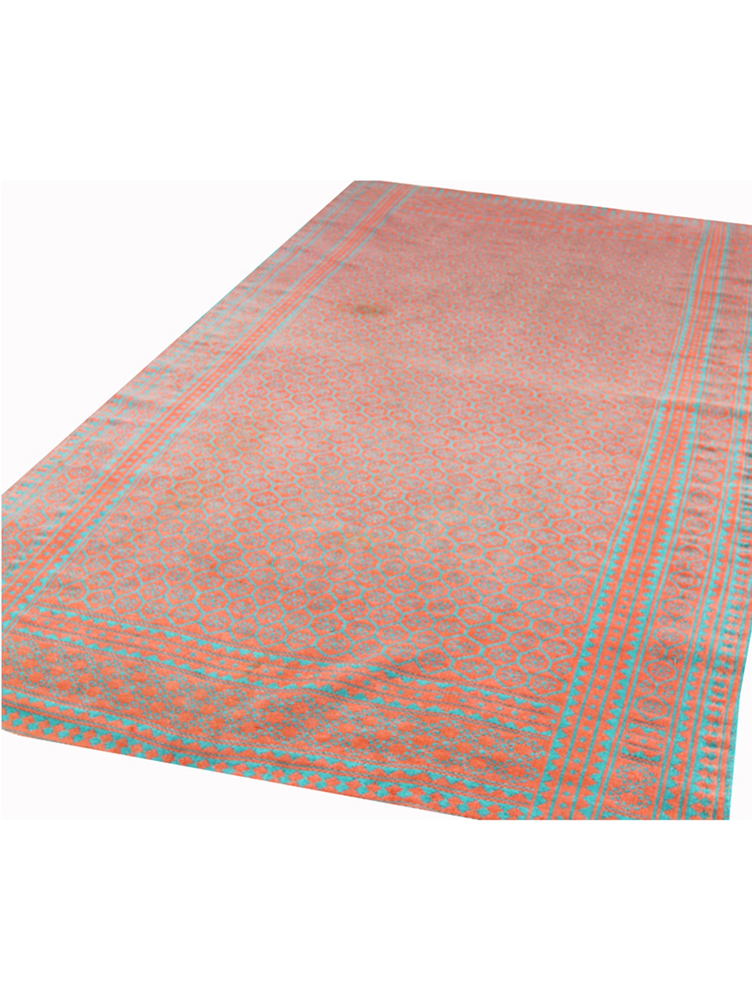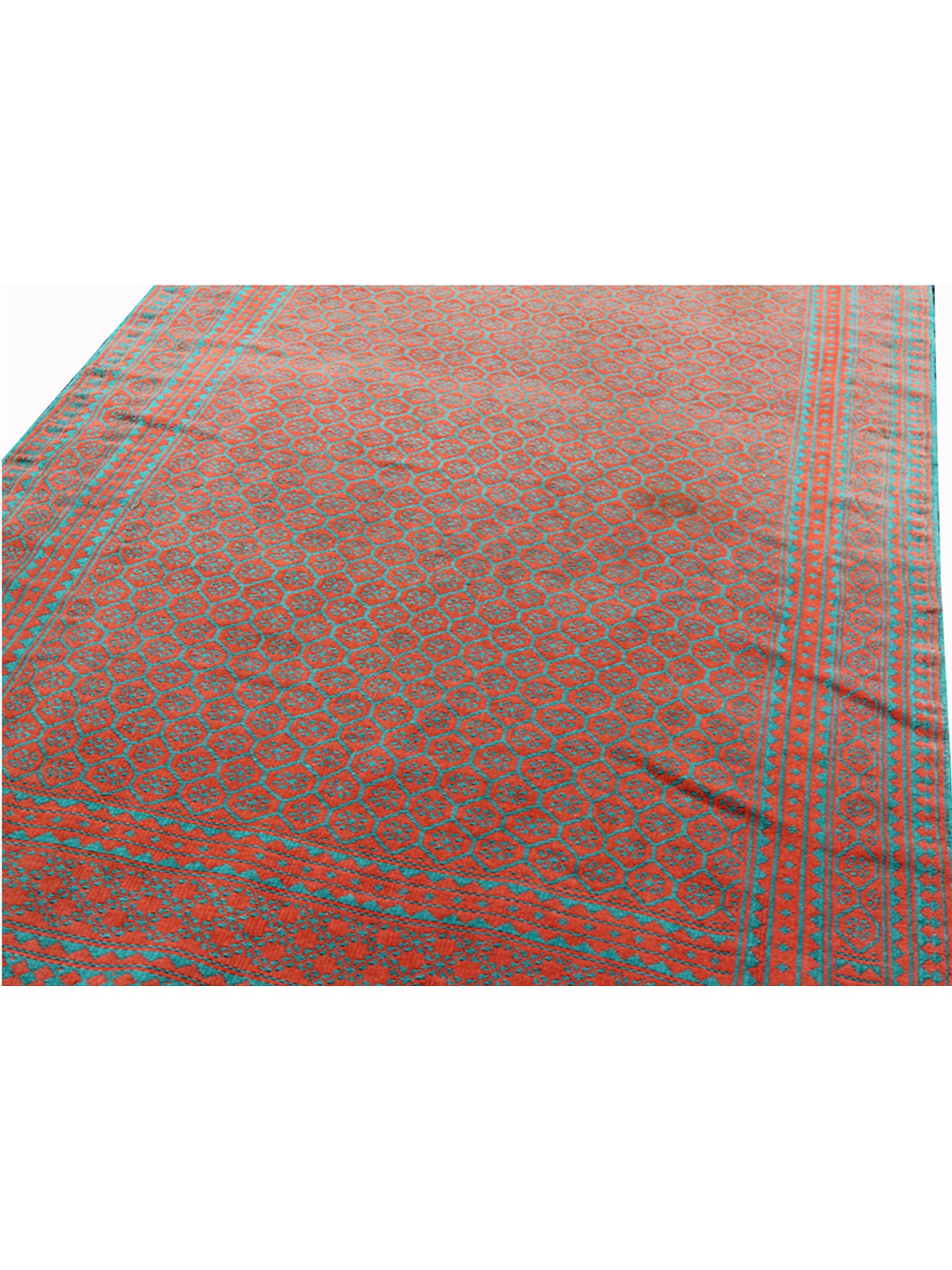This exquisite 5x9 Old Persian Kilim Runner rug is a rare and unique addition to any room, boasting a stunning color palette that adds a touch of warmth and energy. Made from high-quality wool using a flat-weave construction, it features a beautiful combination of vibrant orange and light blue hues, perfectly balanced to create a sense of harmony and visual interest. With its generous size of 5'5" x 9'4", this Orange Old Persian Kilim Runner rug is perfect for adding a touch of sophistication. Its exceptional quality, beautiful geometric design, and rich history make it a valuable addition to any home. The intricate geometric patterns and subtle color variations will add depth and visual interest to any room, while the rug's durability ensures it will remain a beautiful and functional piece for years to come.