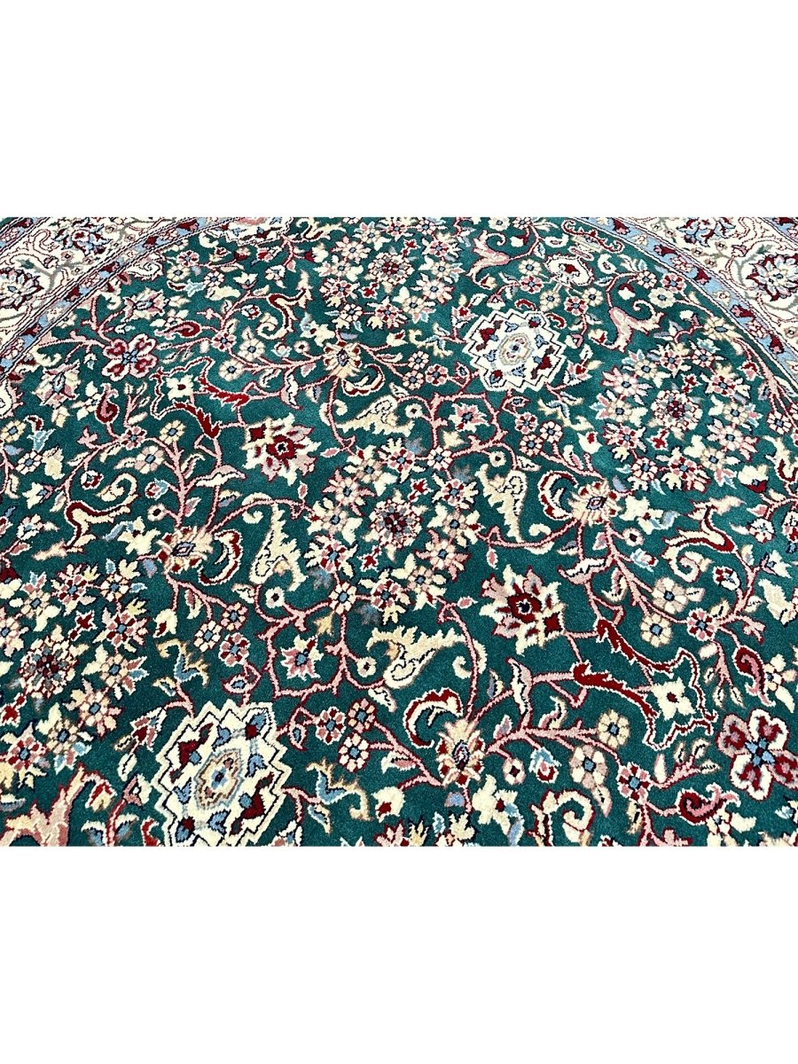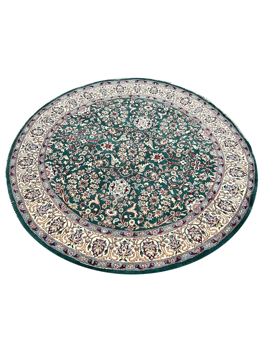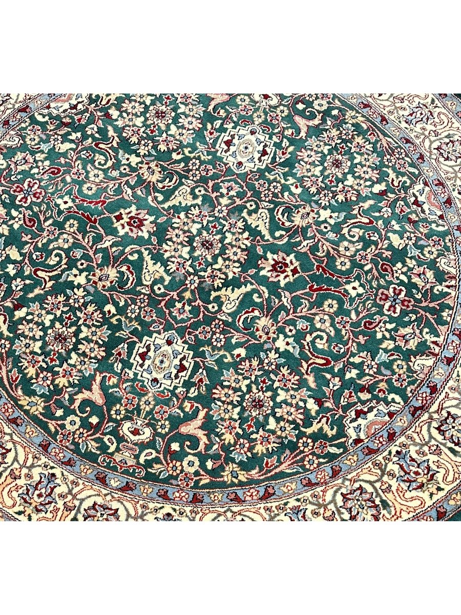 Enhance your home with the 6' Persian Design Indian Rug, a one-of-a-kind piece that beautifully showcases the artistry of traditional Indian craftsmanship. Hand-knotted from high-quality wool, this stunning traditional rug features a floral pattern that adds warmth and elegance to any room. The delightful hues of green, beige, and blue bring life to your space, making it a versatile addition to various decor styles. This exceptional rug is more than just a decorative accessory it’s a timeless work of art that enhances the charm of your home. Enjoy free shipping in the US.