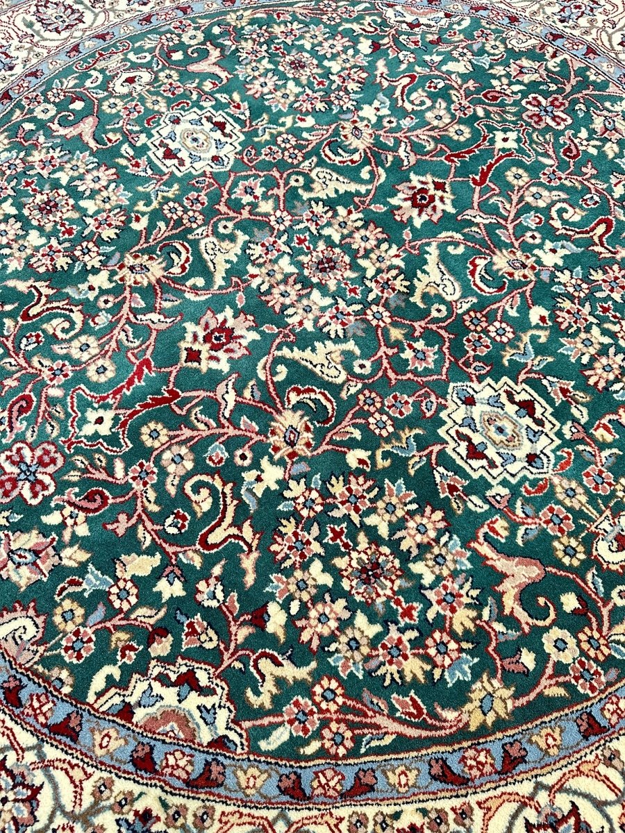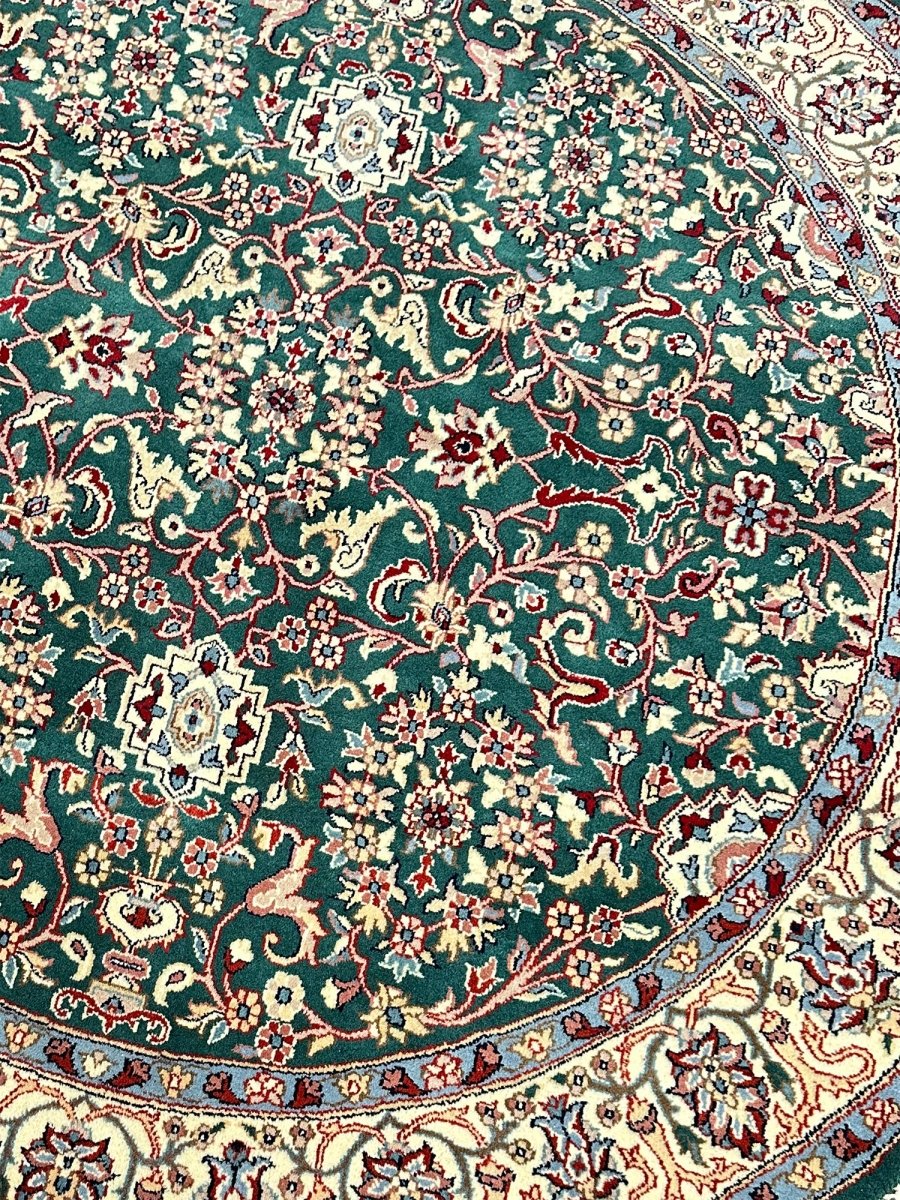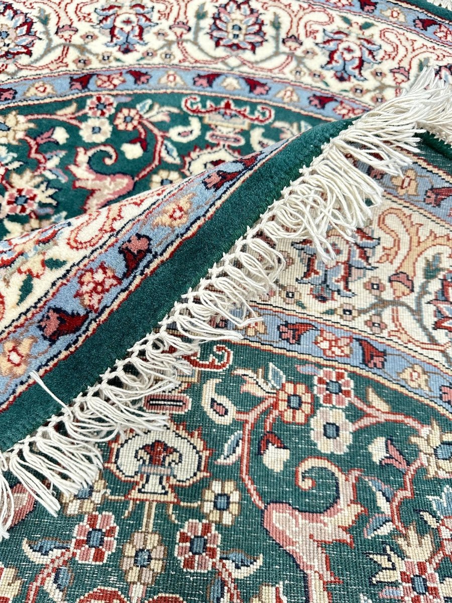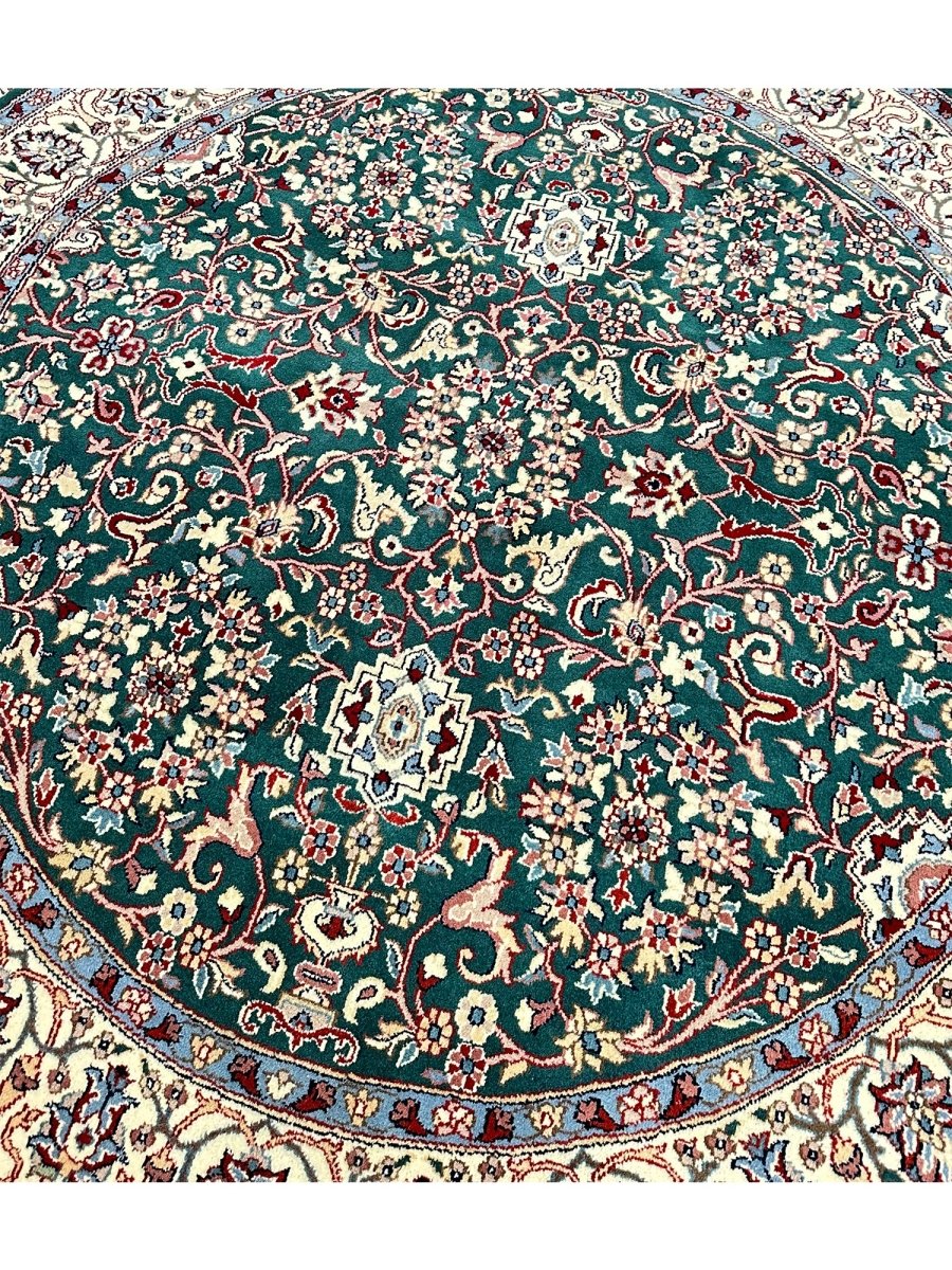 Enhance your home with the 6' Persian Design Indian Rug, a one-of-a-kind piece that beautifully showcases the artistry of traditional Indian craftsmanship. Hand-knotted from high-quality wool, this stunning traditional rug features a floral pattern that adds warmth and elegance to any room. The delightful hues of green, beige, and blue bring life to your space, making it a versatile addition to various decor styles. This exceptional rug is more than just a decorative accessory it’s a timeless work of art that enhances the charm of your home. Enjoy free shipping in the US.