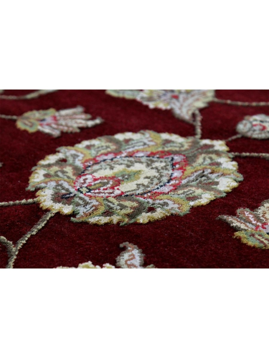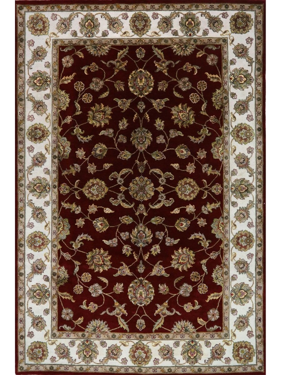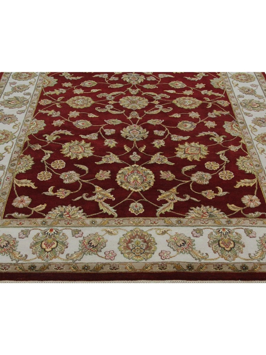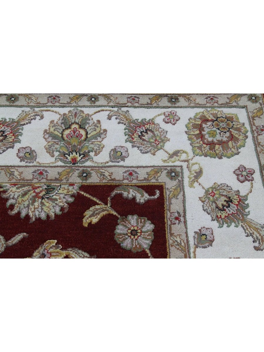Add a touch of timeless beauty to your home with this 6x9 Handwoven Persian Tabriz Style Rug, crafted in India. This rug features a captivating geometric pattern, showcasing traditional motifs in a soothing deep red, ivory, and beige palette. Its hand-knotted wool and silk construction ensures durability, lasting beauty. The intricate border detail reflects the artisan's skill and timeless design heritage. This piece effortlessly complements, adding warmth, texture, and sophistication. A true blend of artistry and function, it easily brings heritage charm into any space. Enjoy the benefit of free shipping across the United States. Each rug has one-of-a-kind subtle variations highlighting its handmade nature.