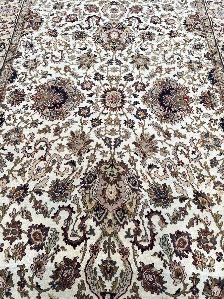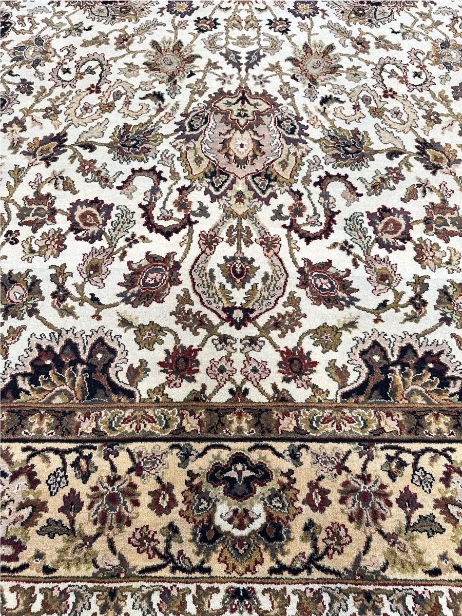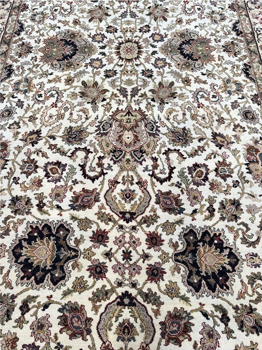 Discover the timeless beauty of this 6x16 Indian Mughal runner rug, made in India. Hand-knotted, this elegant runner features a captivating all-over floral pattern that fills the entire field with intricate bloom and vine design. The color palette is soft and inviting, with a field in lovely ivory, and the all-over floral pattern rendered in shades of beige, red, and brown. Crafted from fine wool, this runner offers both exceptional durability and a comfortable texture underfoot. The all-over floral design creates a sense of continuous pattern and traditional charm, enhancing the aesthetic of any space. Enjoy the benefits of free US shipping.