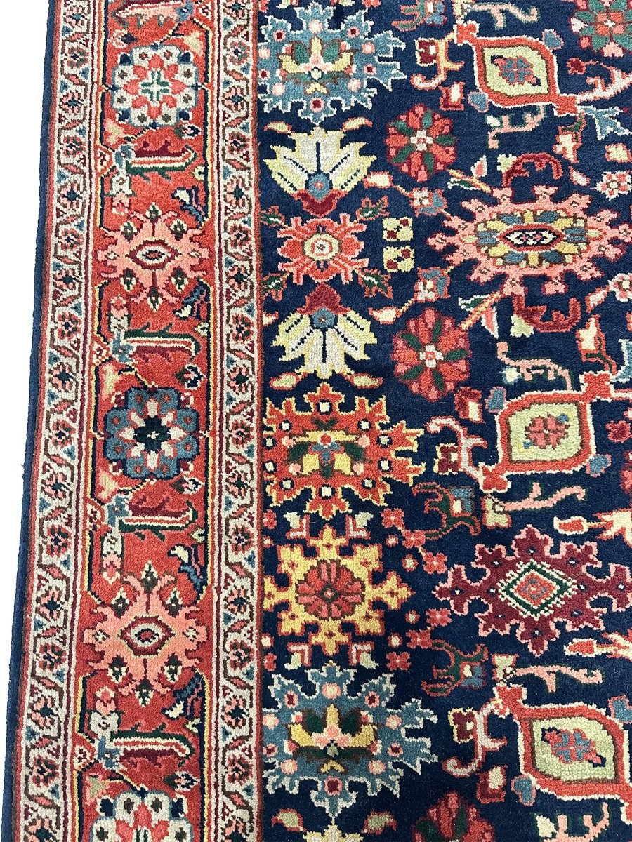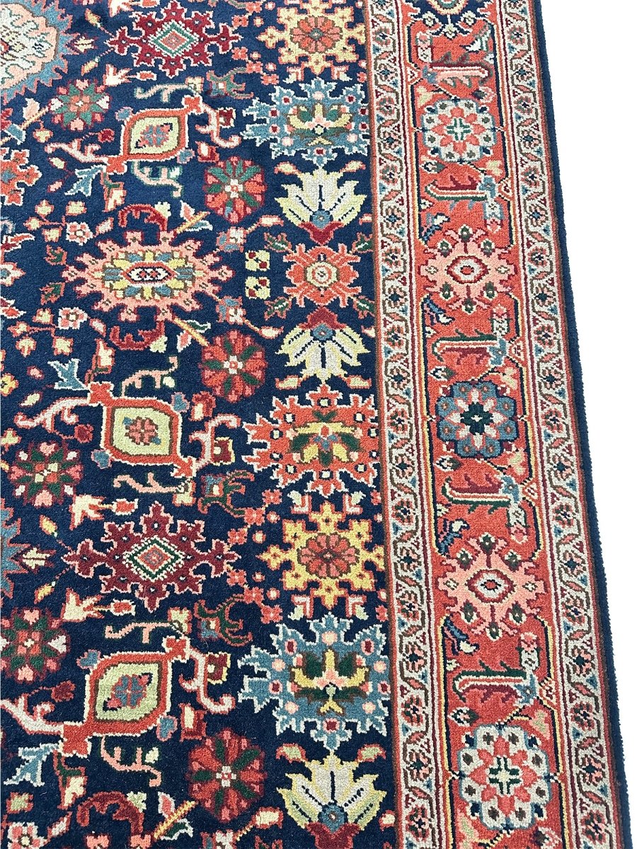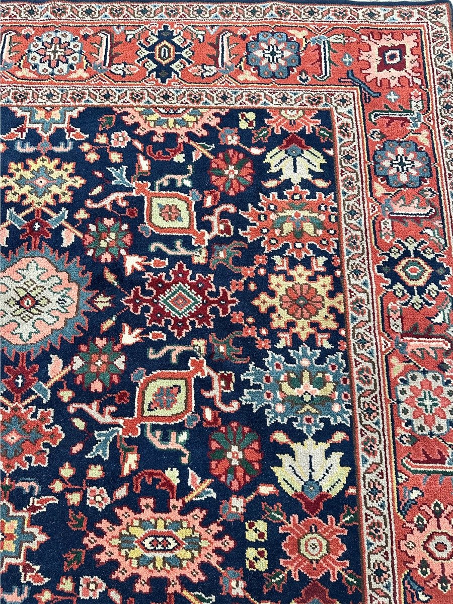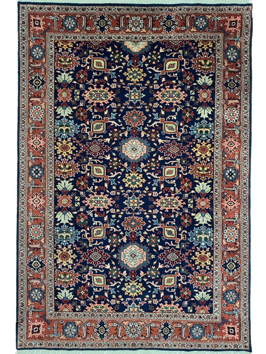 Go traditional at home with this 6x9 Persian Tabriz-Style area rug, created for optimal user comfort. The hand-weaving style was borrowed directly from the Tabriz weaving traditions and features the graciously adorned floral design of traditional styles. A beautiful piece lovingly made. With intricate detailing and colors of rust and navy blue, this rug showcases cultural elegance with modern touches . We ship free, anywhere in the US.