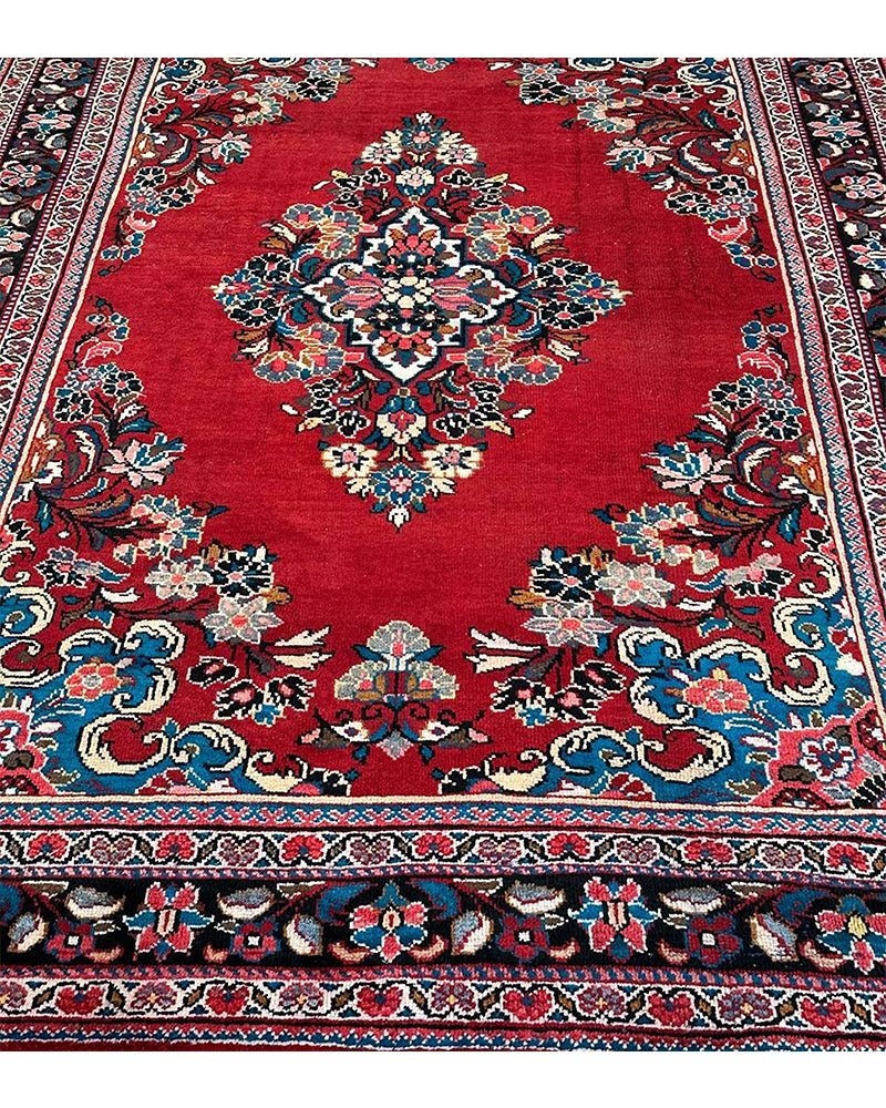 Discover the appeal of the unique 7x11 Old Persian Mahal Area Rug, which adds classic style to your house. This gorgeous traditional rug, which is hand-knotted from premium wool, has a medallion design that gives personality to any room. It produces a cozy and welcoming ambiance and is ideal for big living rooms, dining spaces, or as a focal point in your foyer. Its beautiful combination of cream, red, and blue hues makes it a flexible option for a range of designs. This outstanding sculpture acts as a stunning piece of art in addition to enhancing your decor. Take advantage of free US delivery.